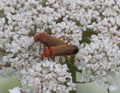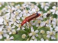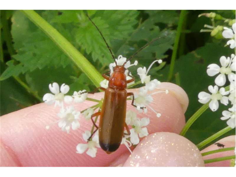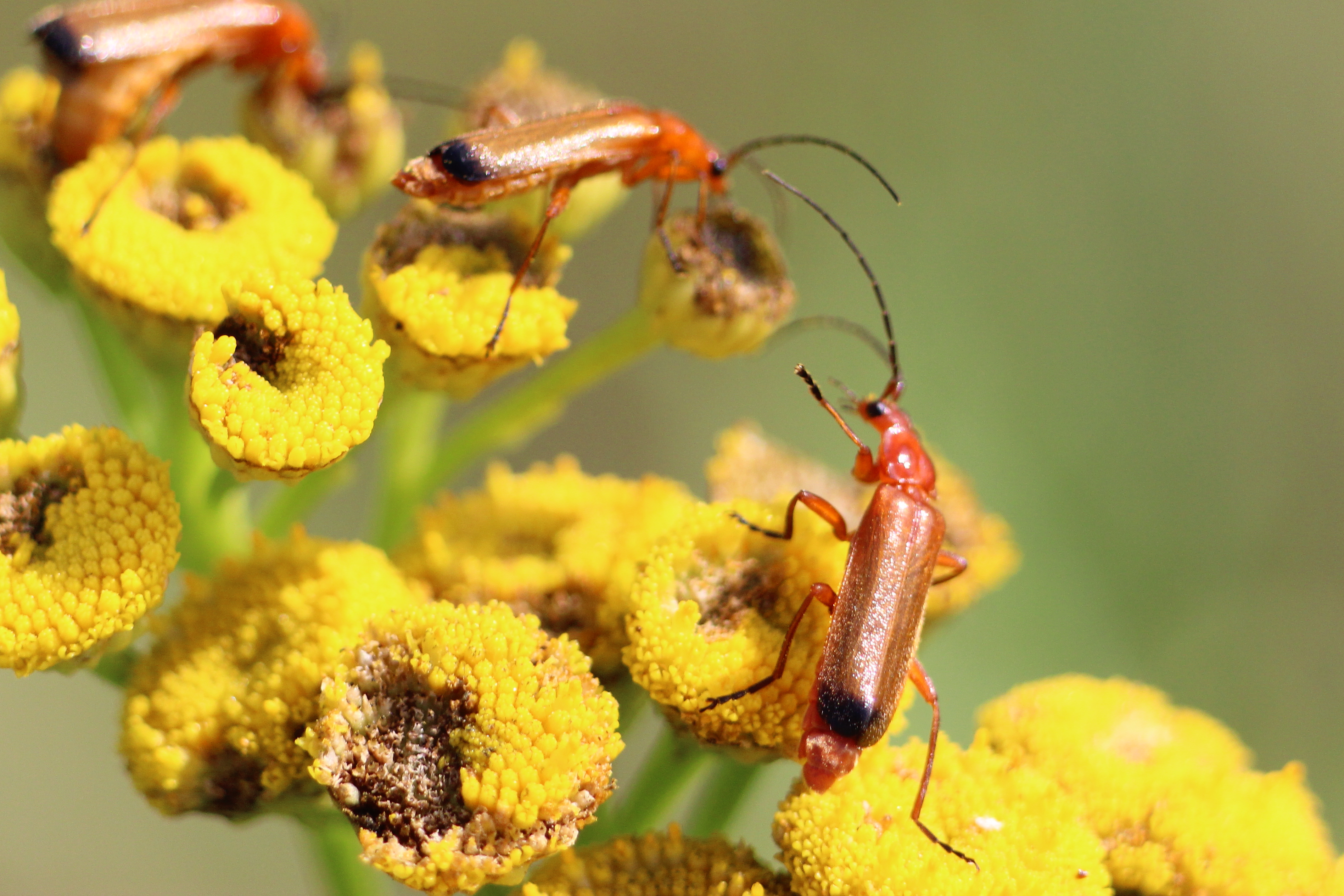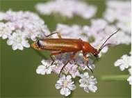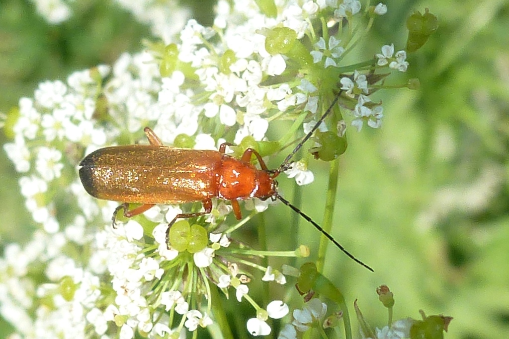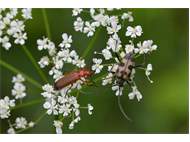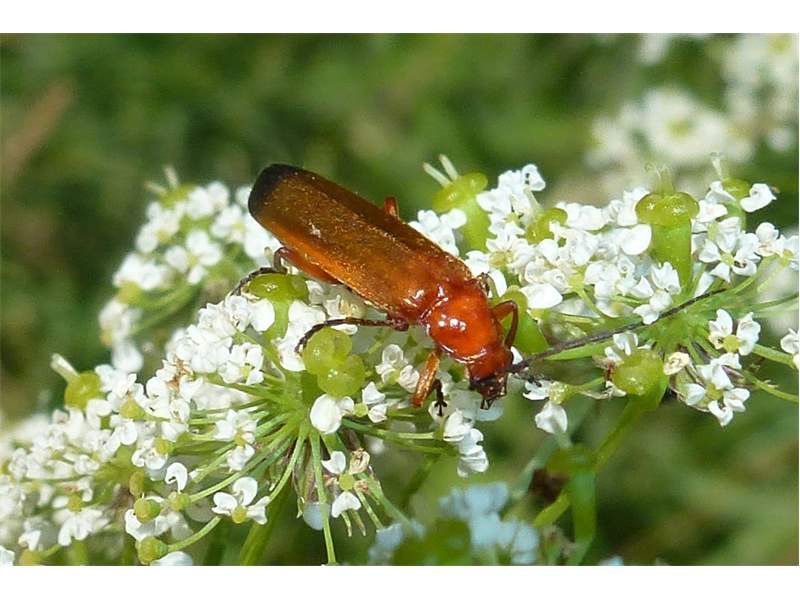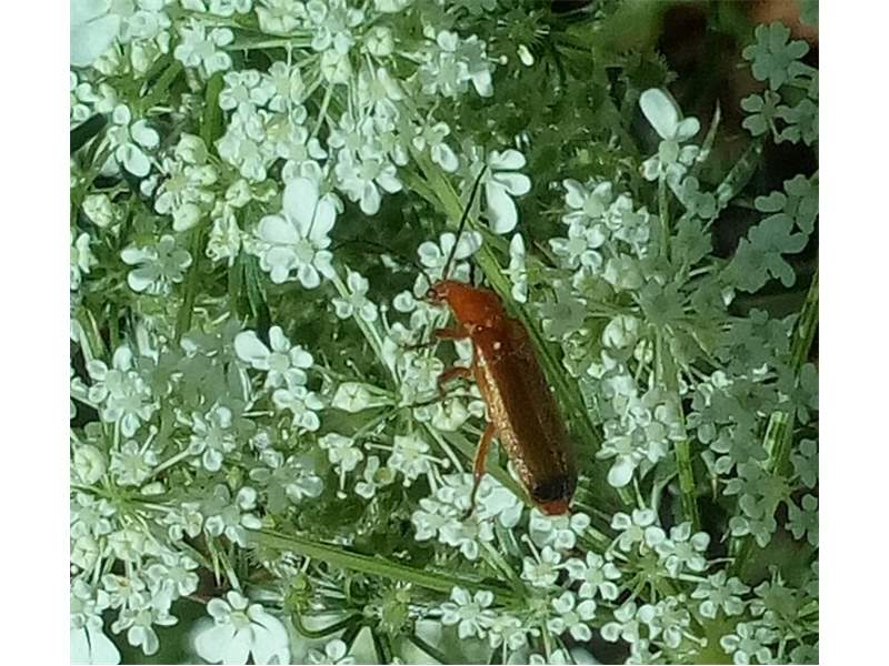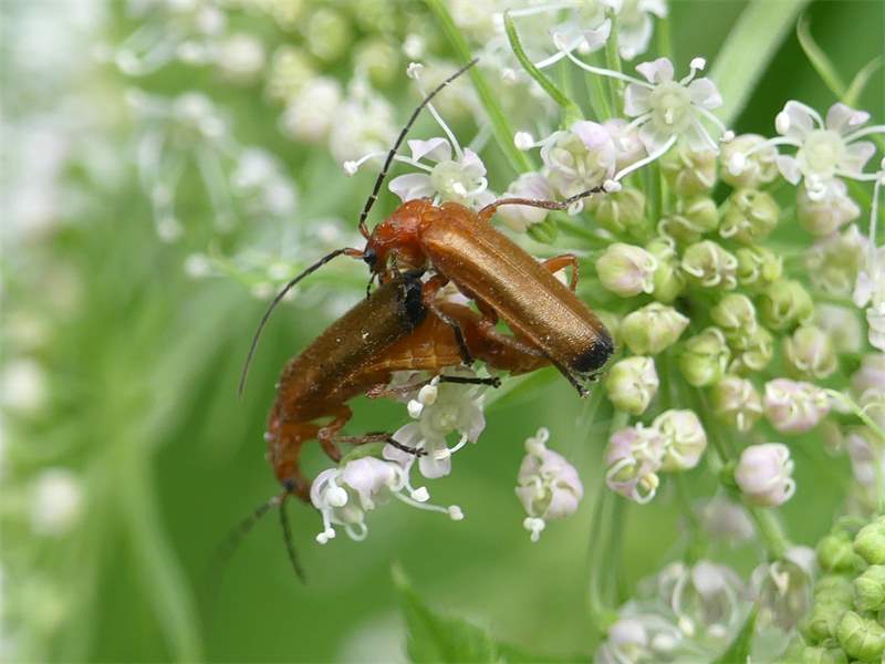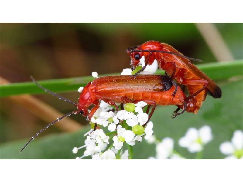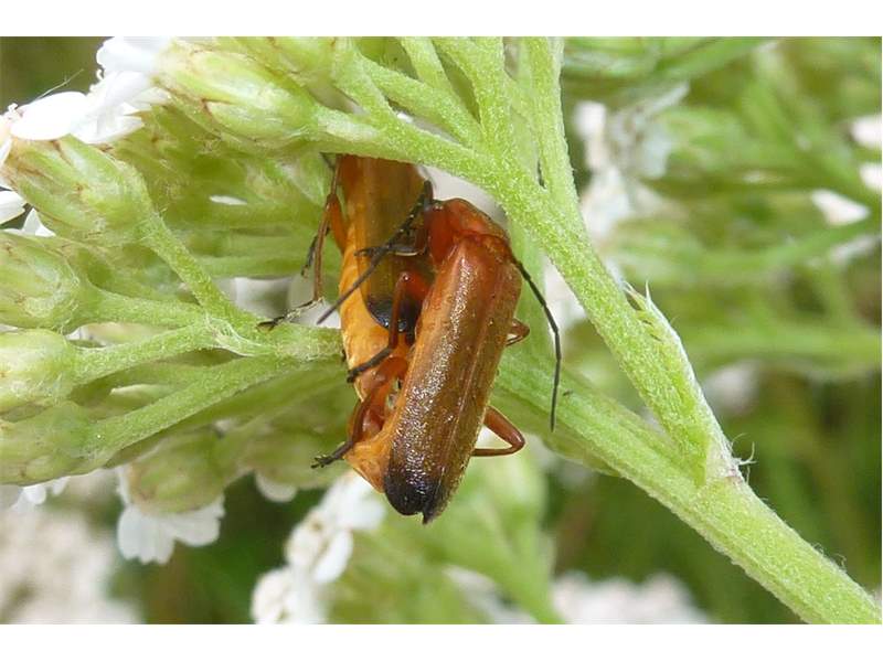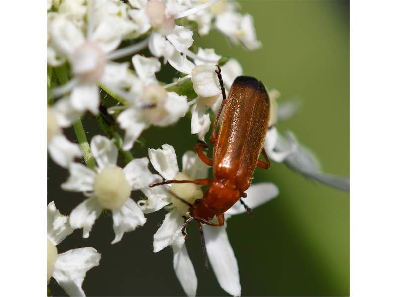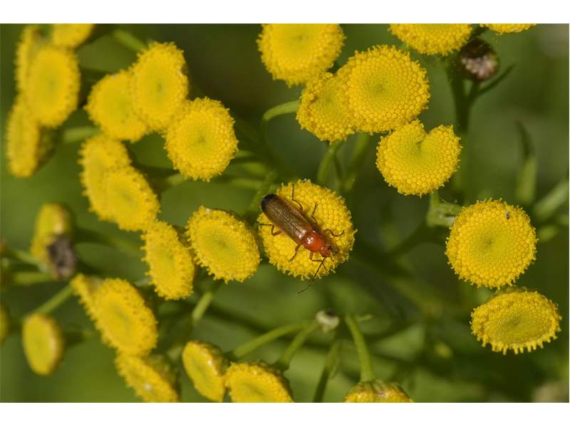 vier Exemplare mit Oxythyrea funesta (Poda, 1761) - Trauer-Rosenkäfer auf Wilder Möhre, Westlausitz, Nordhang Hutberg, Kamenz, 19.07.2020 (© Gert Schulze)( Bild vergrößern)