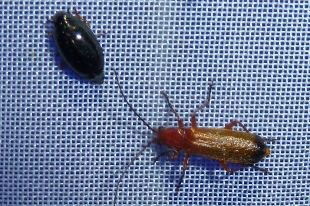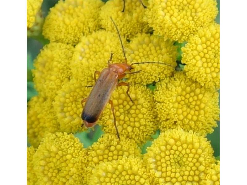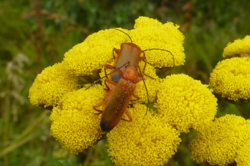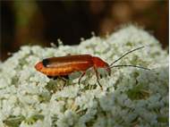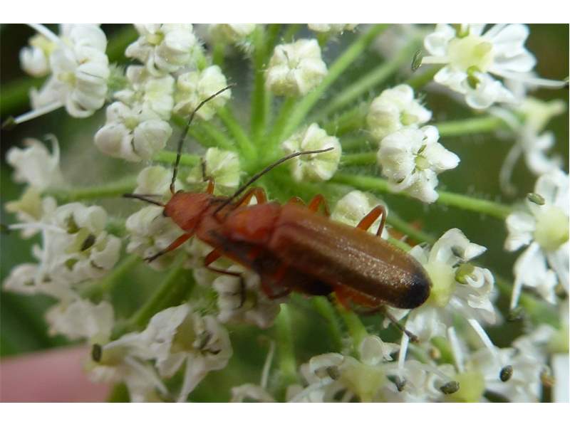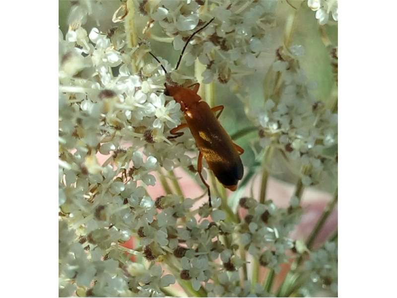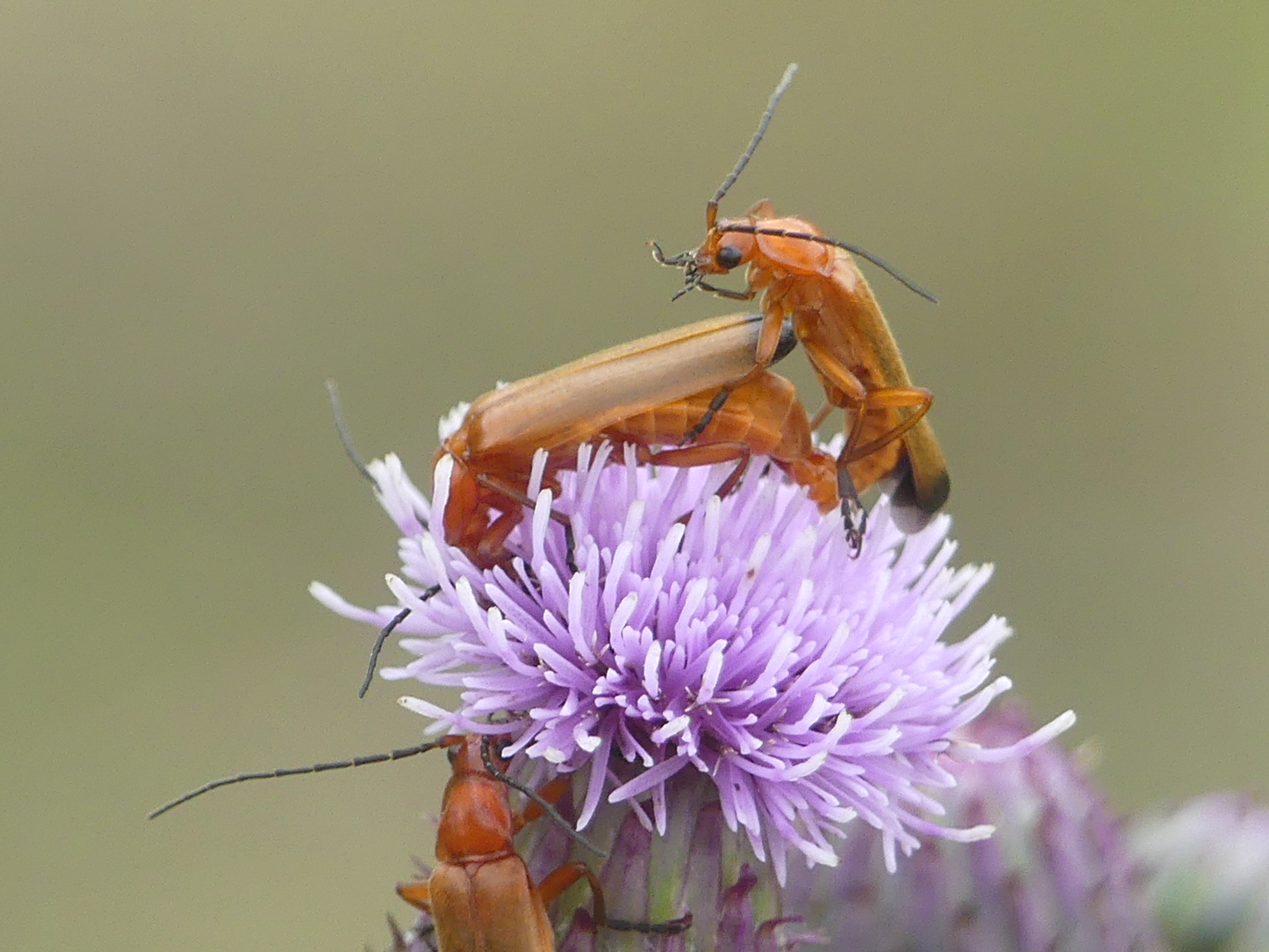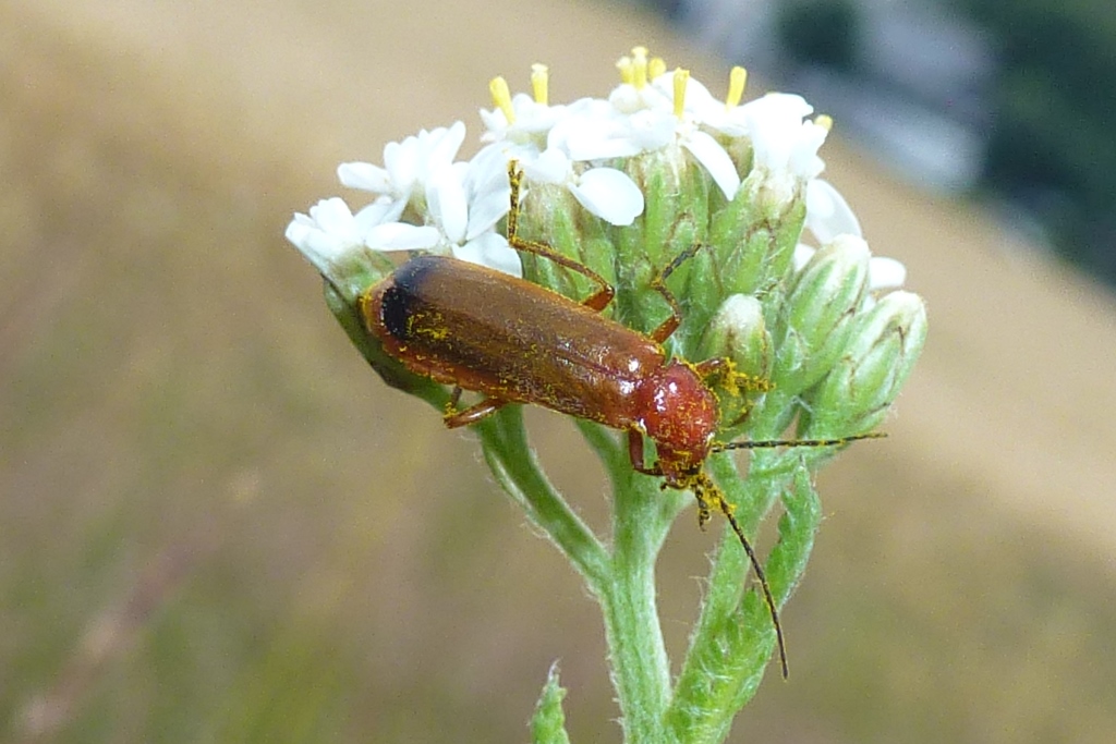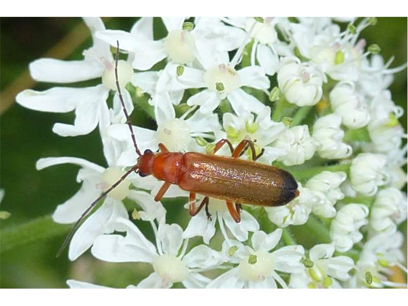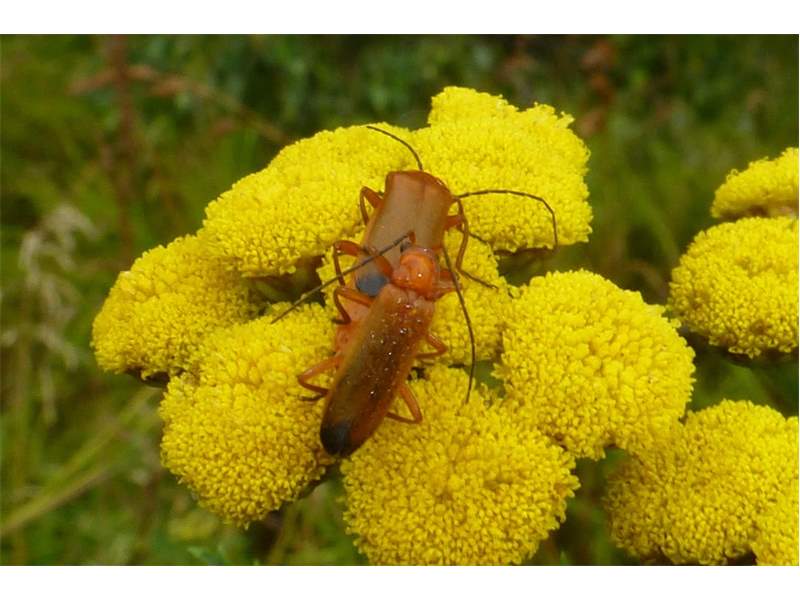 vier Exemplare mit Oxythyrea funesta (Poda, 1761) - Trauer-Rosenkäfer auf Wilder Möhre, Westlausitz, Nordhang Hutberg, Kamenz, 19.07.2020 (© Gert Schulze)( Bild vergrößern)