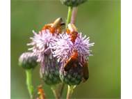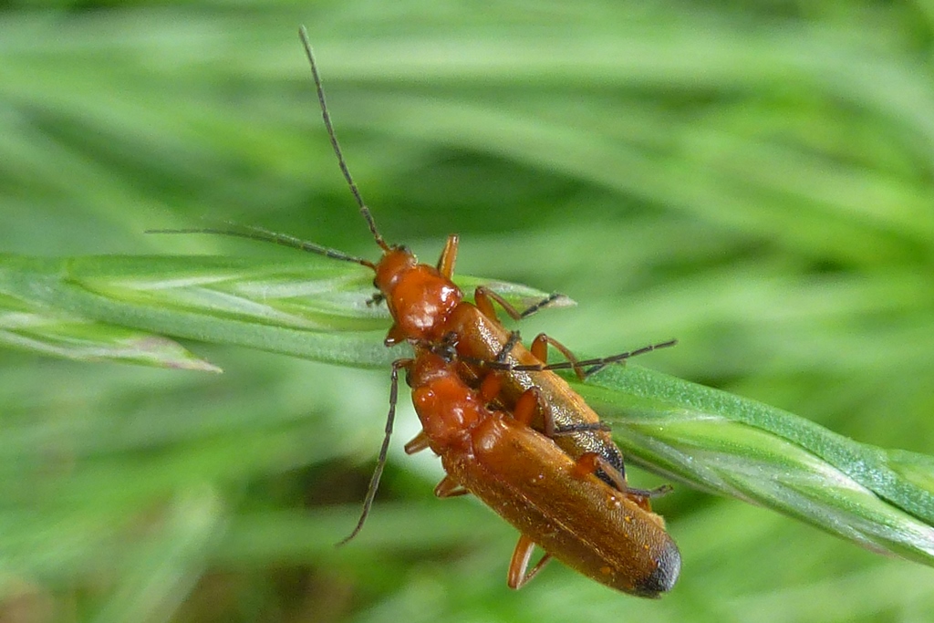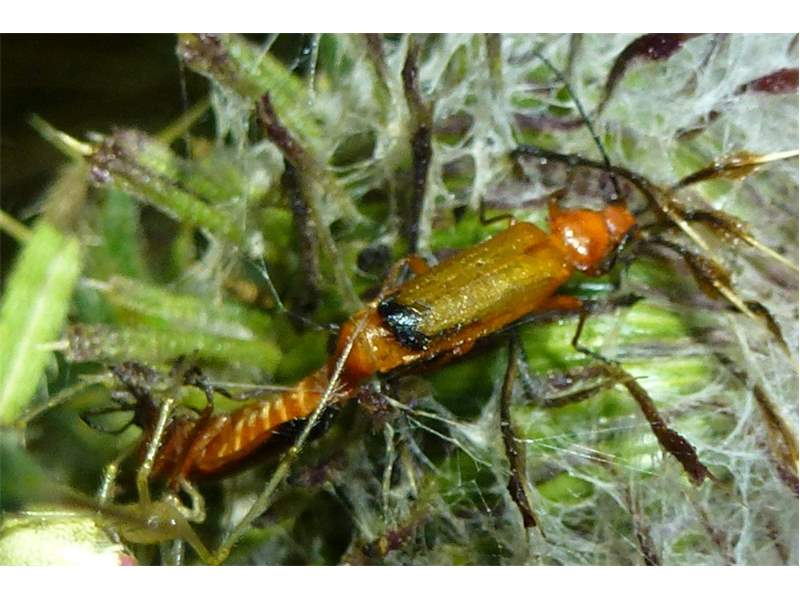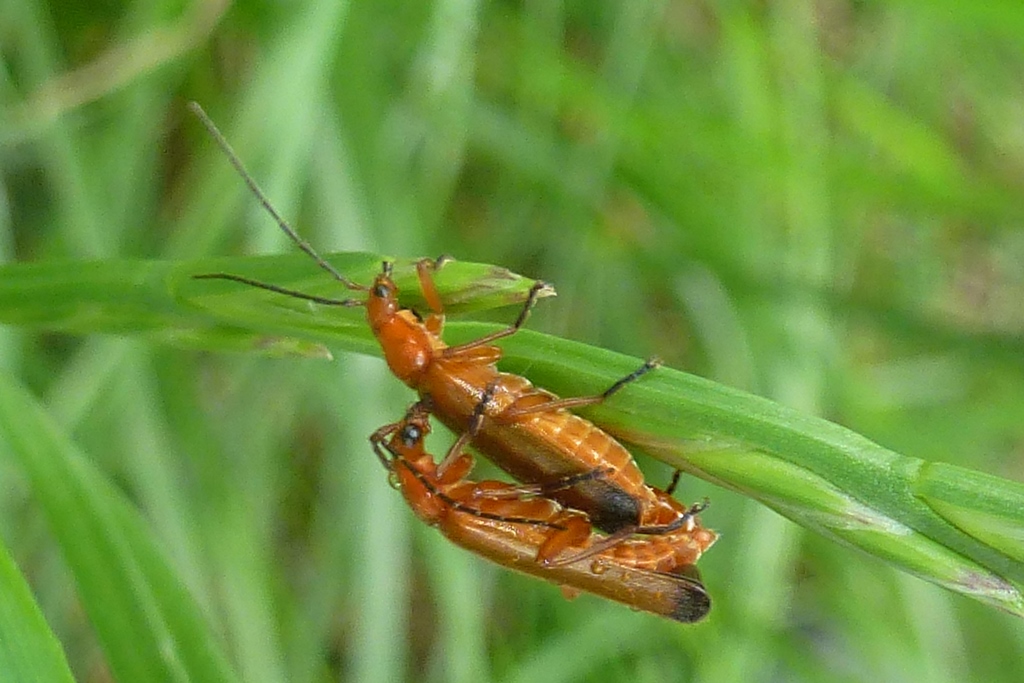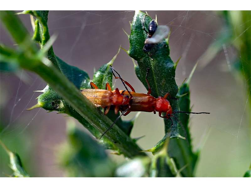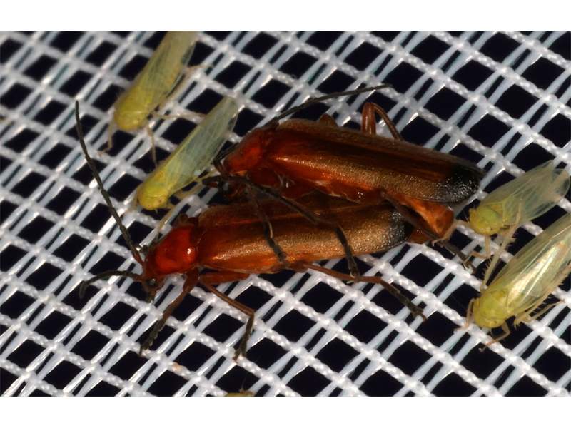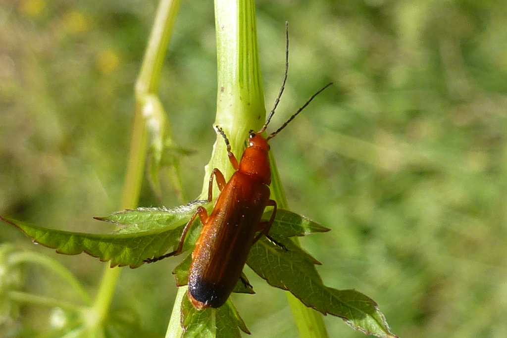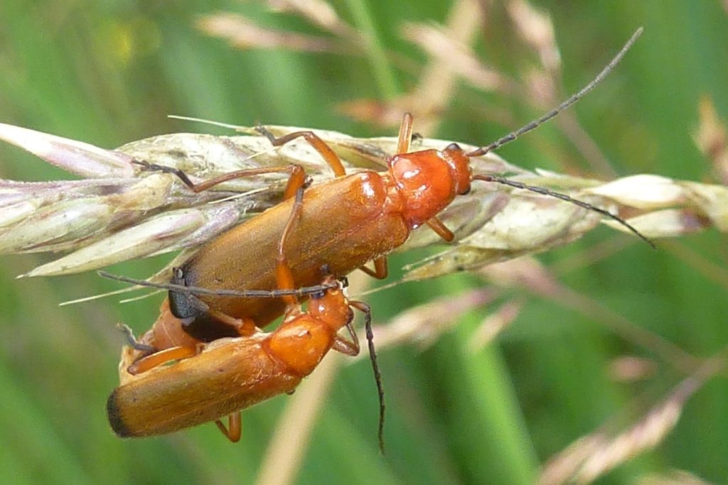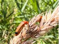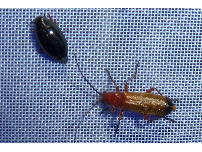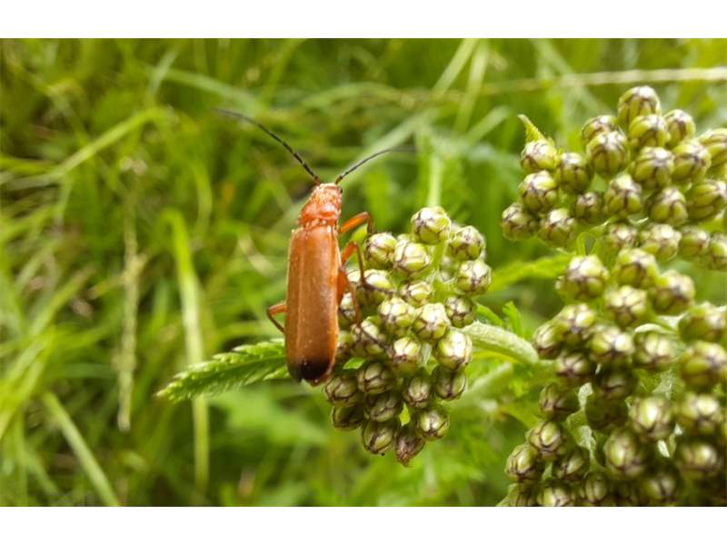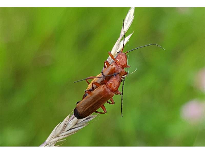 vier Exemplare mit Oxythyrea funesta (Poda, 1761) - Trauer-Rosenkäfer auf Wilder Möhre, Westlausitz, Nordhang Hutberg, Kamenz, 19.07.2020 (© Gert Schulze)( Bild vergrößern)