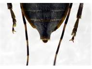 Beim Weibchen leicht ausgerandeter Hinterrand des letzten sichtbaren Sternits mit sehr feiner und kurzer Behaarung.