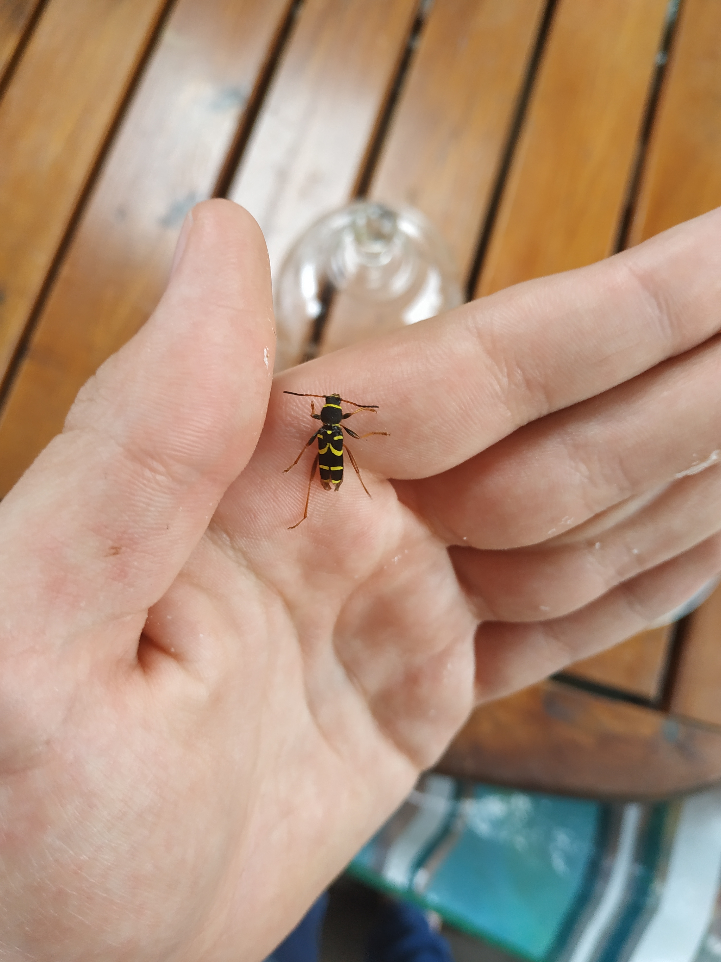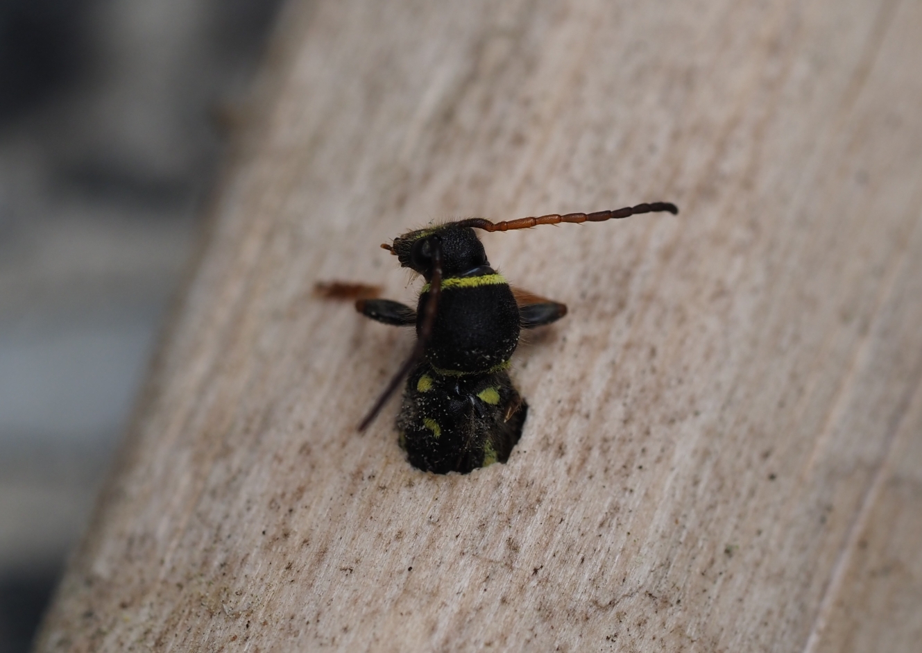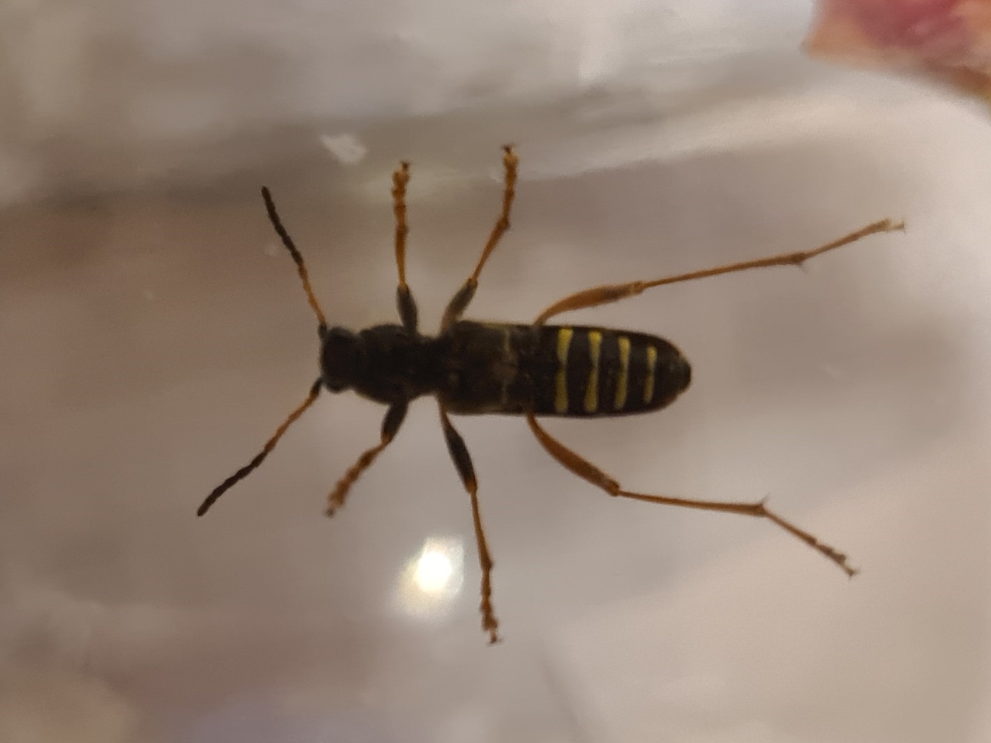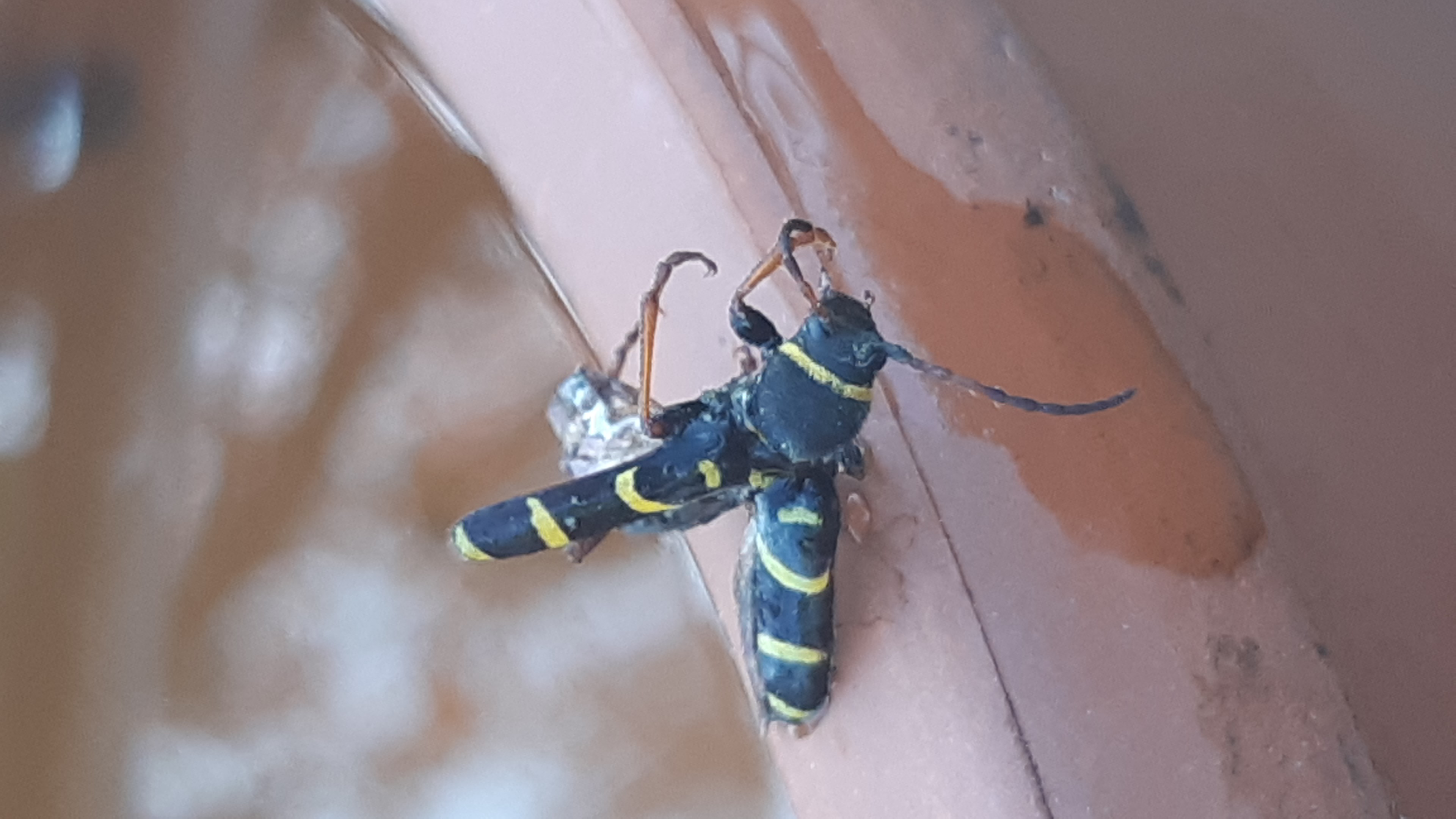 Gemeiner Widderbock (Clytus arietis (Linnaeus, 1758)),Freital/Zauckerode,Kurt-Heilbut-Str., Balkon,Mai 2019