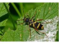 Gemeiner Widderbock (Clytus arietis (Linnaeus, 1758)),Freital/Zauckerode,Kurt-Heilbut-Str., Balkon,Mai 2019 (© Manfred Wonka)( Bild vergrößern)