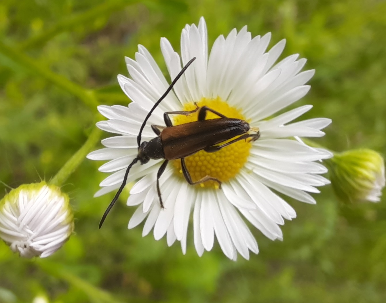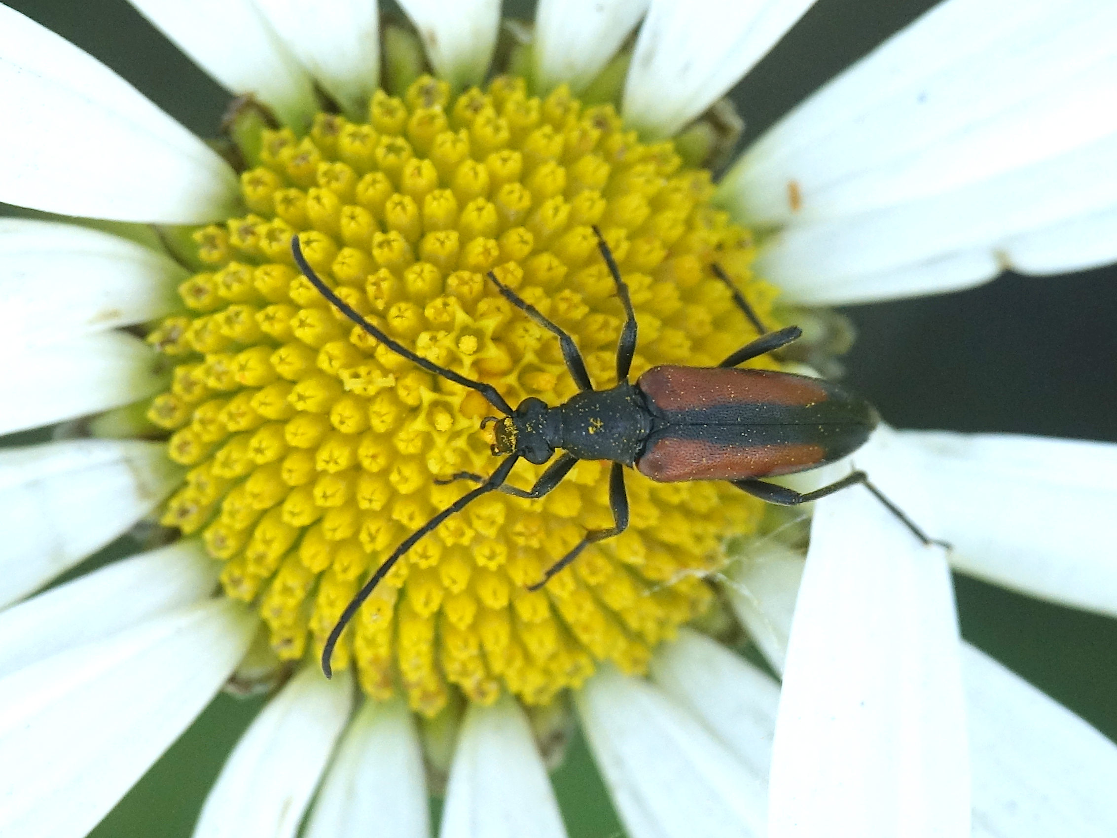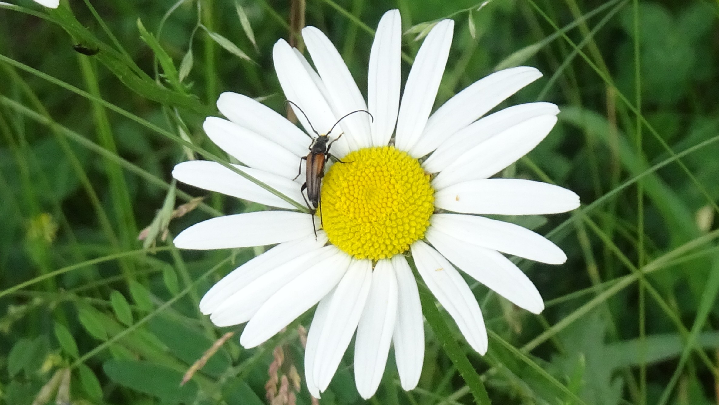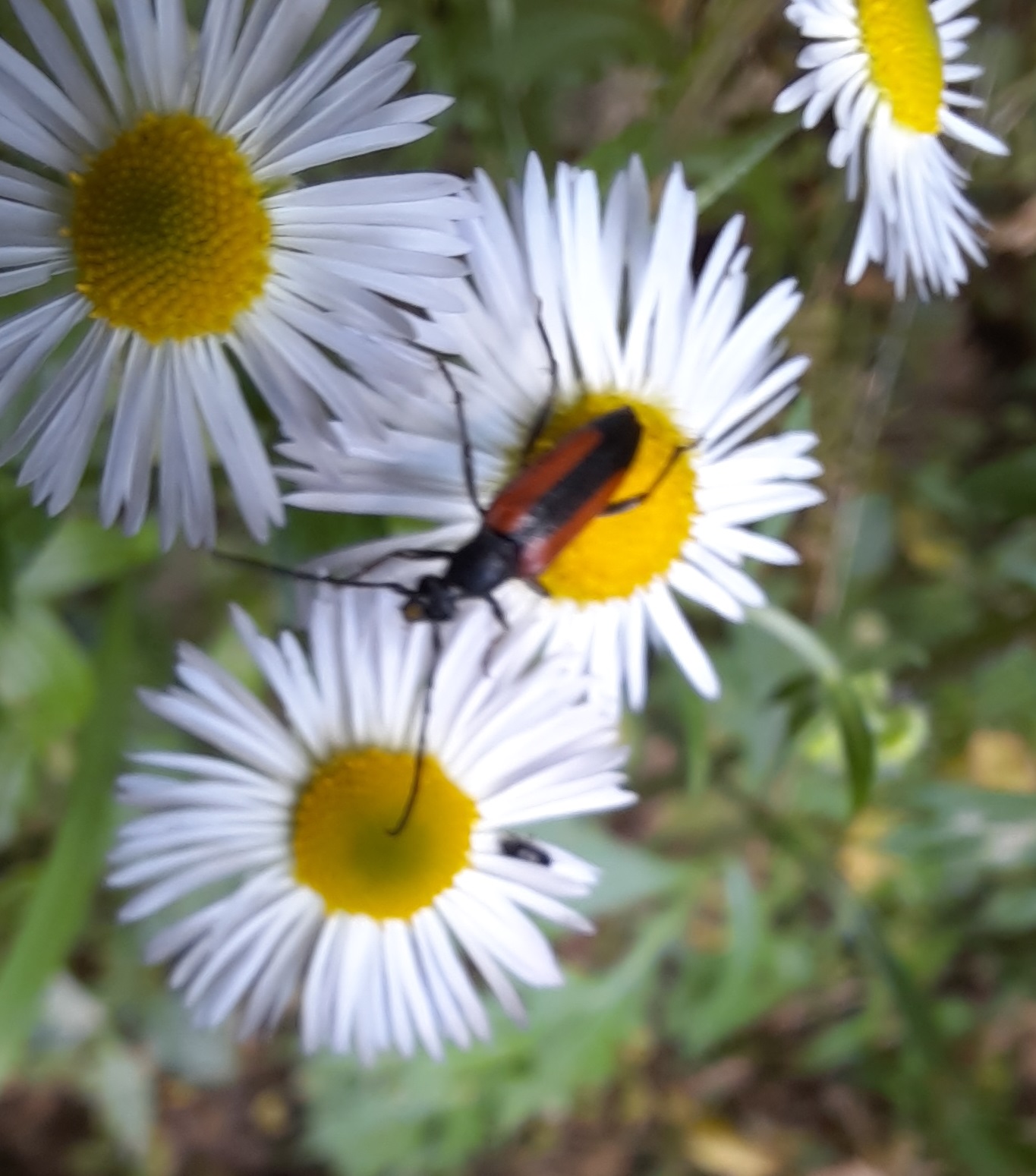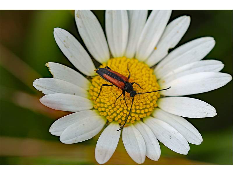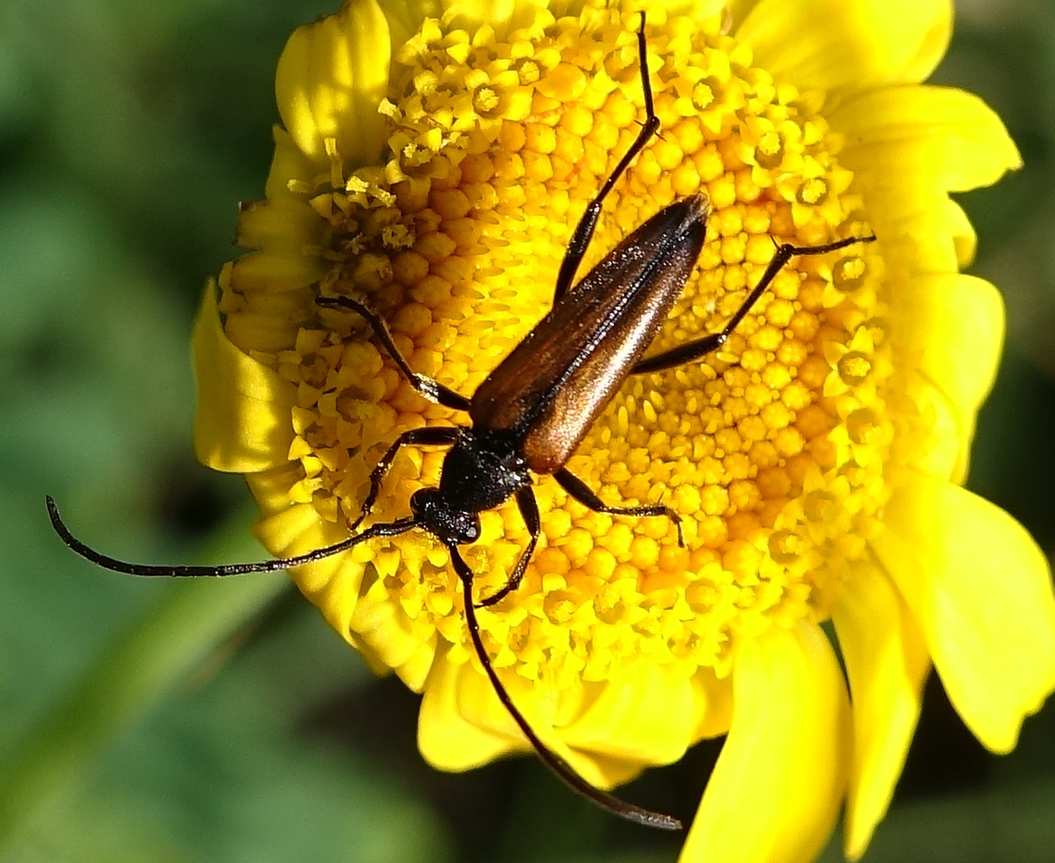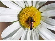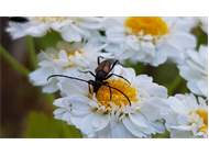 Kleiner Schmalbock (Stenurella melanura (Linnaeus, 1758)) am 14.06.2018 im Tharandter Wald am Triebischsee. auf einer kleinen mit Margeriten und Einjährigem Feinstrahl bewachsenen Fläche von nur 1 qm zählten wir 15 Exemplare