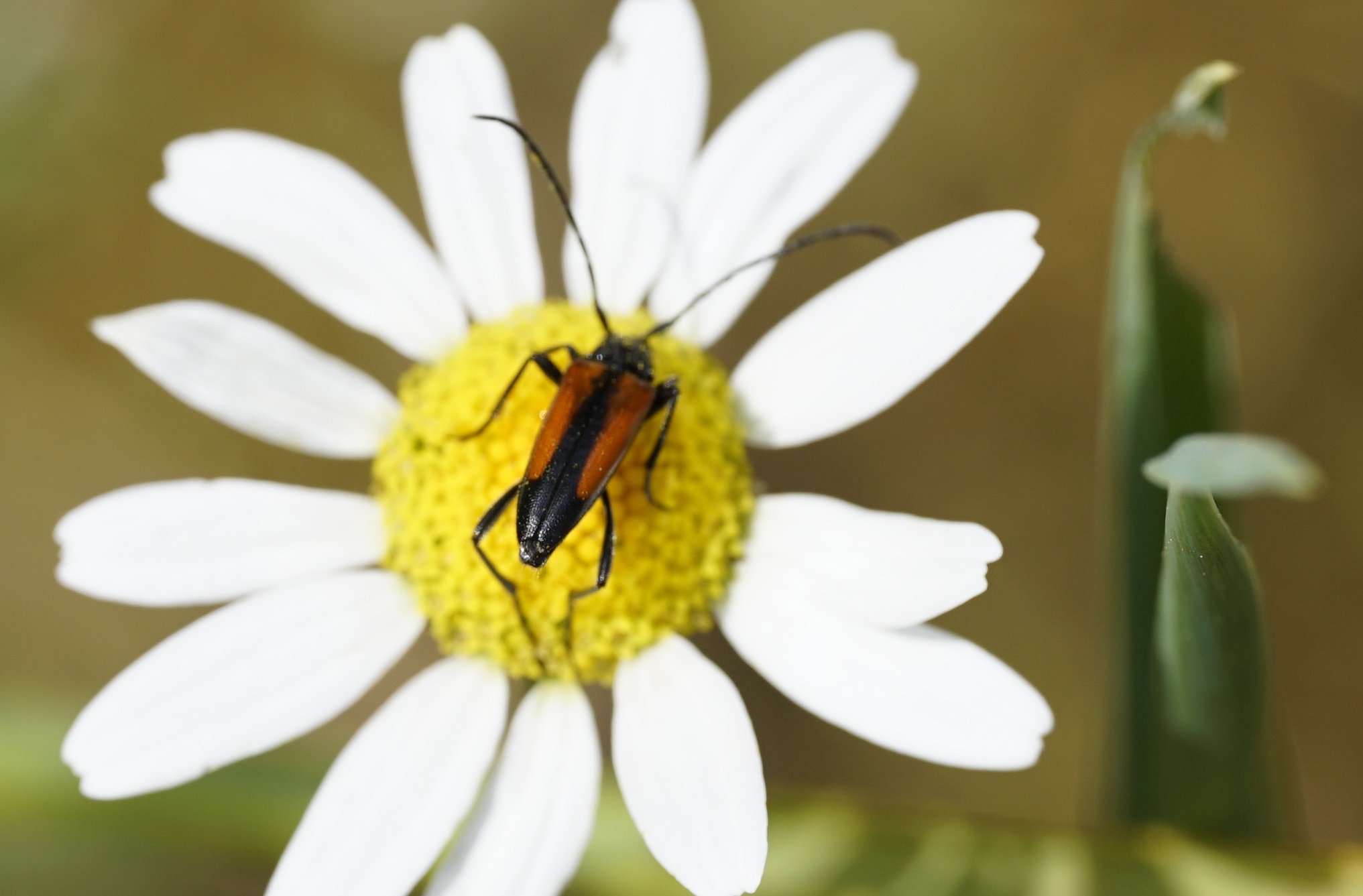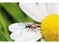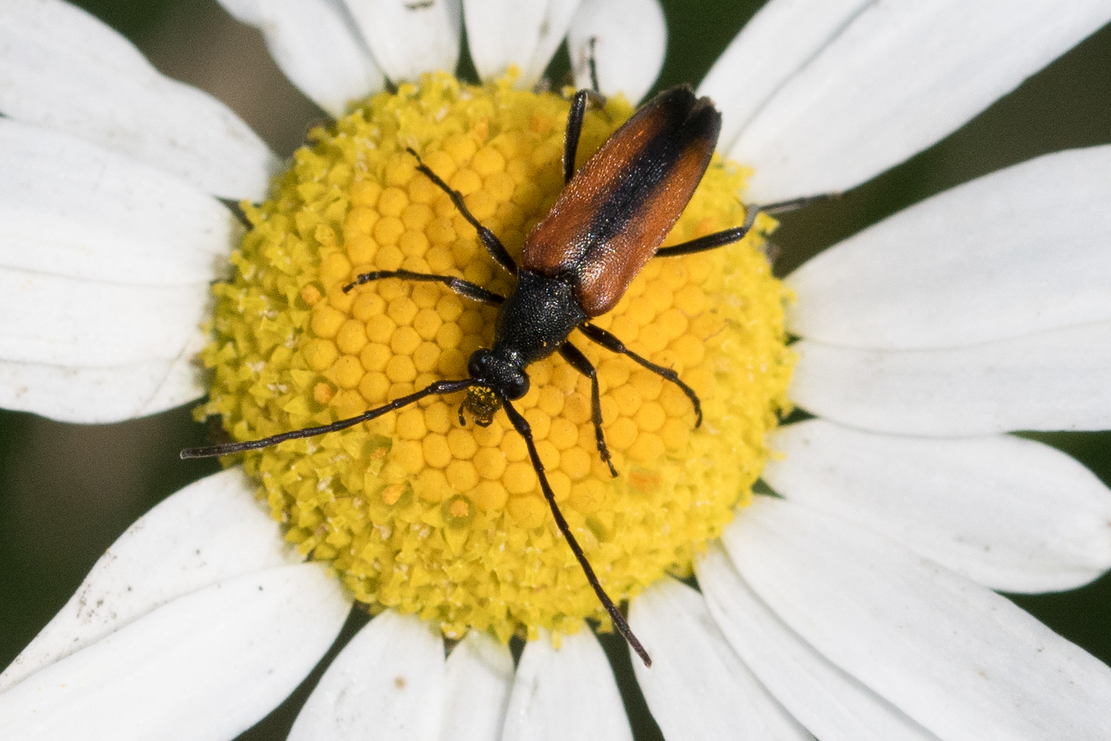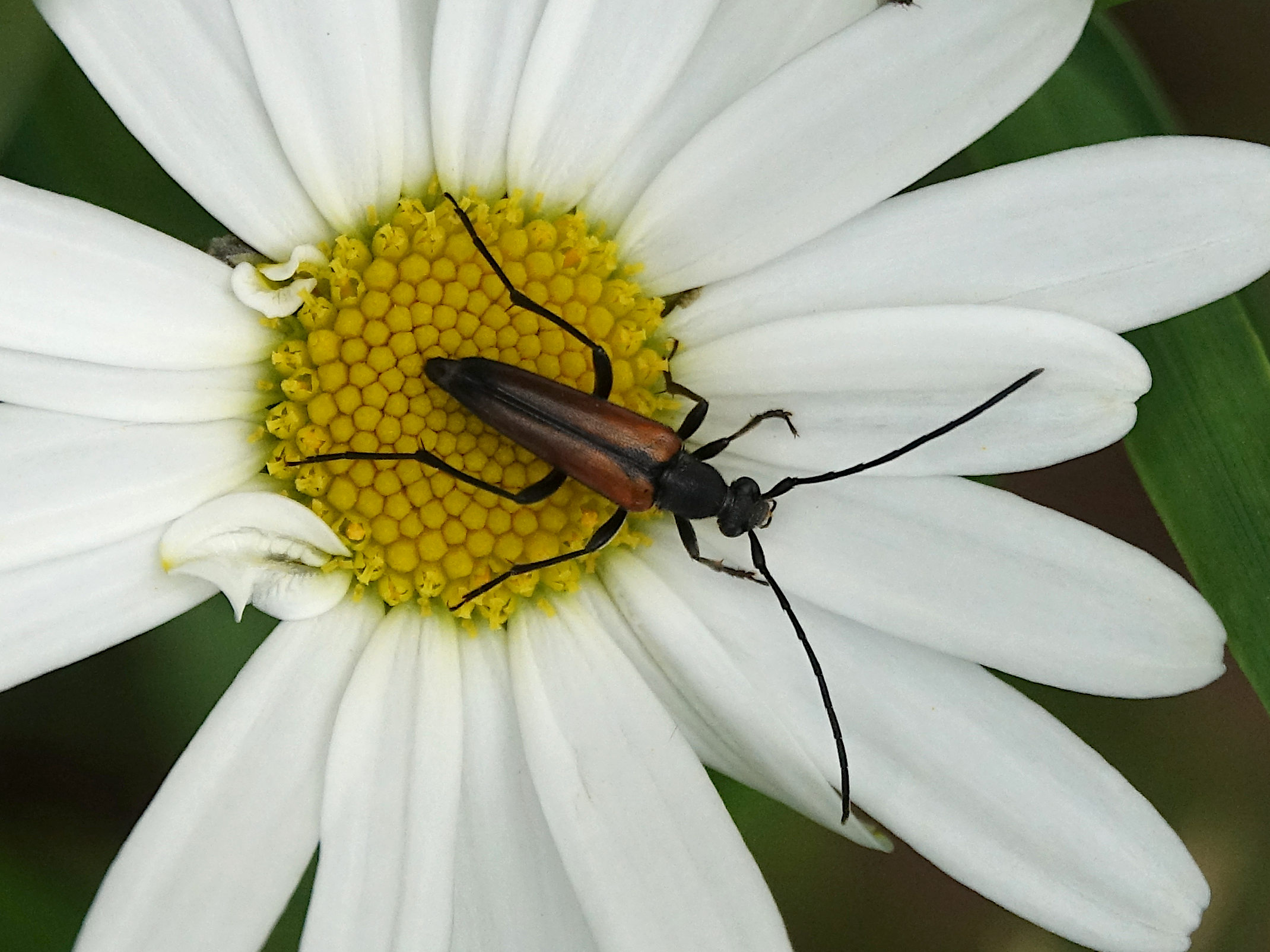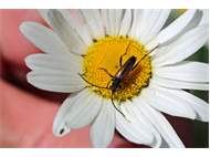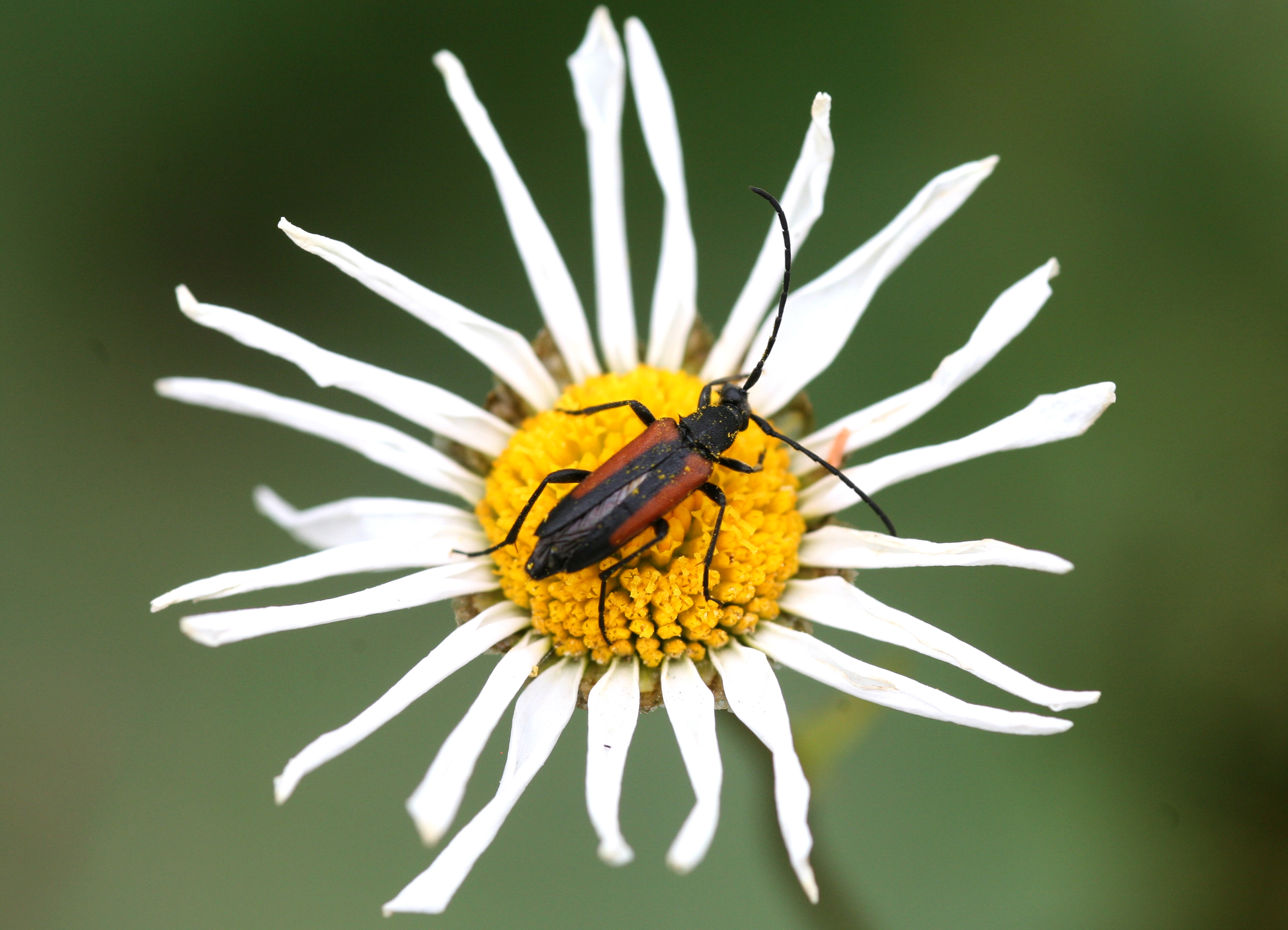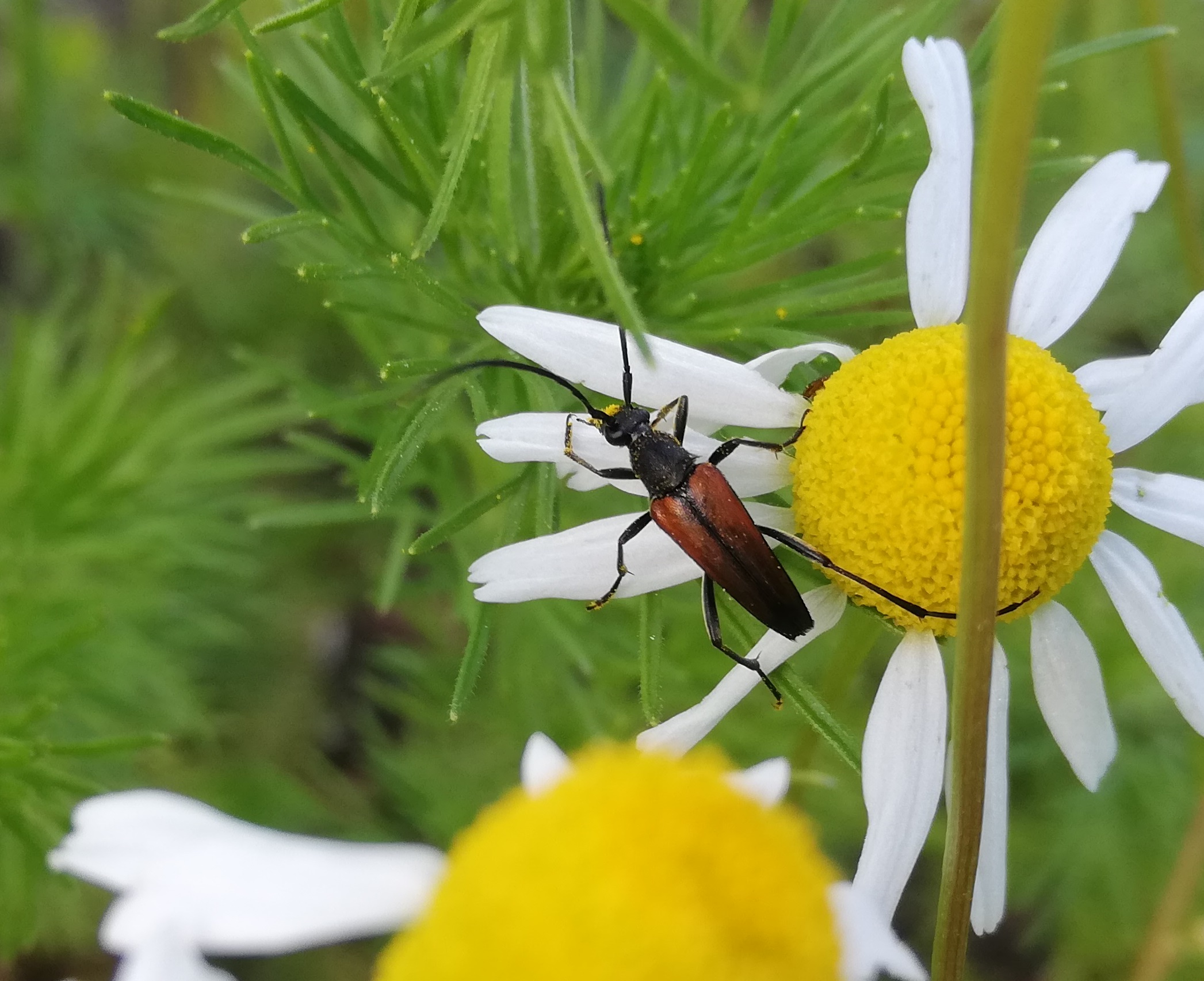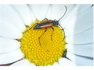 Kleiner Schmalbock (Stenurella melanura (Linnaeus, 1758)) am 14.06.2018 im Tharandter Wald am Triebischsee. auf einer kleinen mit Margeriten und Einjährigem Feinstrahl bewachsenen Fläche von nur 1 qm zählten wir 15 Exemplare