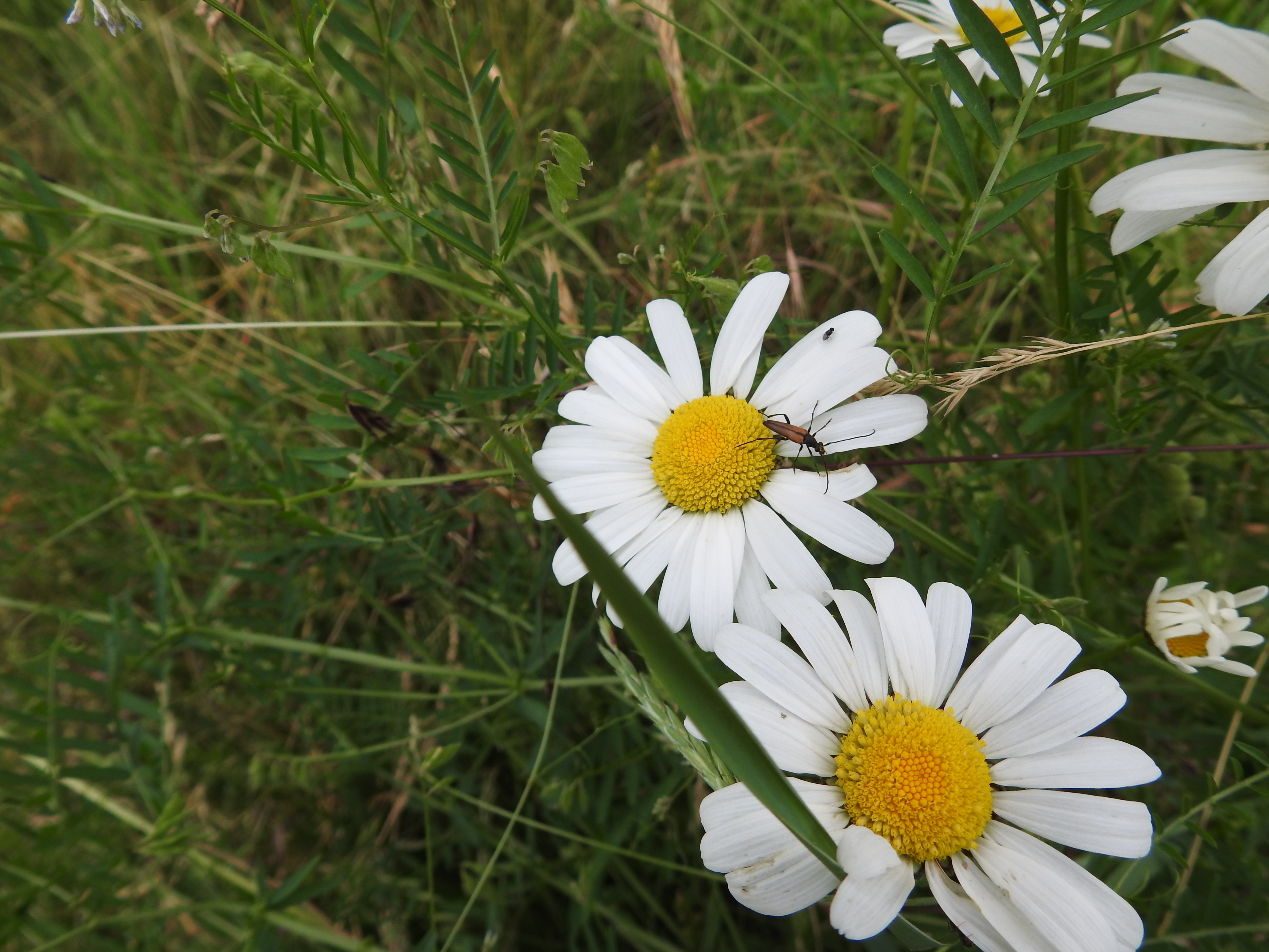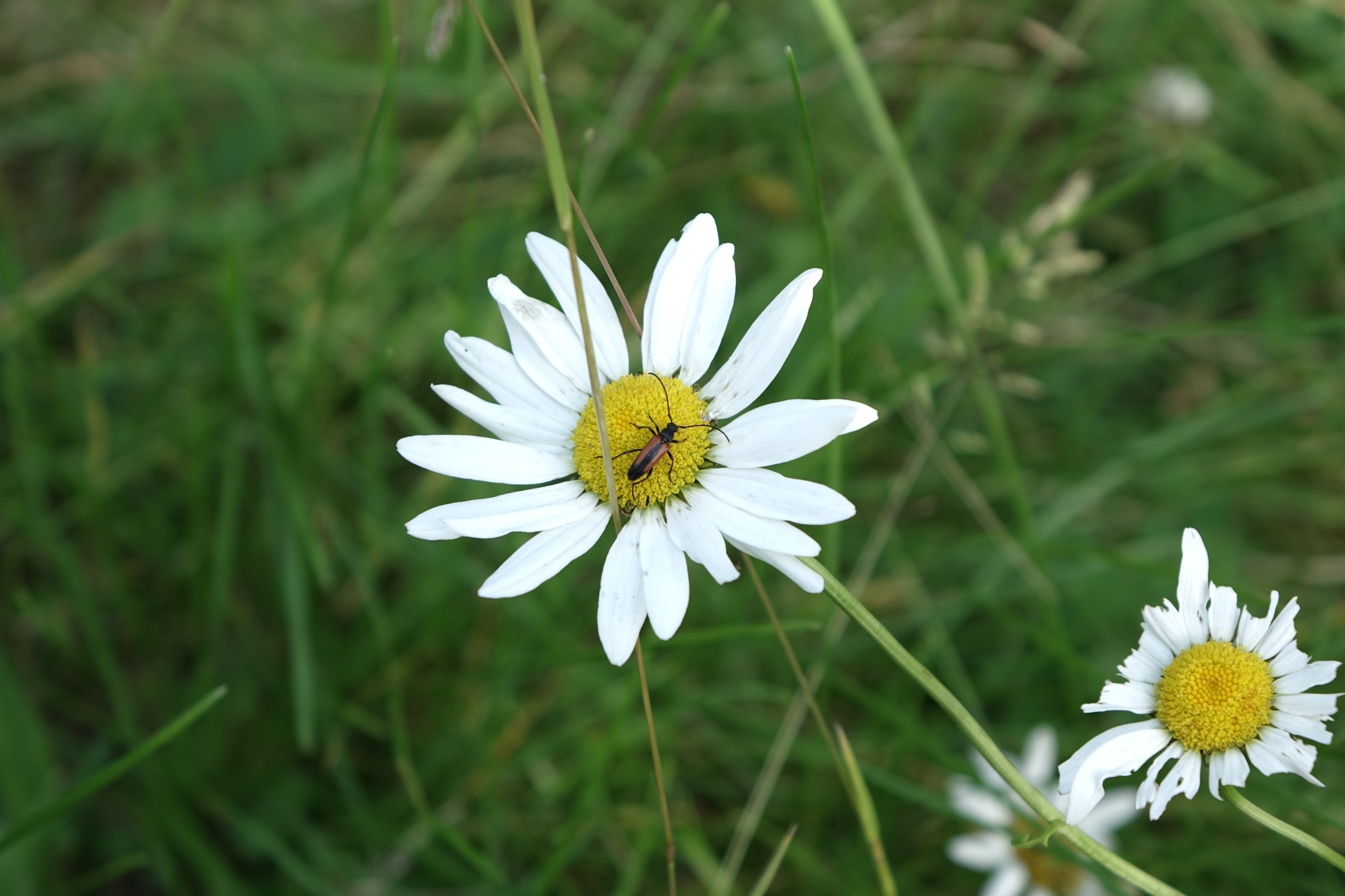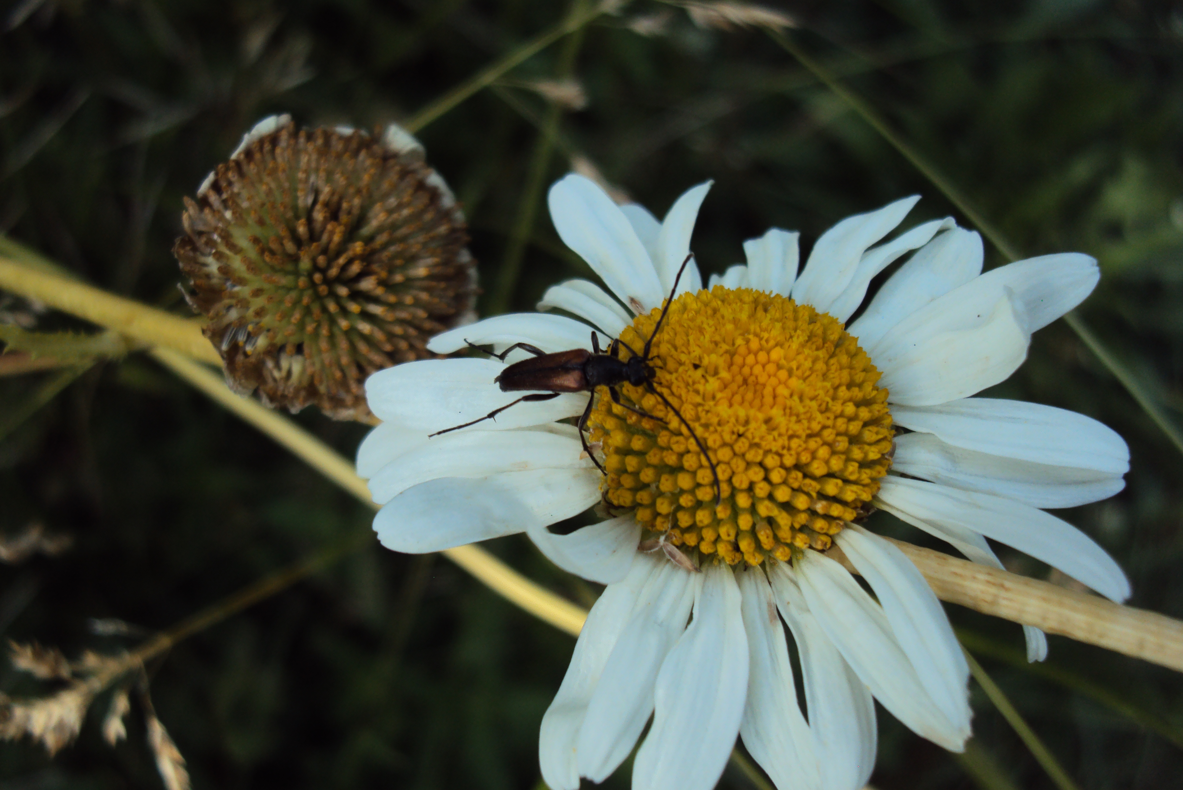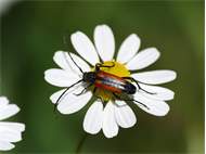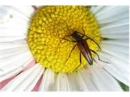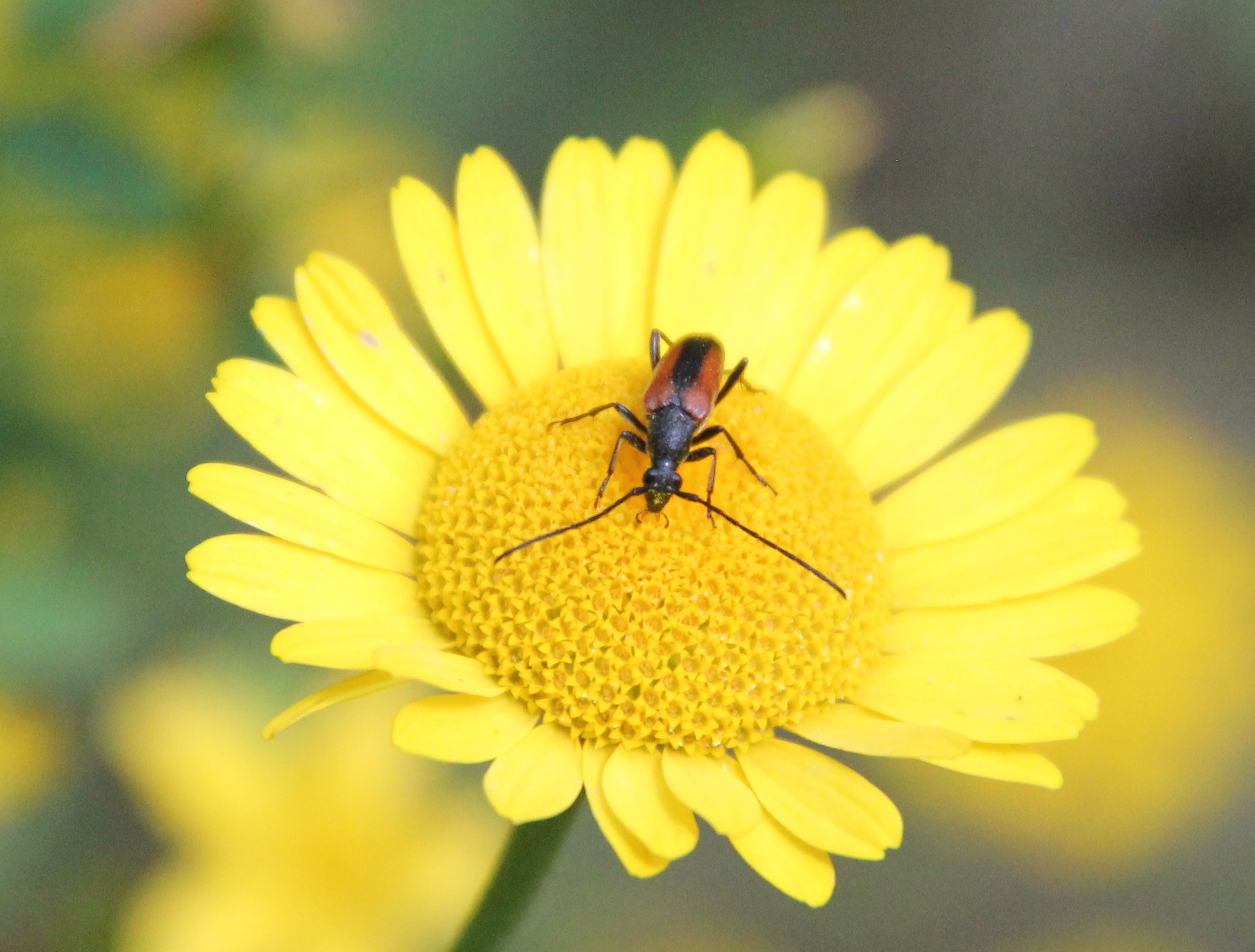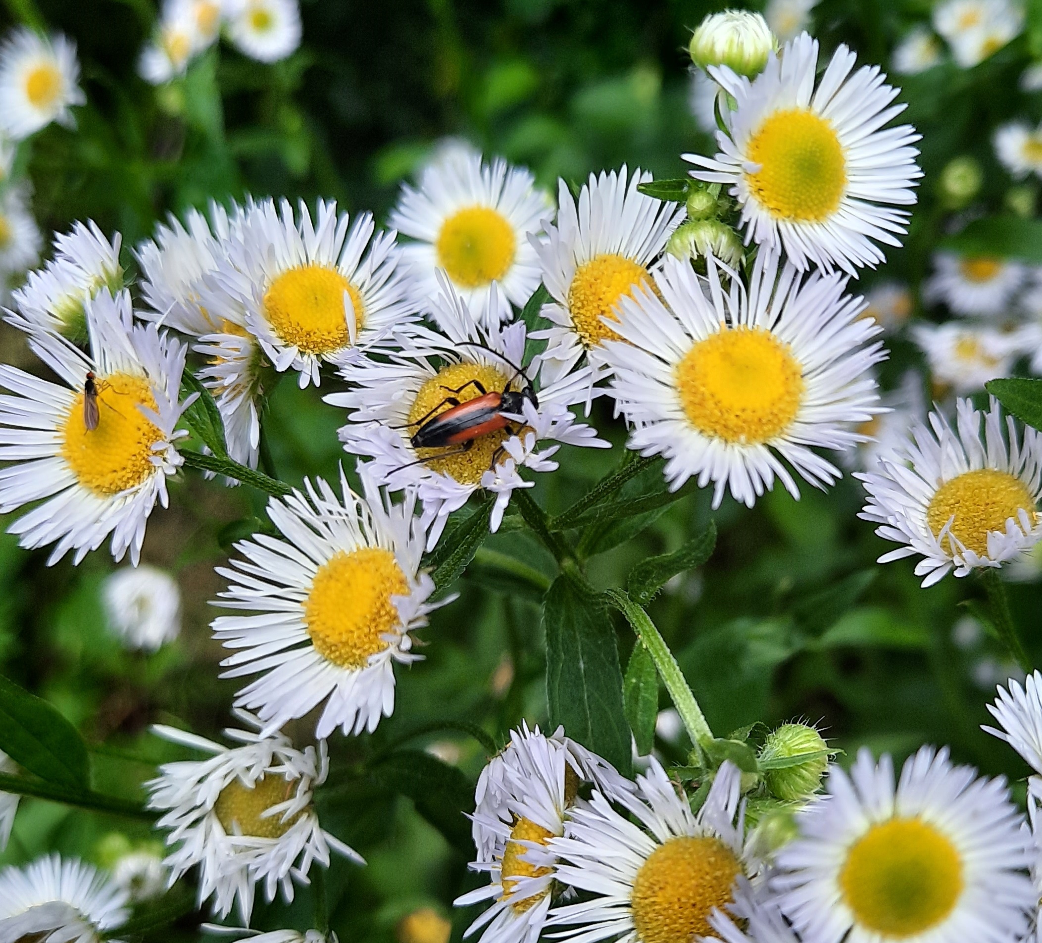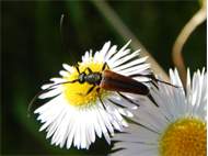 Kleiner Schmalbock (Stenurella melanura (Linnaeus, 1758)) am 14.06.2018 im Tharandter Wald am Triebischsee. auf einer kleinen mit Margeriten und Einjährigem Feinstrahl bewachsenen Fläche von nur 1 qm zählten wir 15 Exemplare