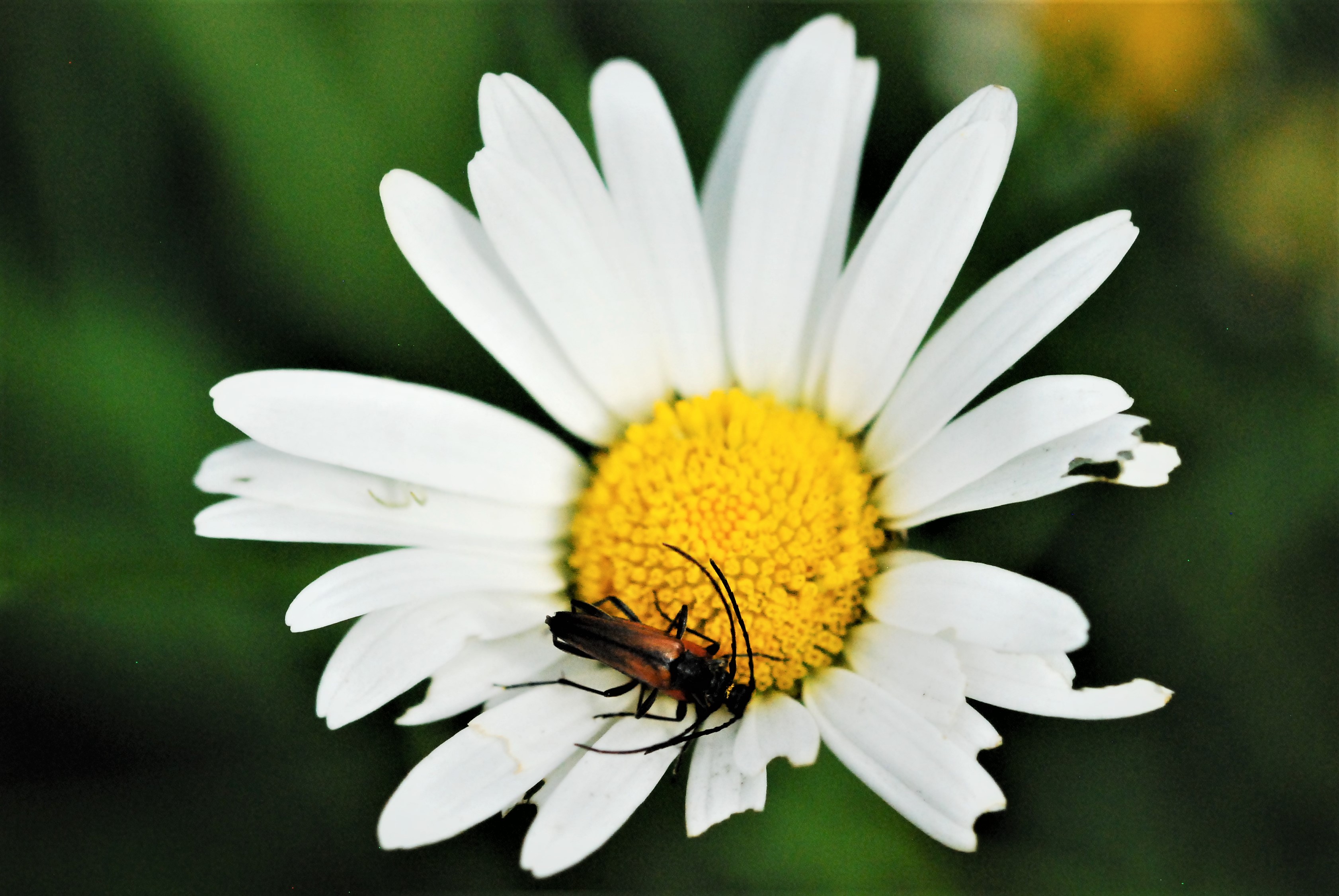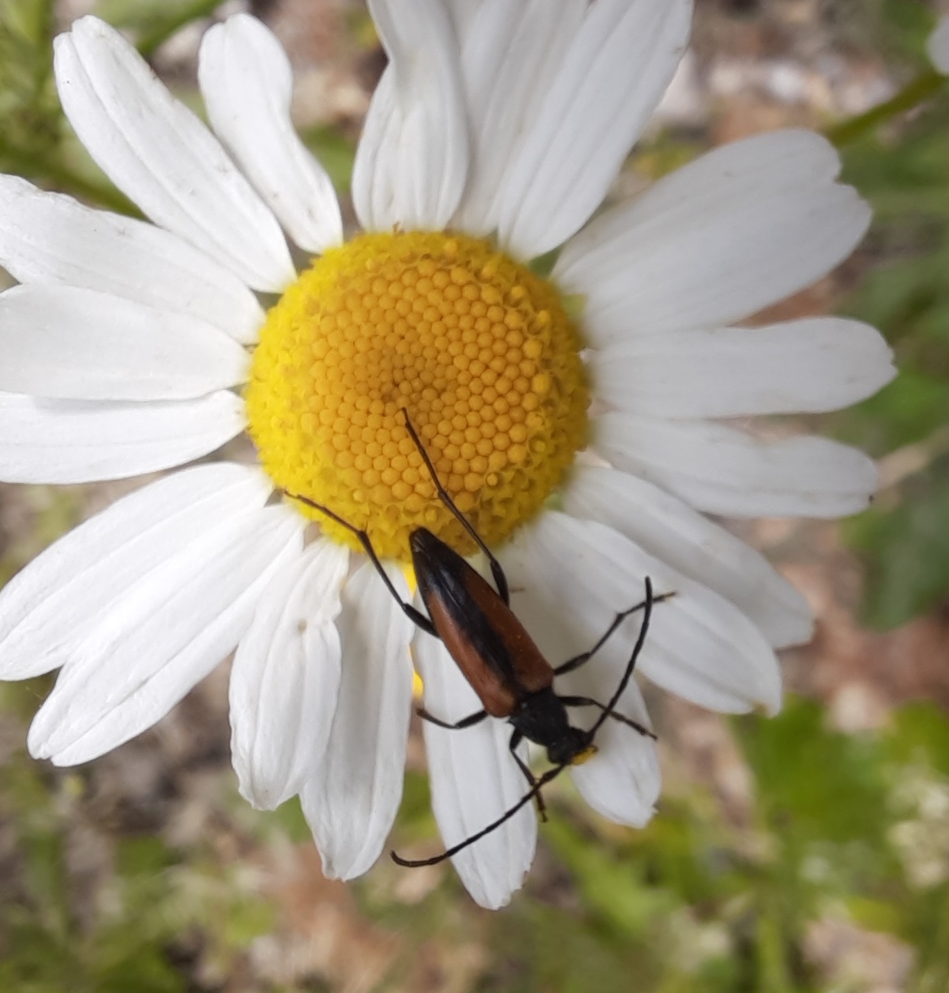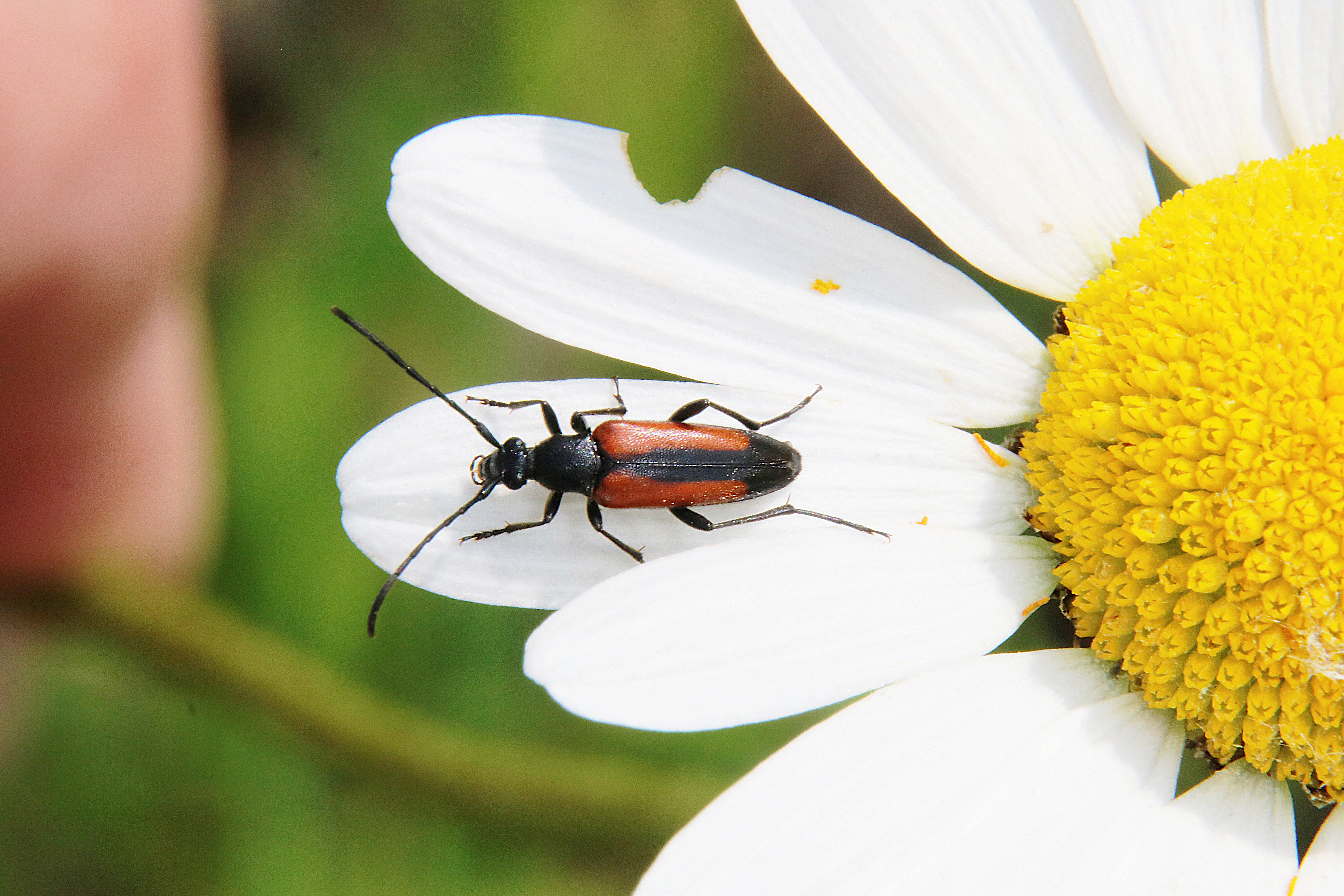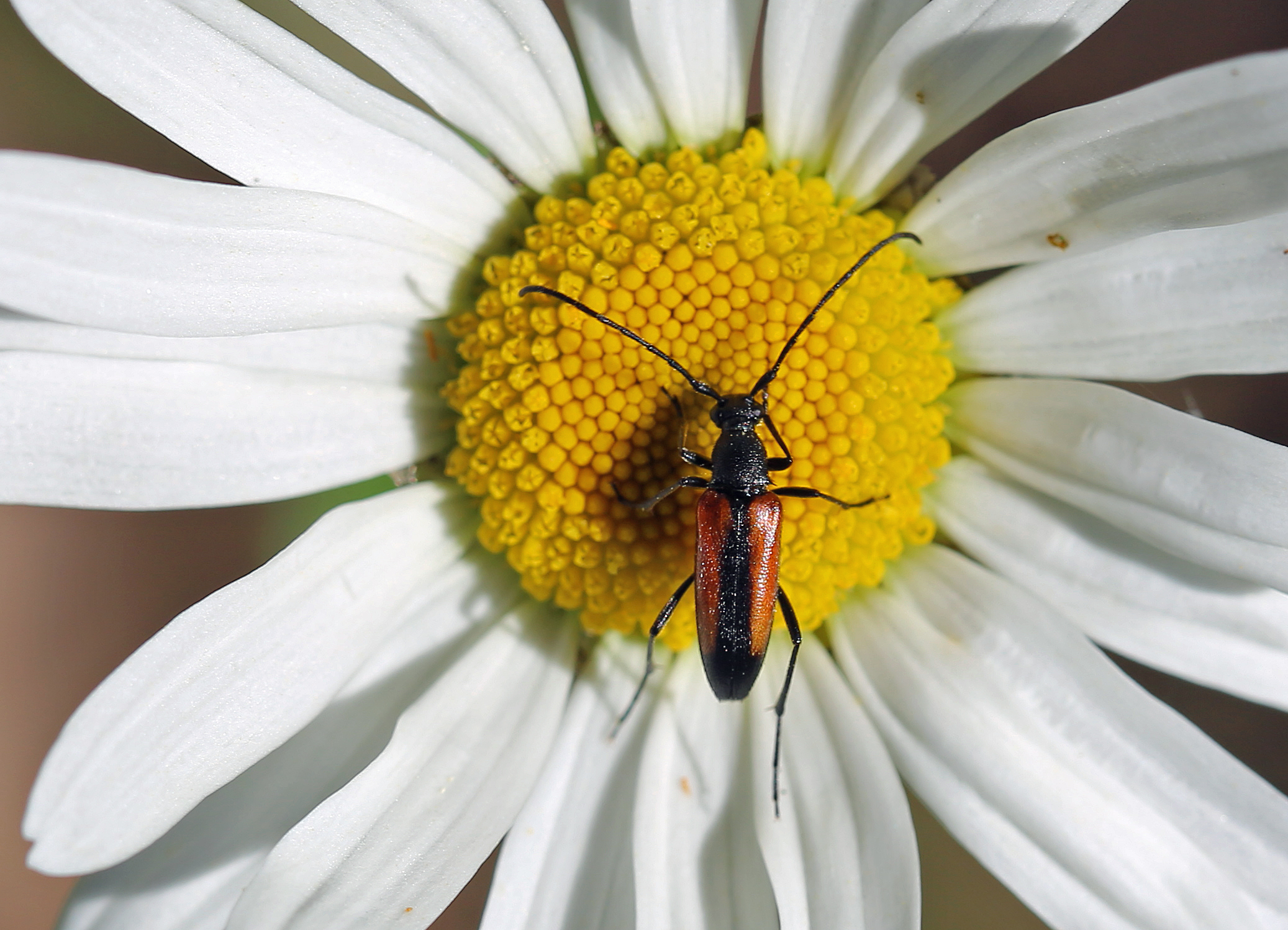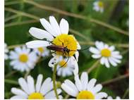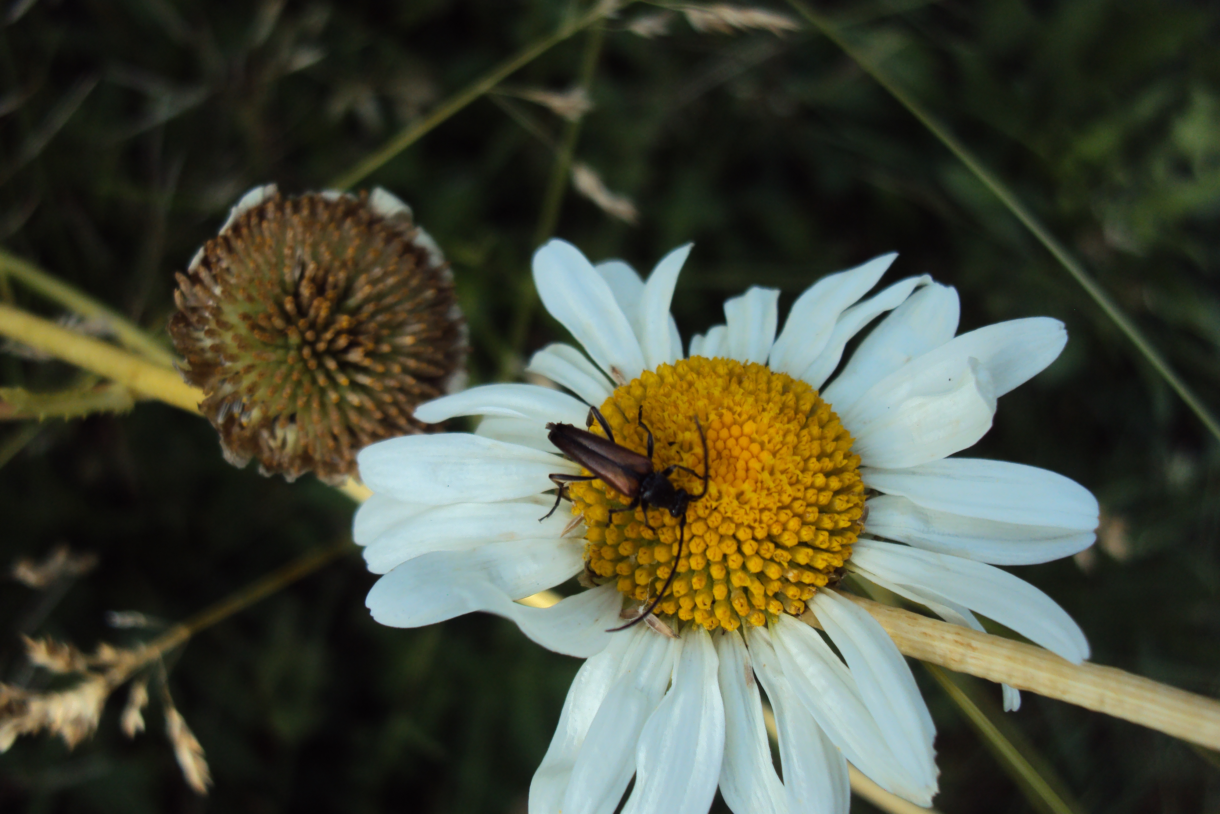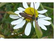 Kleiner Schmalbock (Stenurella melanura (Linnaeus, 1758)) am 14.06.2018 im Tharandter Wald am Triebischsee. auf einer kleinen mit Margeriten und Einjährigem Feinstrahl bewachsenen Fläche von nur 1 qm zählten wir 15 Exemplare