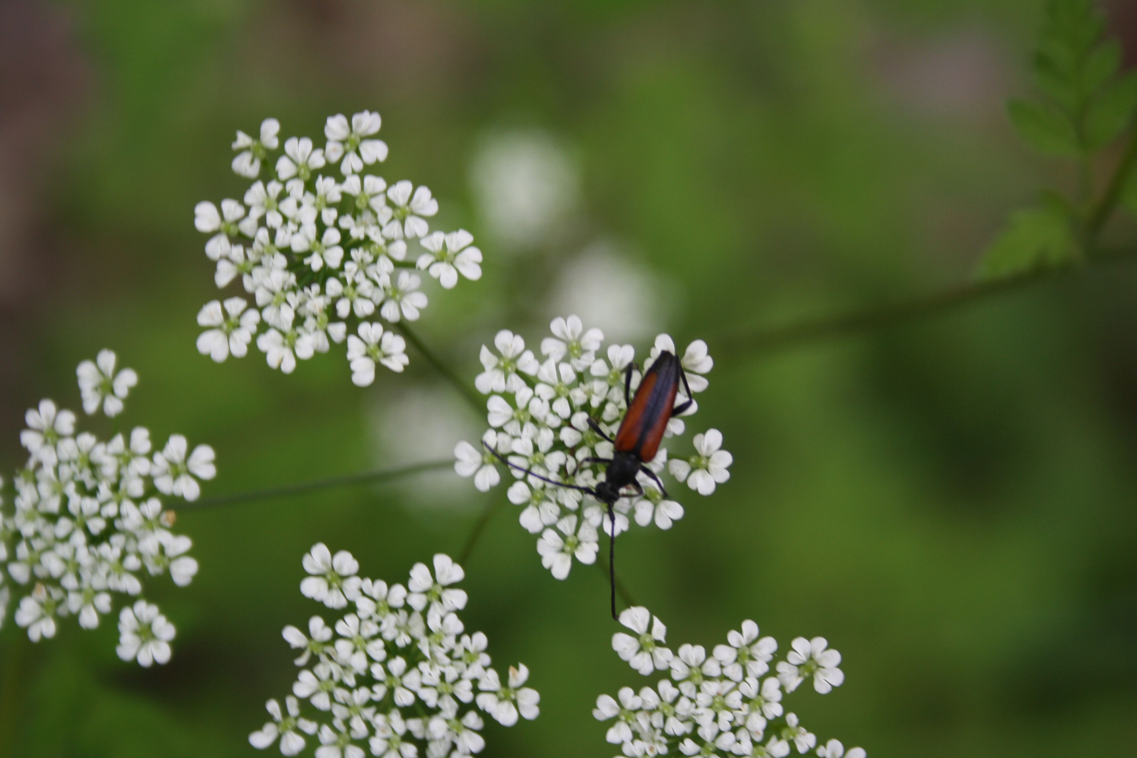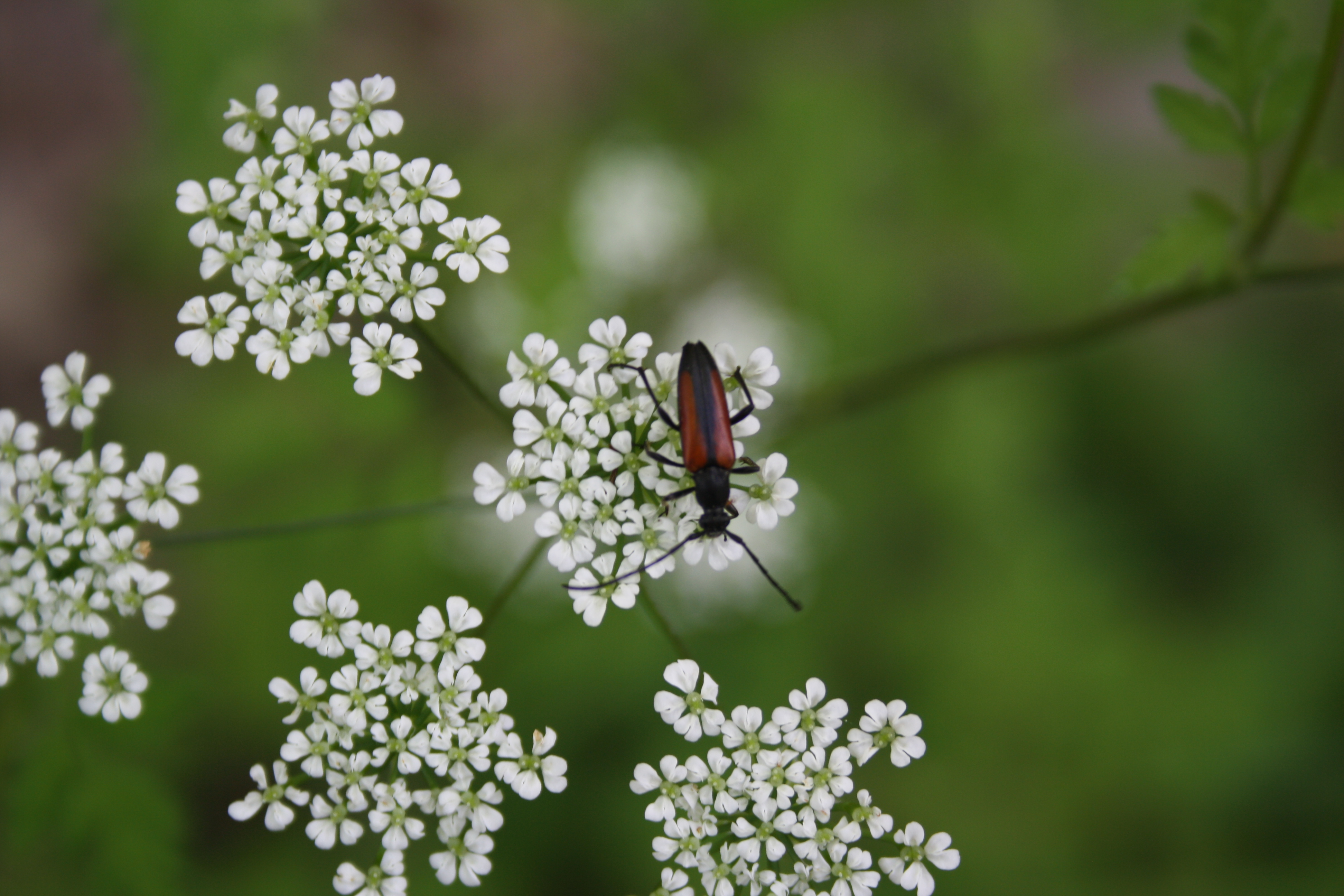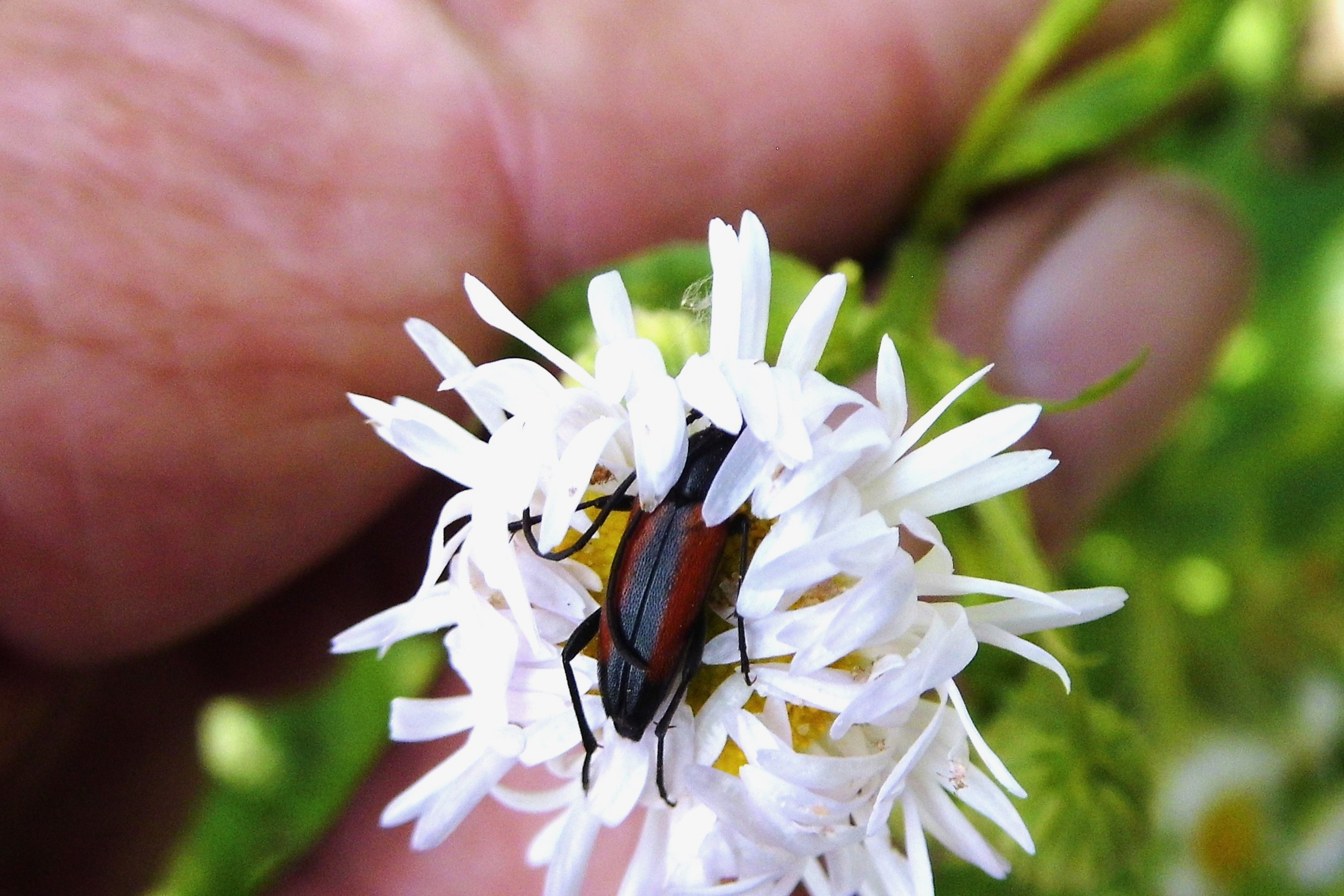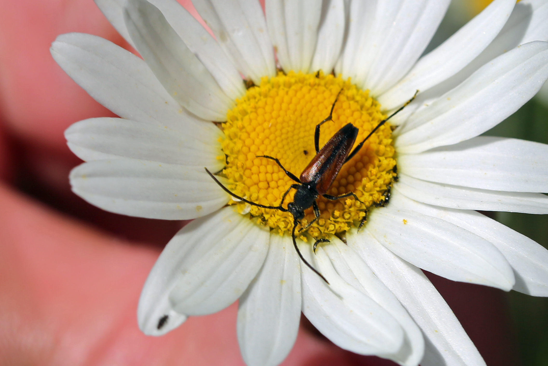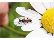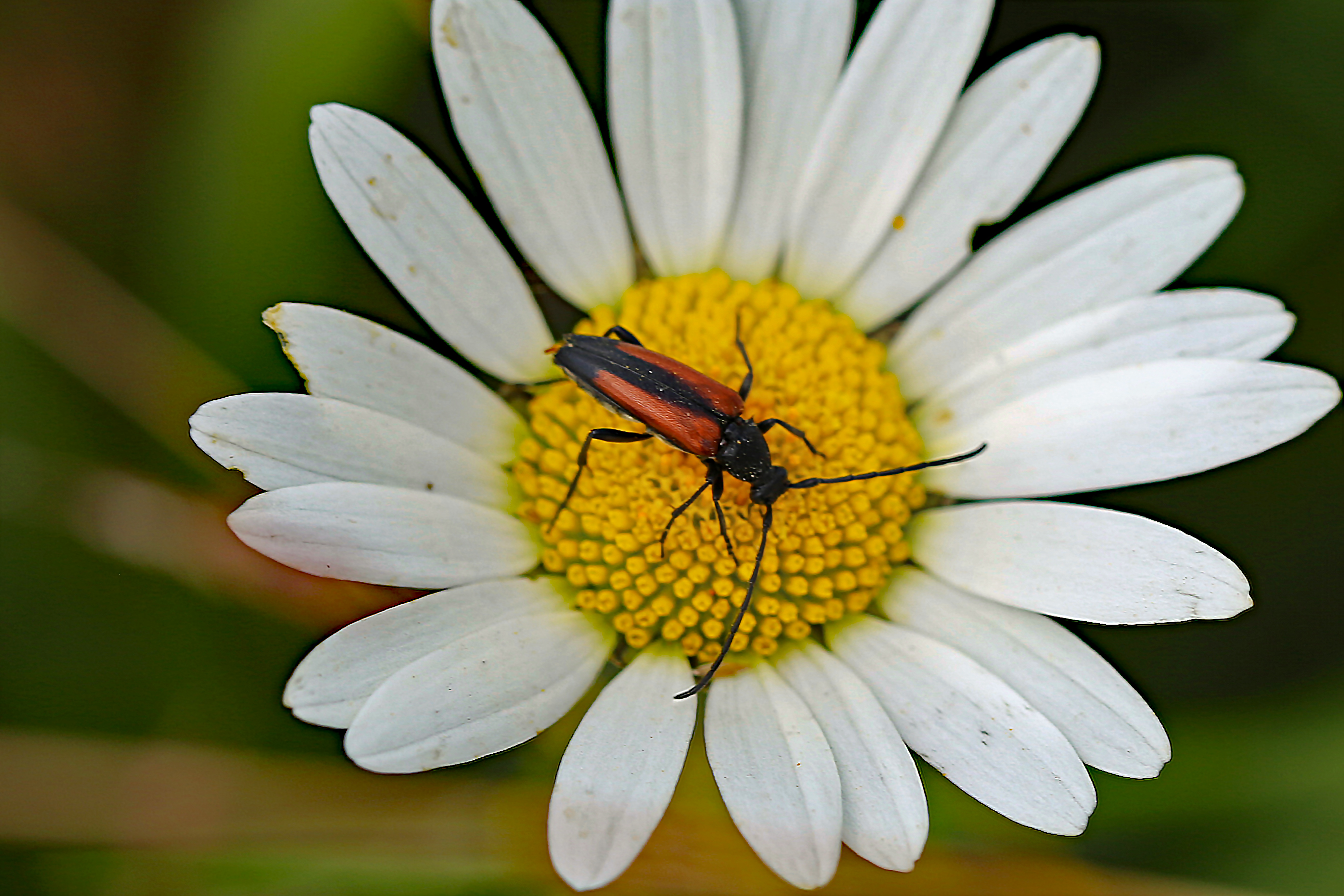 Kleiner Schmalbock (Stenurella melanura (Linnaeus, 1758)) am 14.06.2018 im Tharandter Wald am Triebischsee. auf einer kleinen mit Margeriten und Einjährigem Feinstrahl bewachsenen Fläche von nur 1 qm zählten wir 15 Exemplare