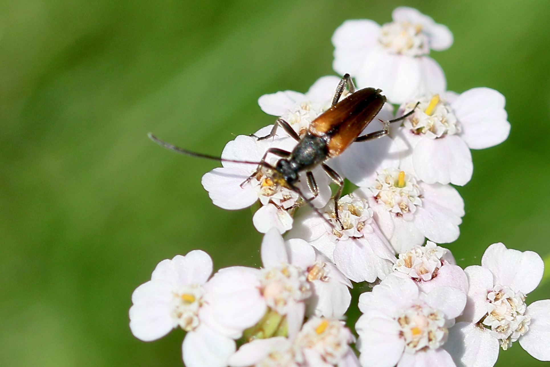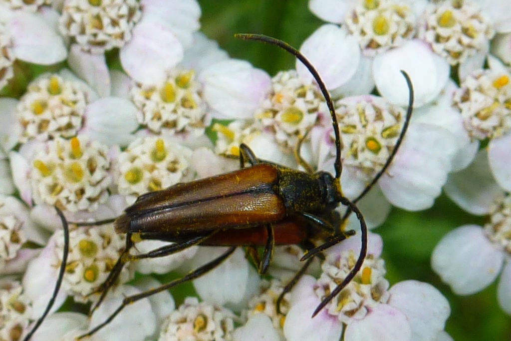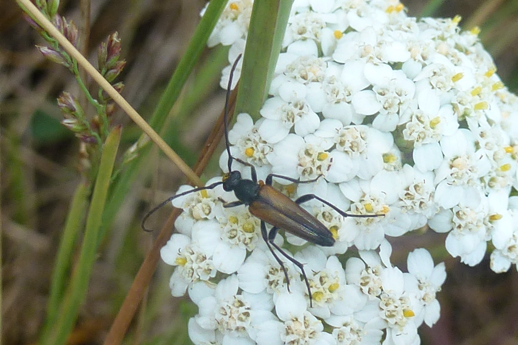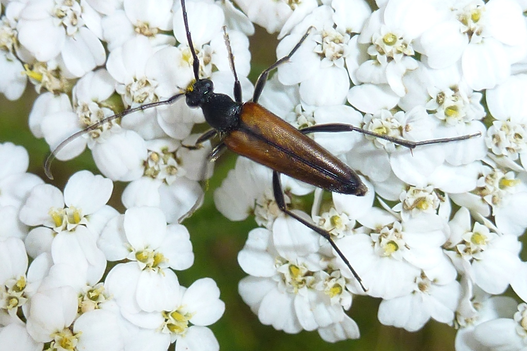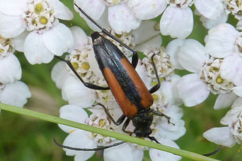 Stenurella melanura auf Blütenkorb von Achillea ptarmica, Annaberg-Buchholz, Wiese bei den Stechgutteichen, 04.08.2017