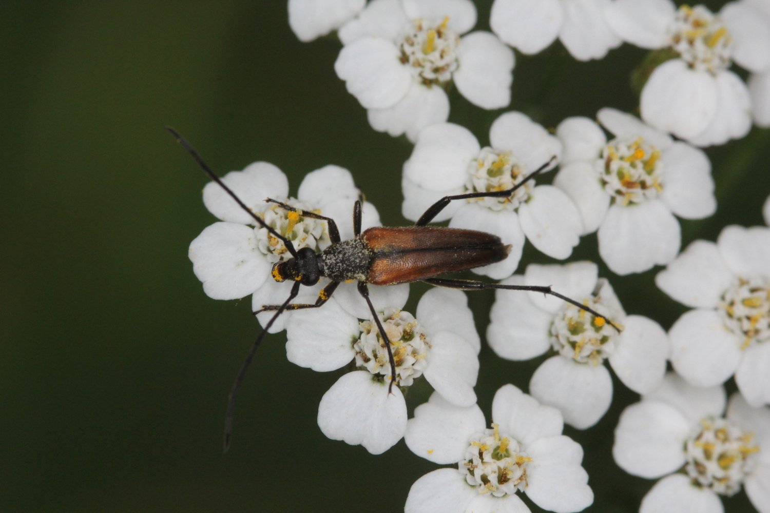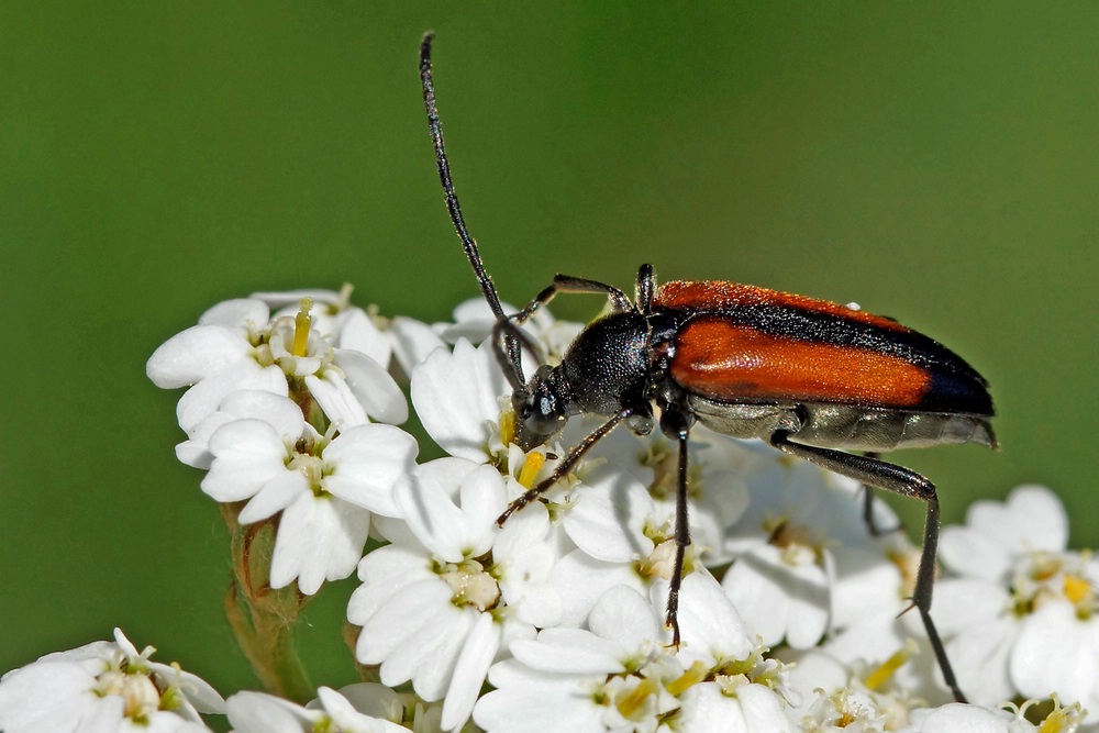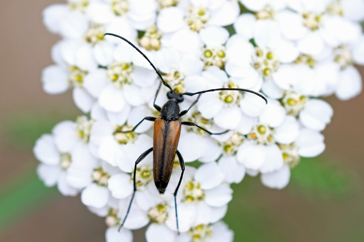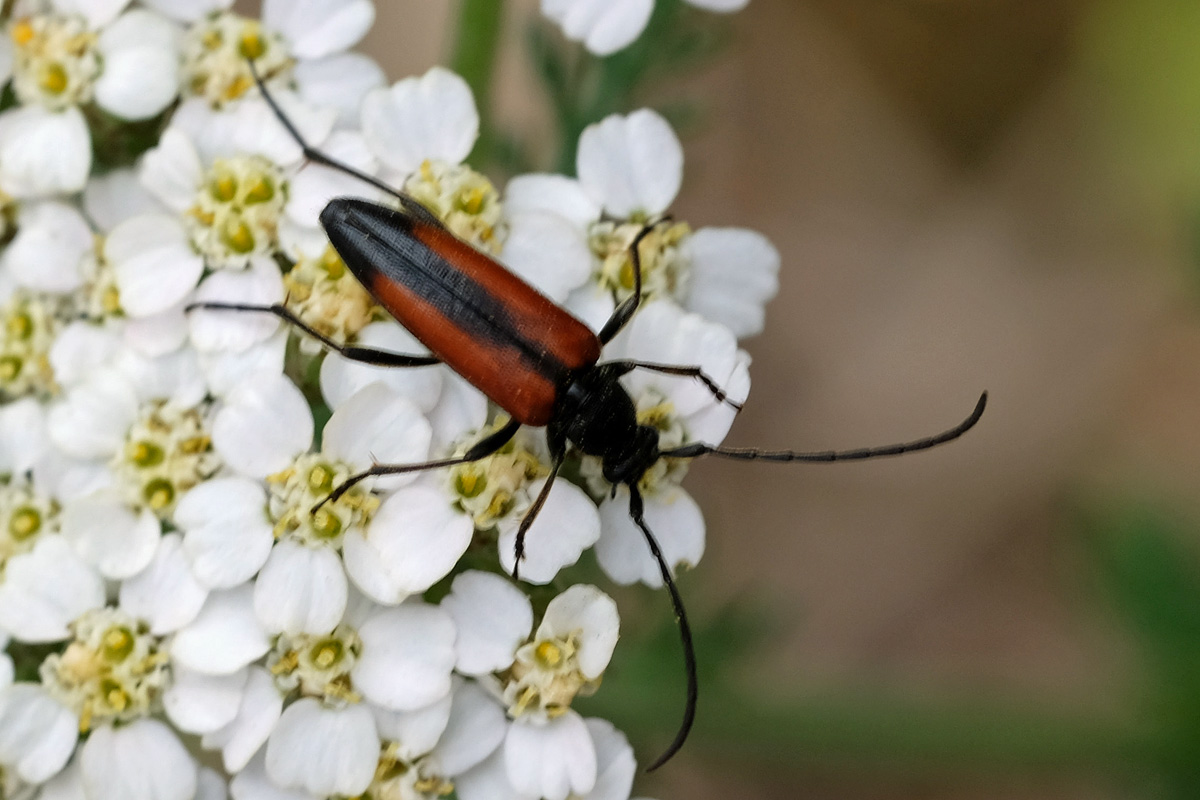 Stenurella melanura auf Blütenkorb von Achillea ptarmica, Annaberg-Buchholz, Wiese bei den Stechgutteichen, 04.08.2017