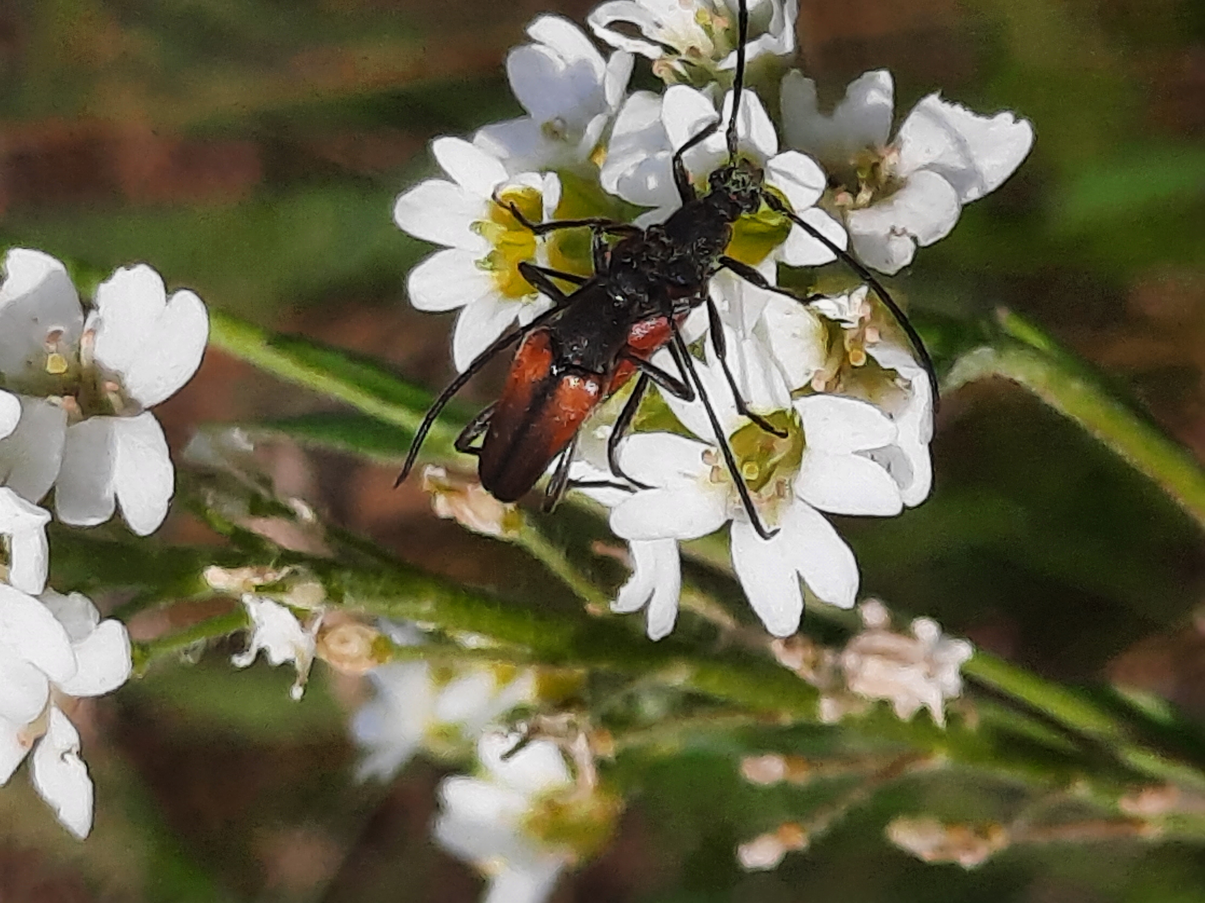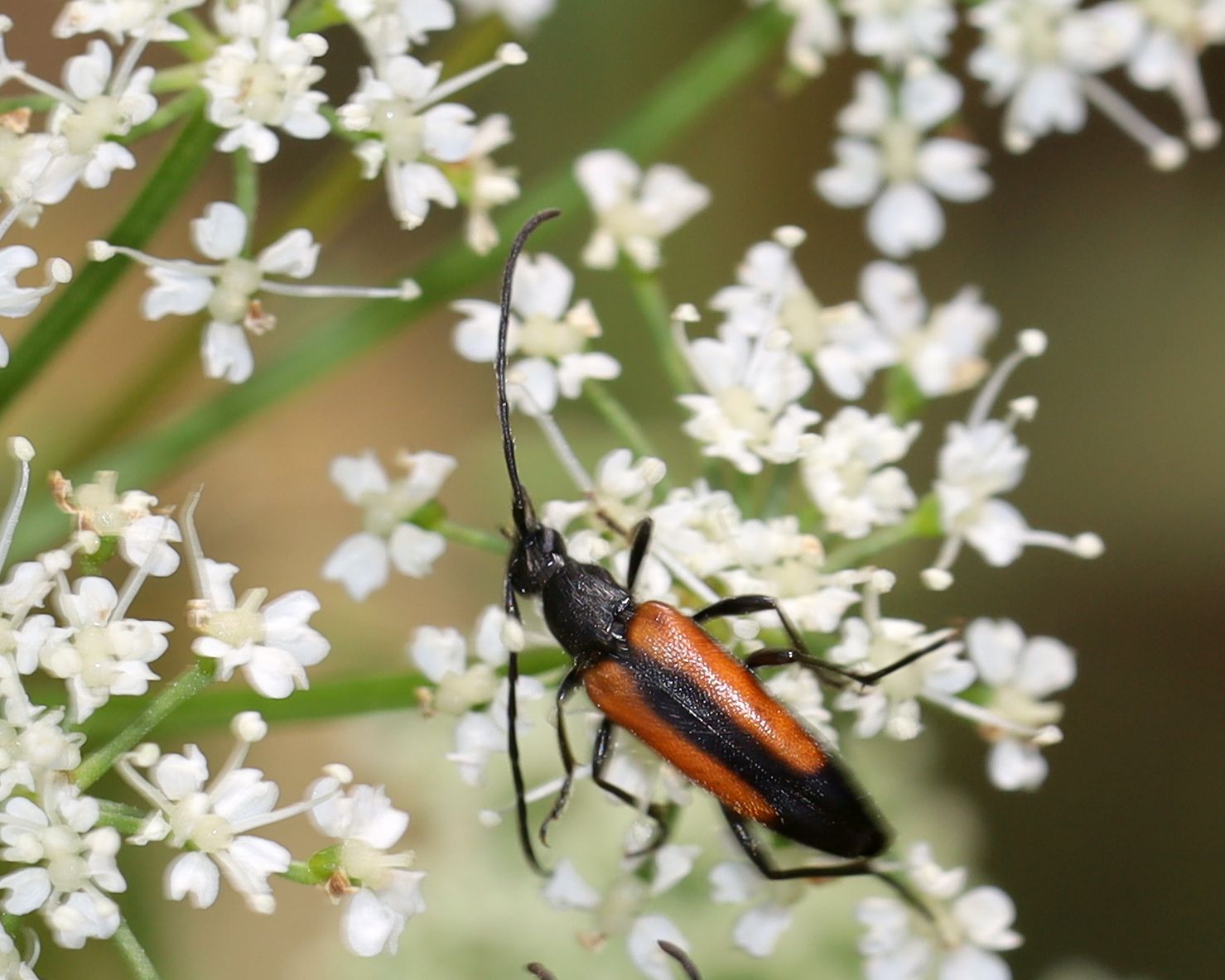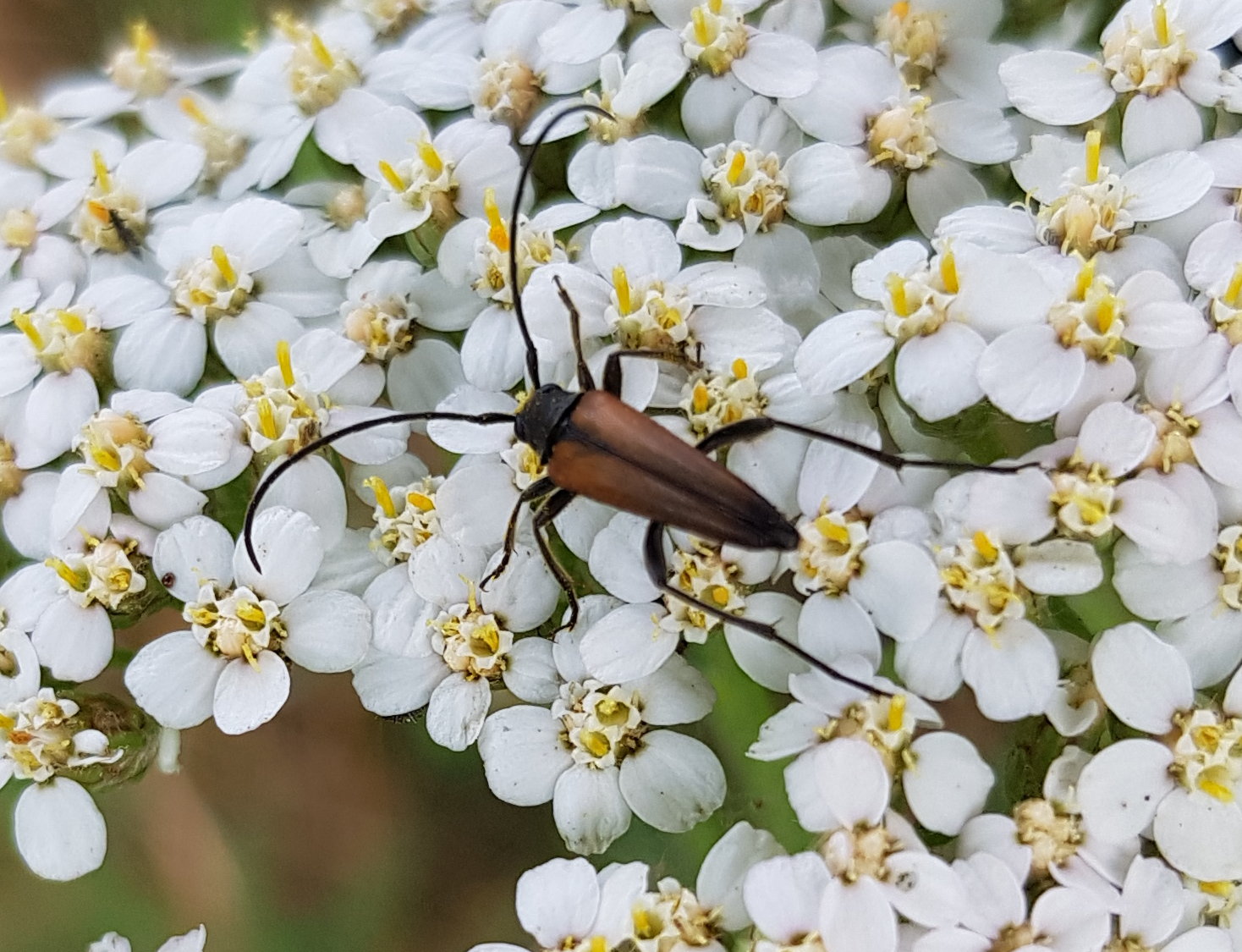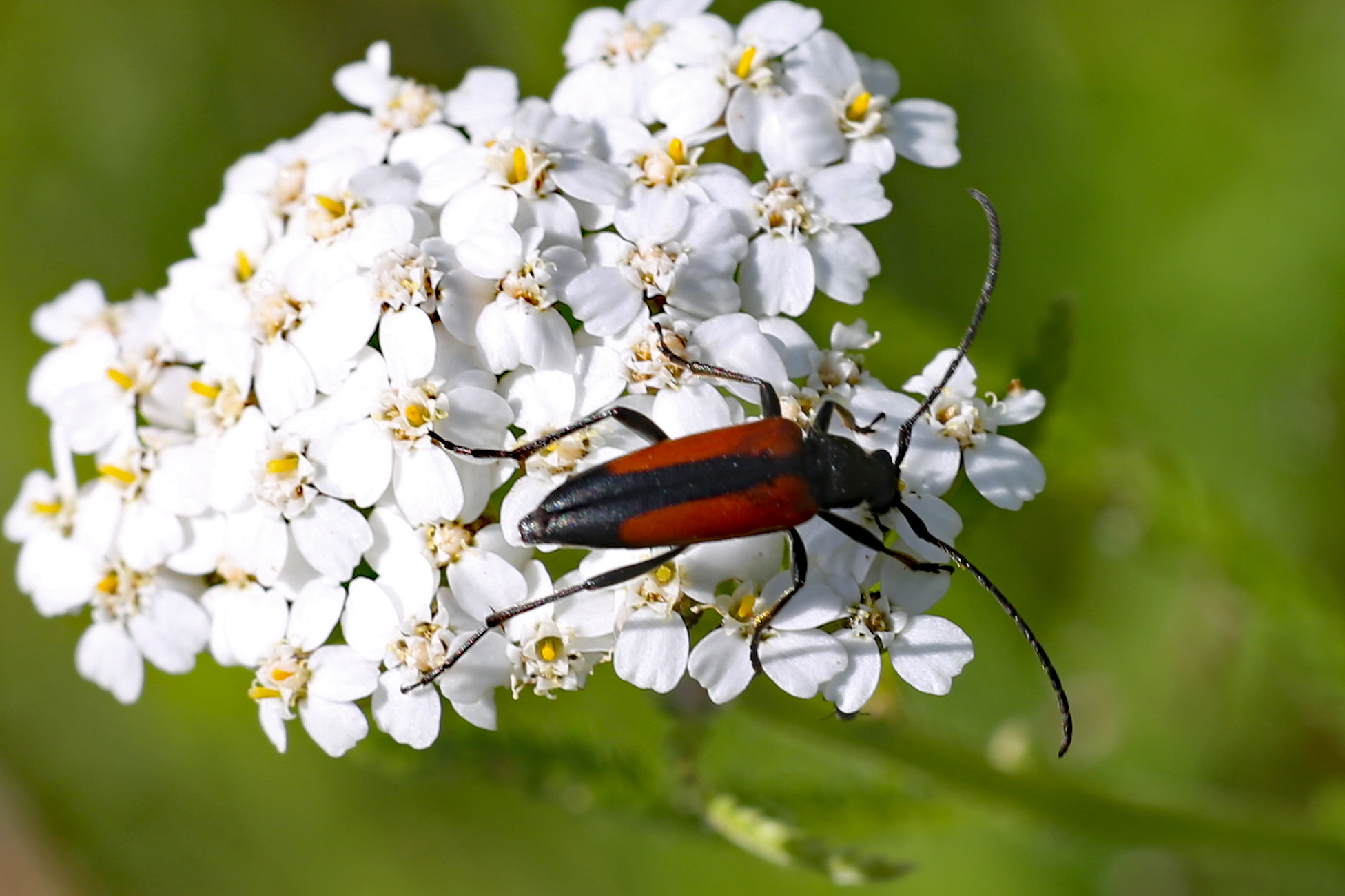 Stenurella melanura auf Blütenkorb von Achillea ptarmica, Annaberg-Buchholz, Wiese bei den Stechgutteichen, 04.08.2017
