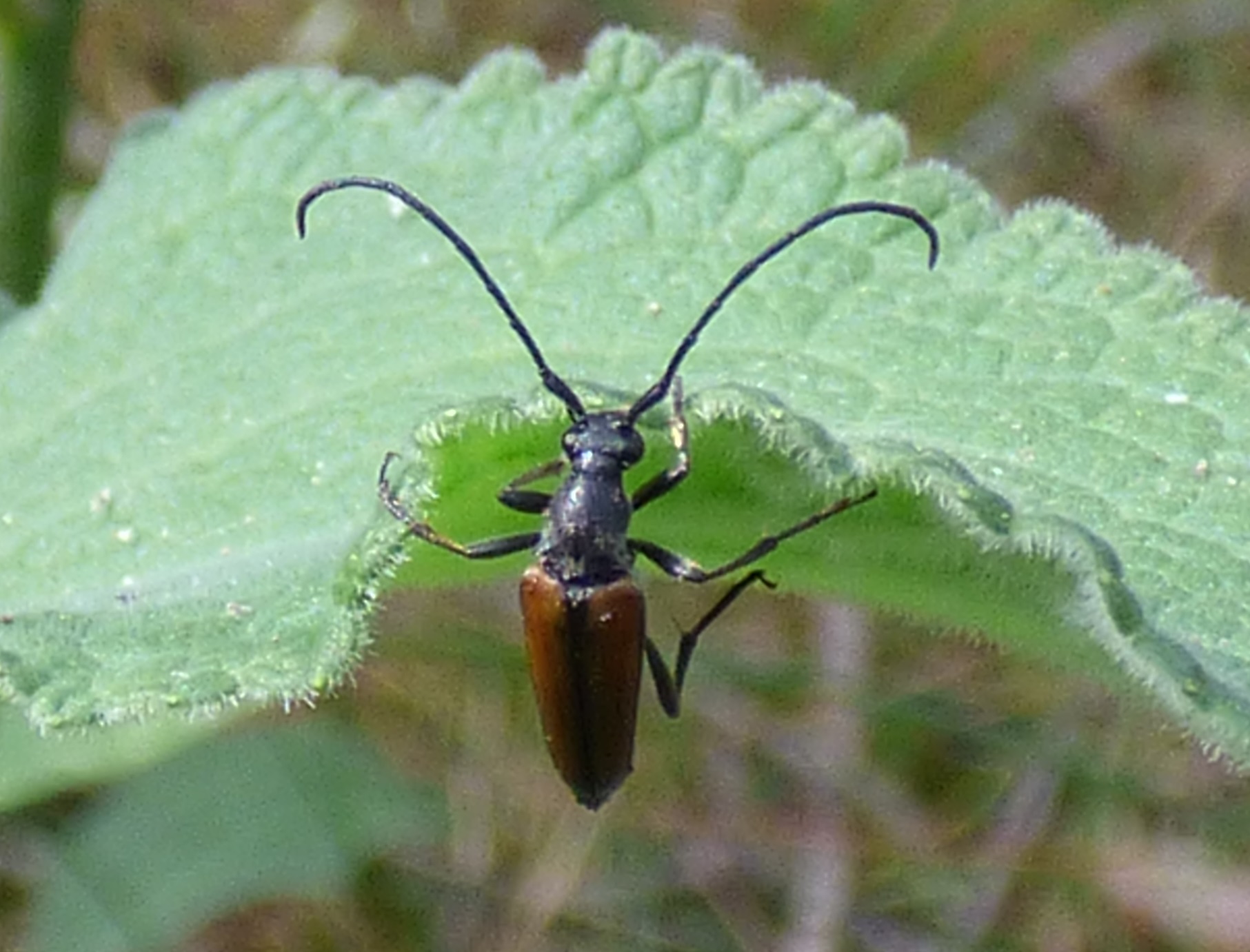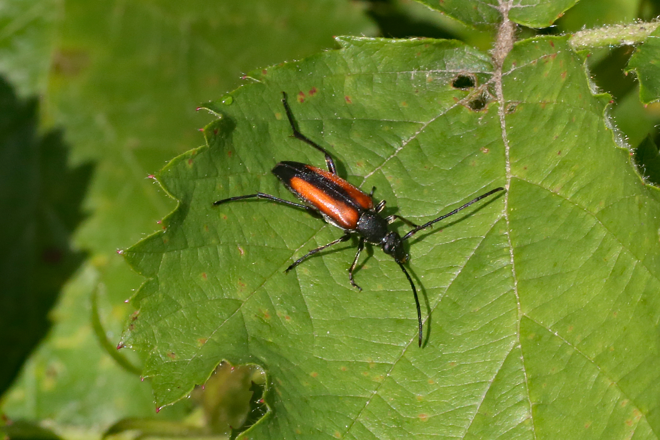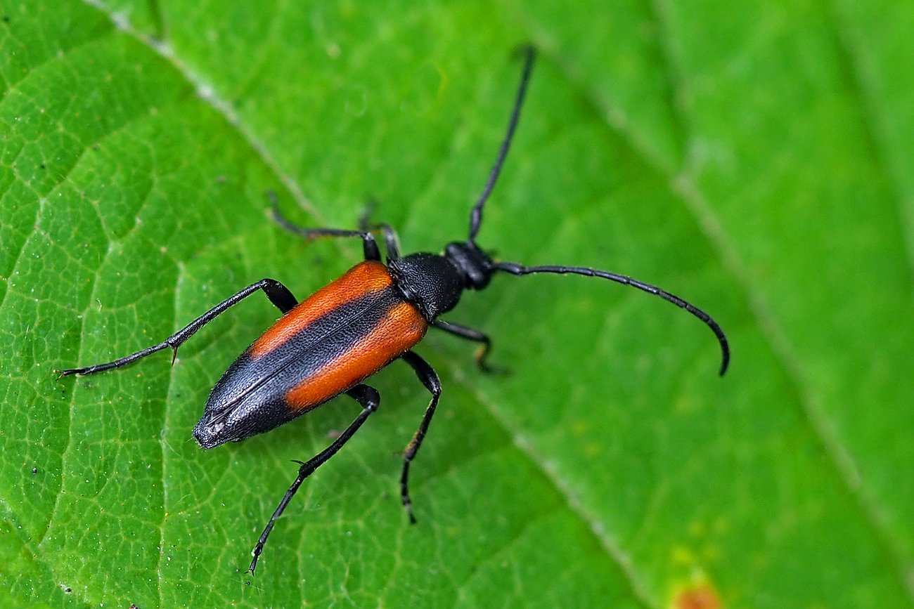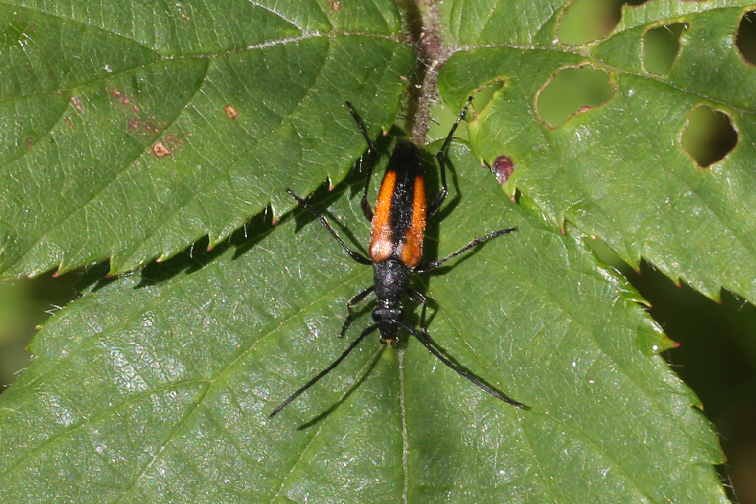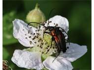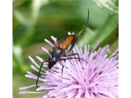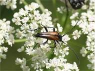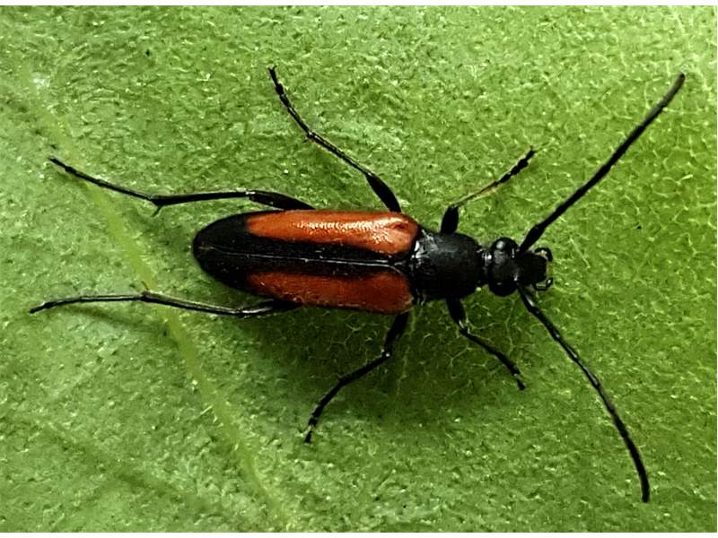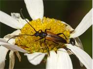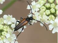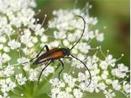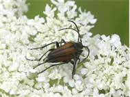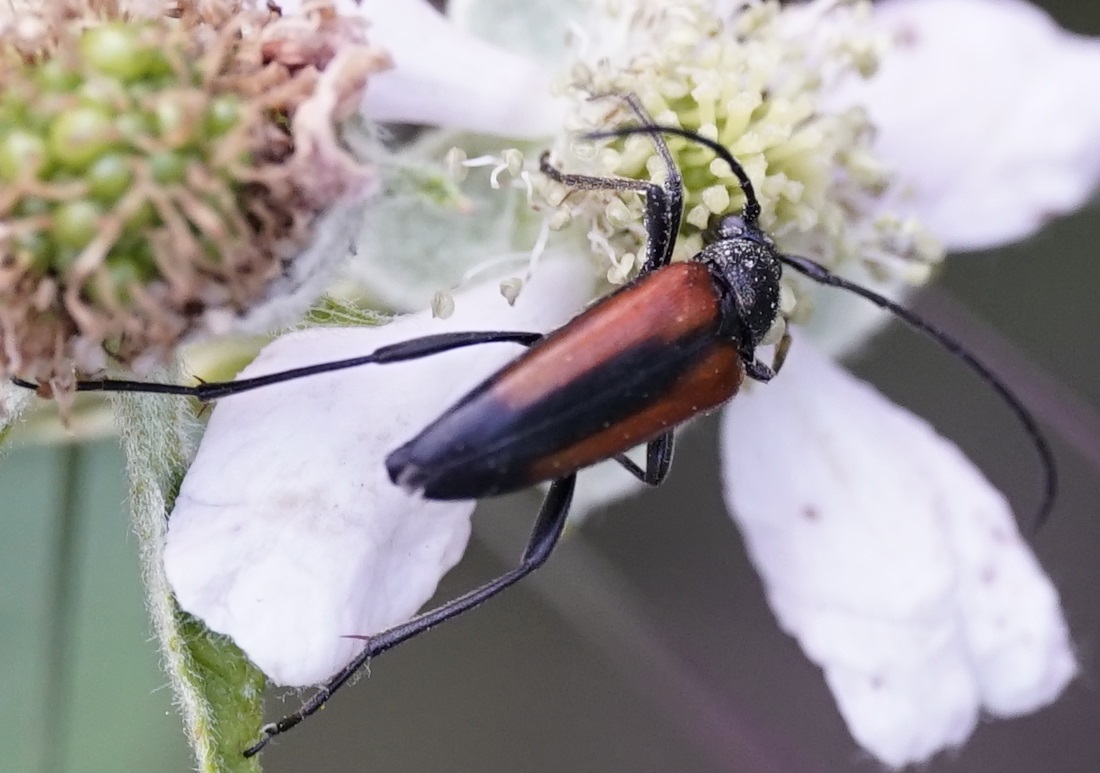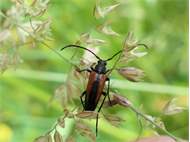 Männchen des Schwarznahtigen Halsbocks im Juni 2016 östlich Ottendorf-Okrilla