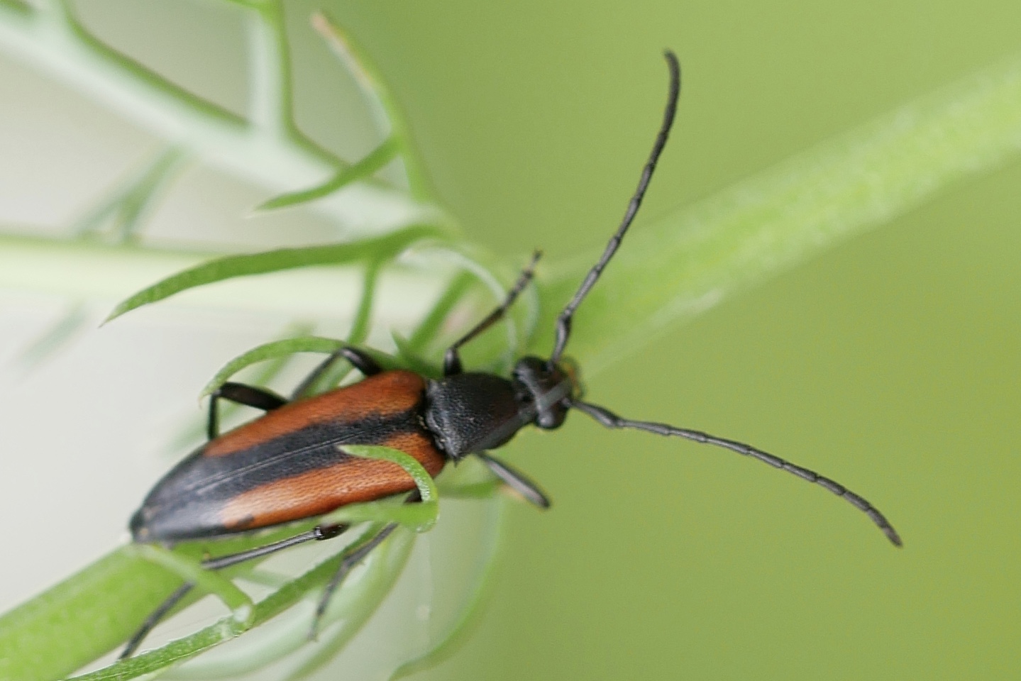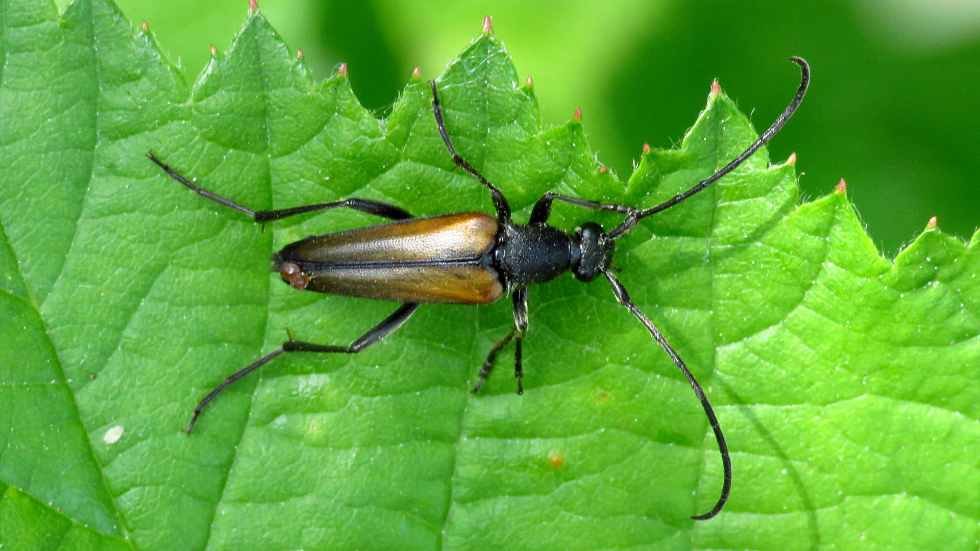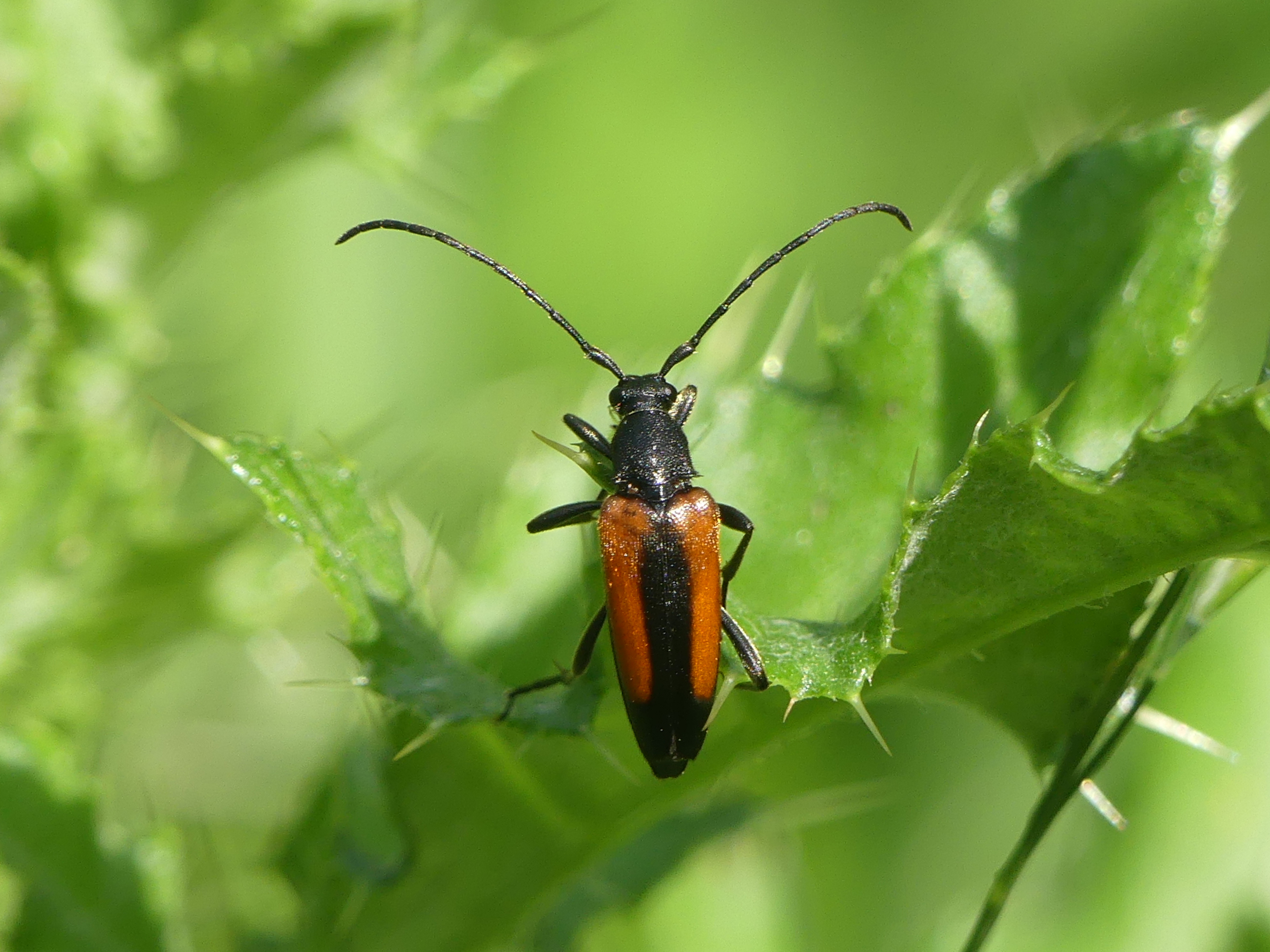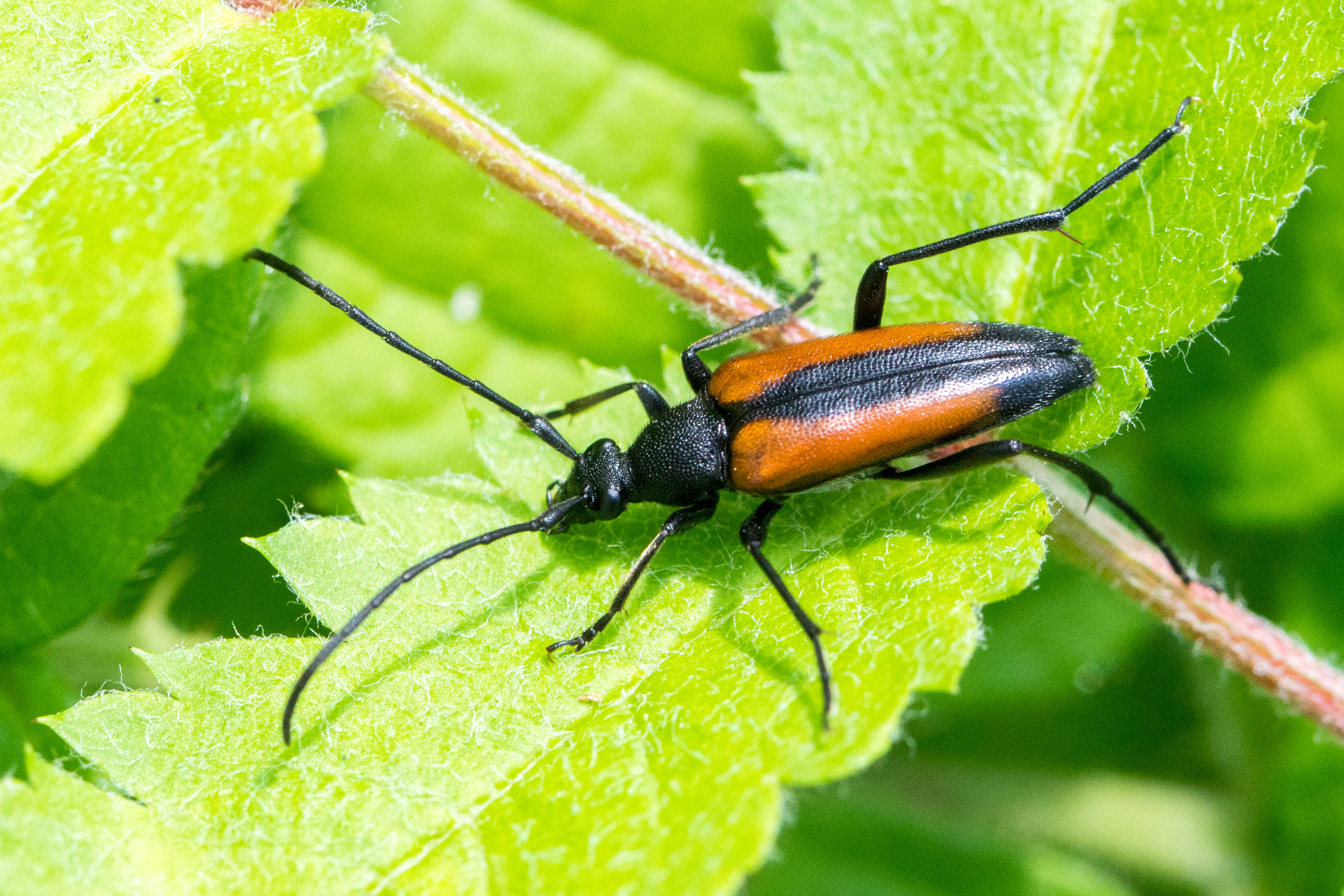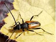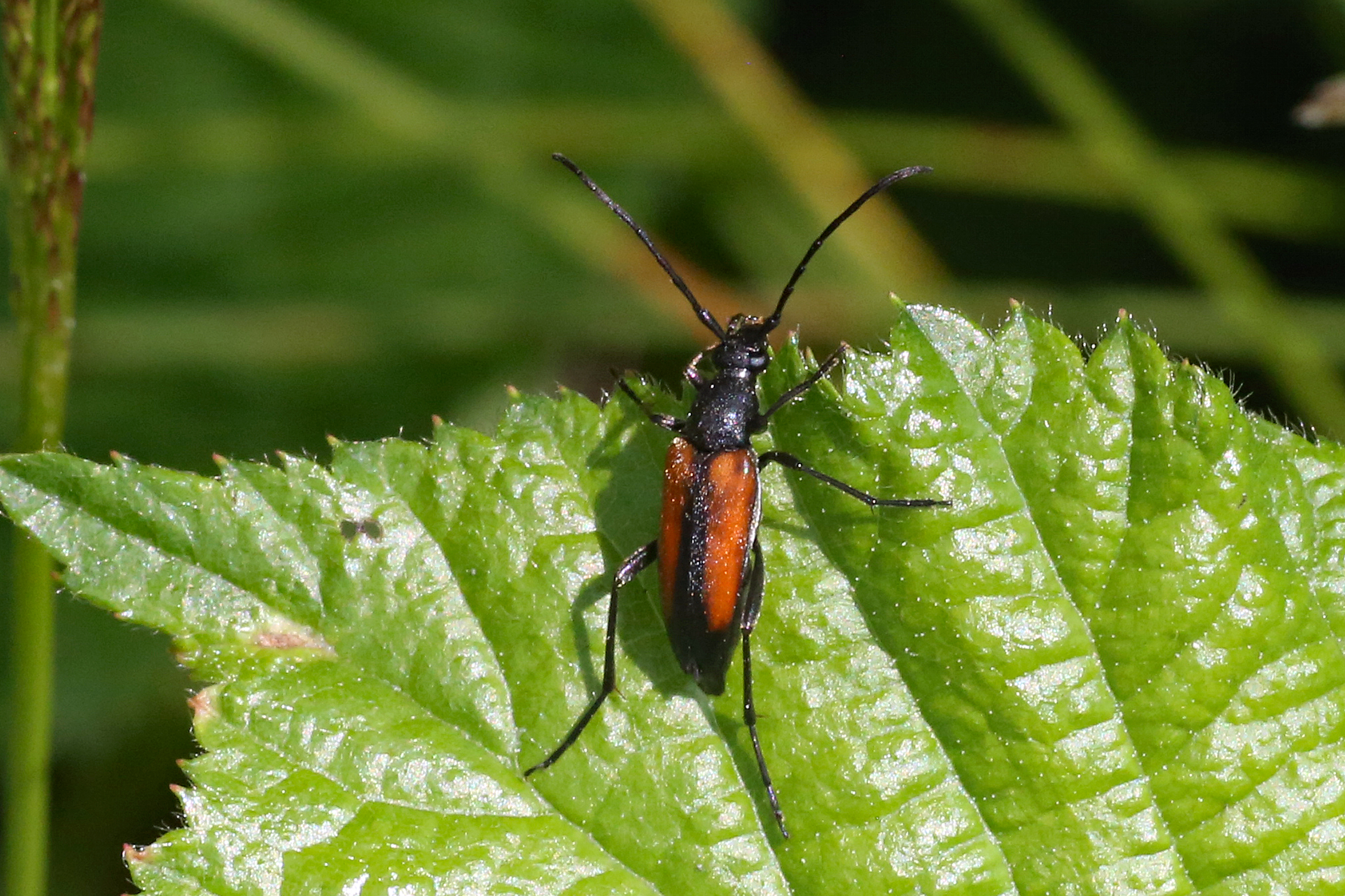 Männchen des Schwarznahtigen Halsbocks im Juni 2016 östlich Ottendorf-Okrilla
