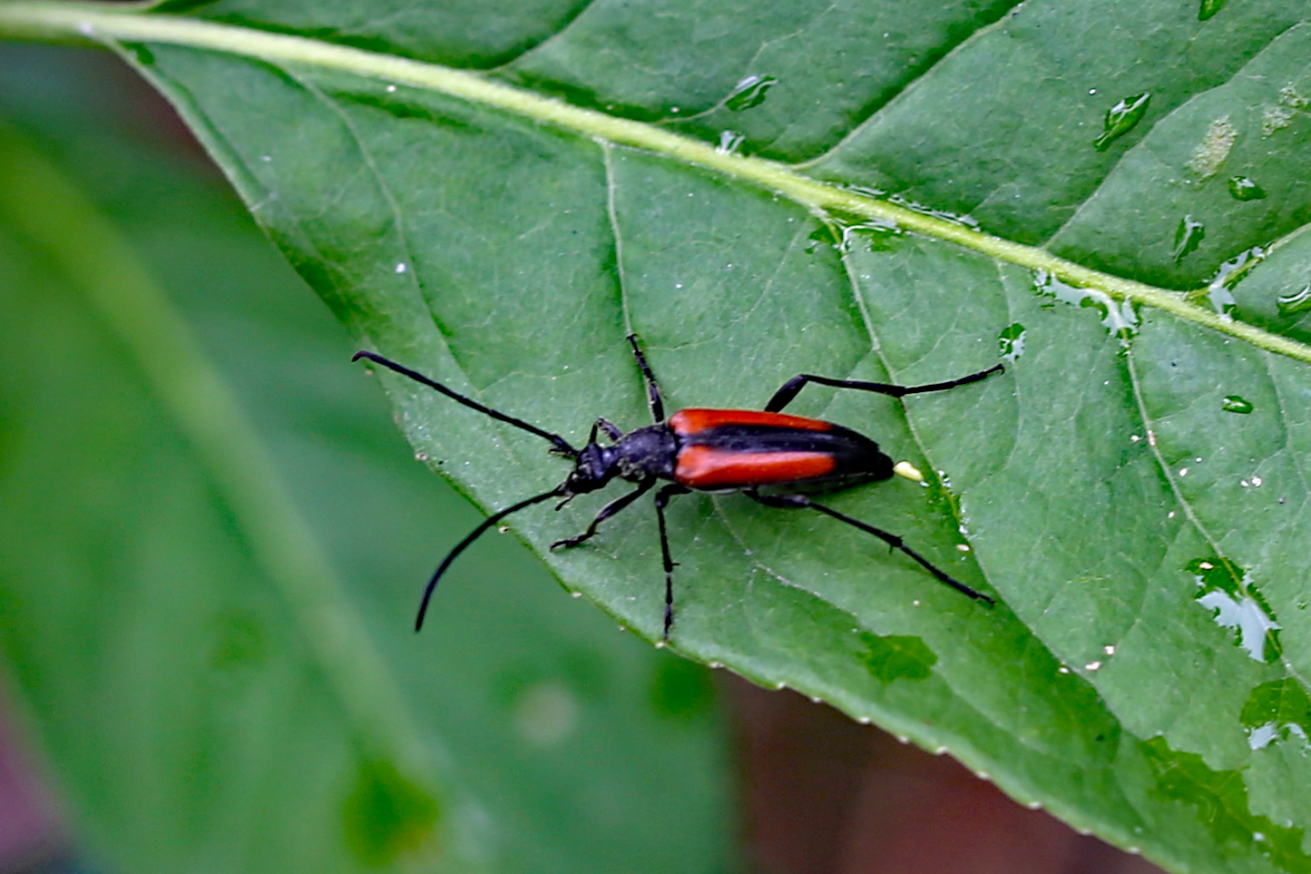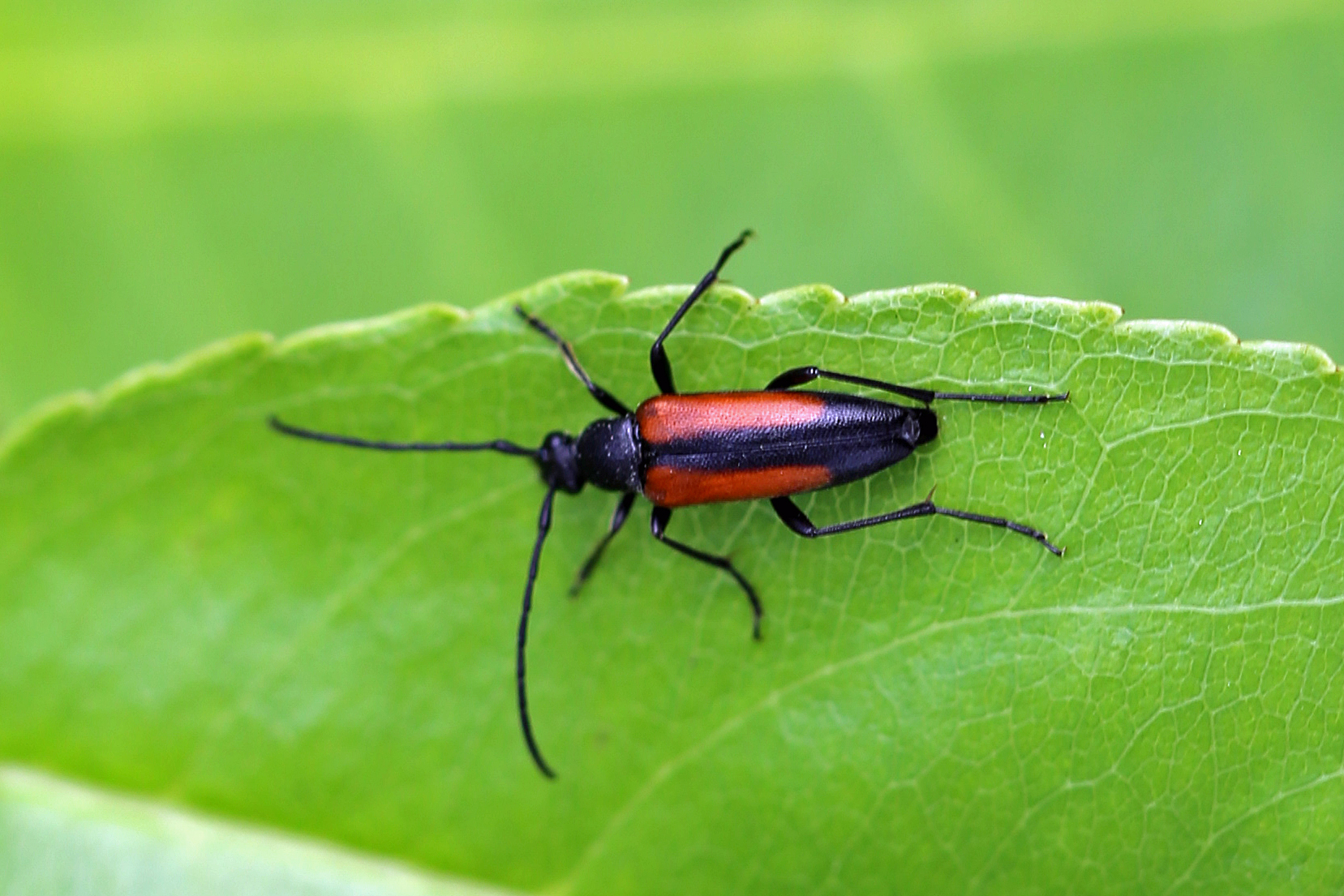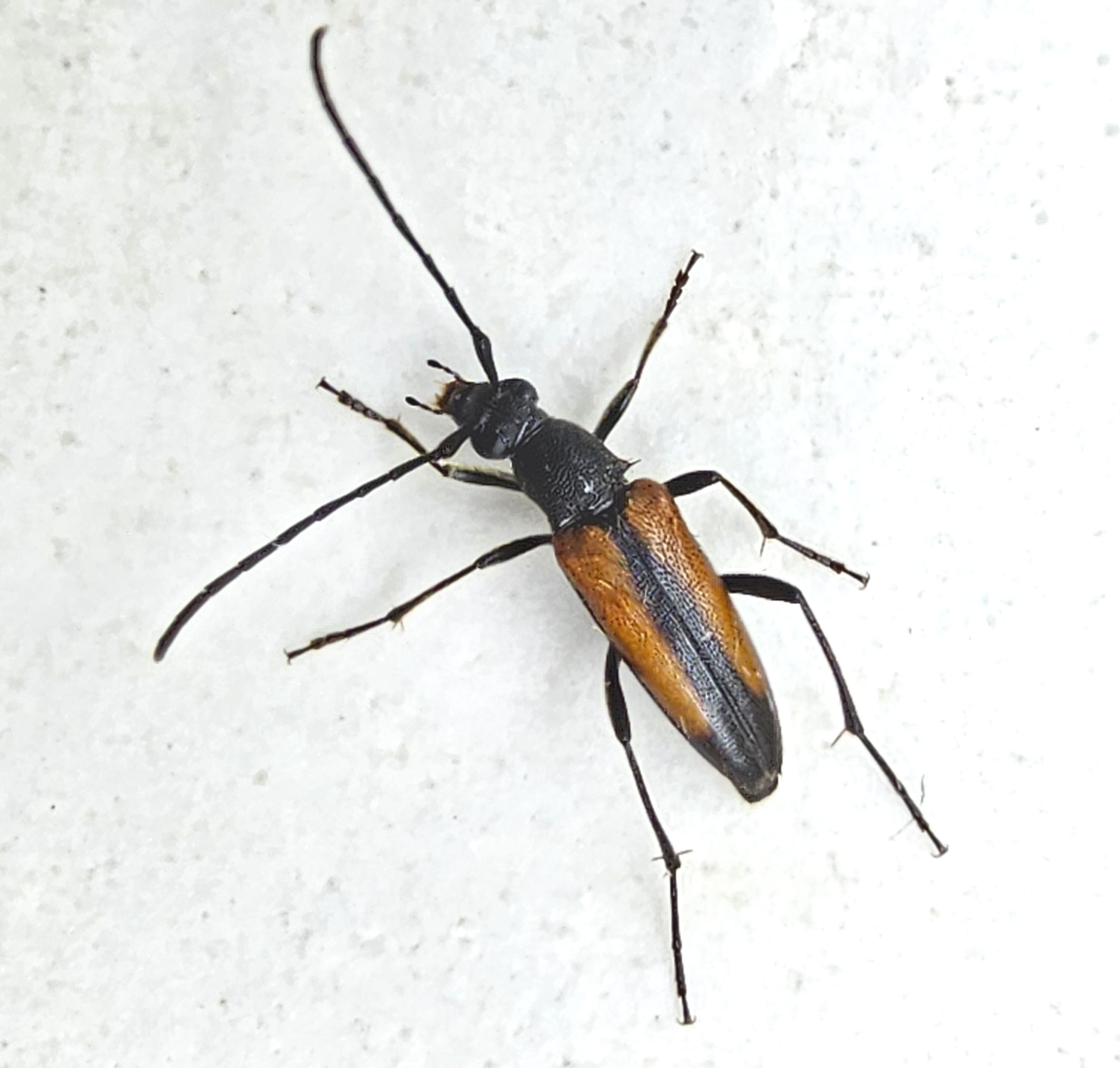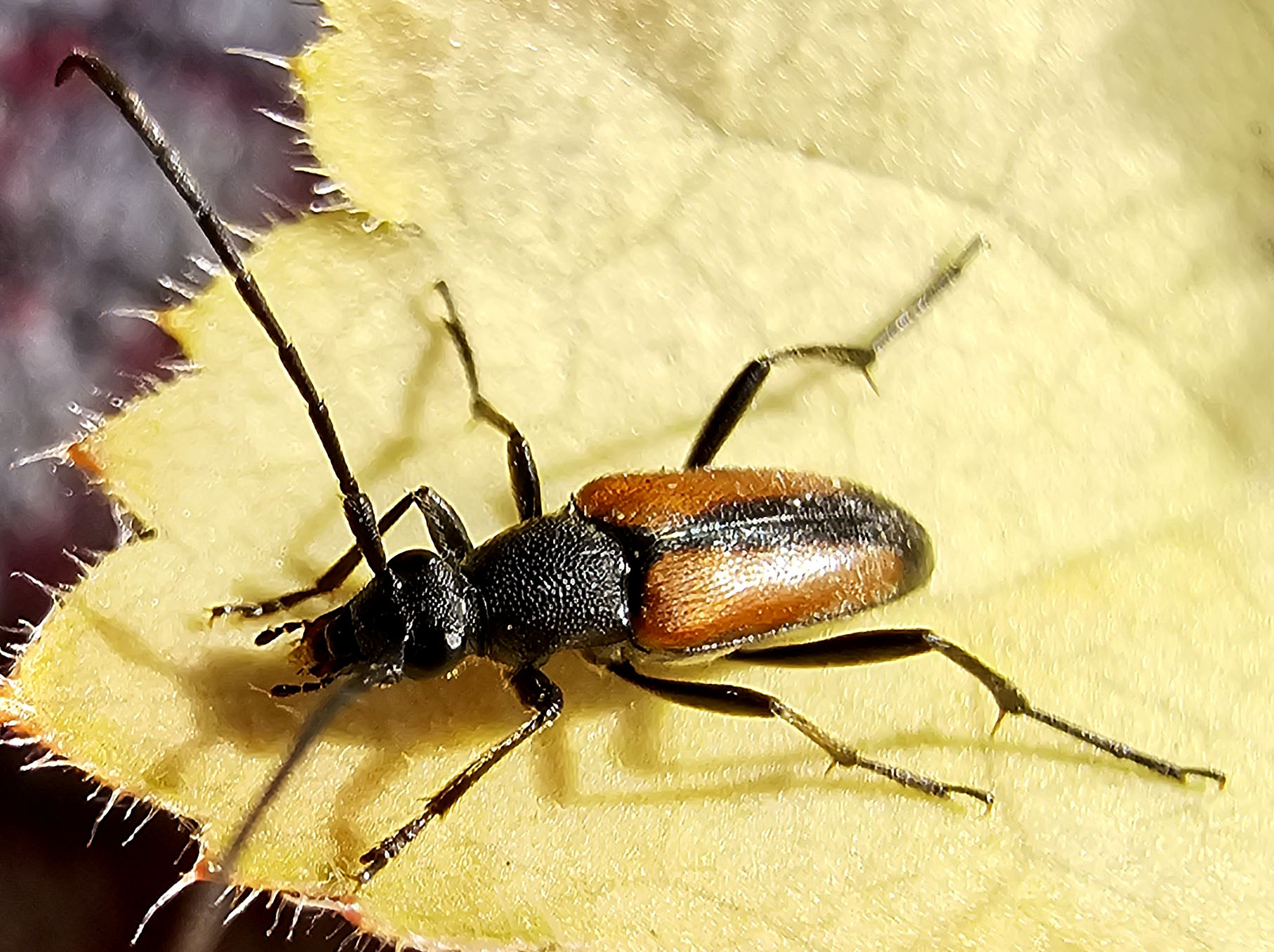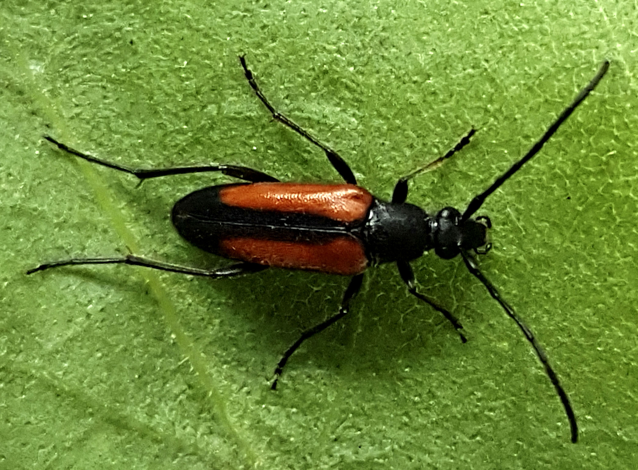 Männchen des Schwarznahtigen Halsbocks im Juni 2016 östlich Ottendorf-Okrilla