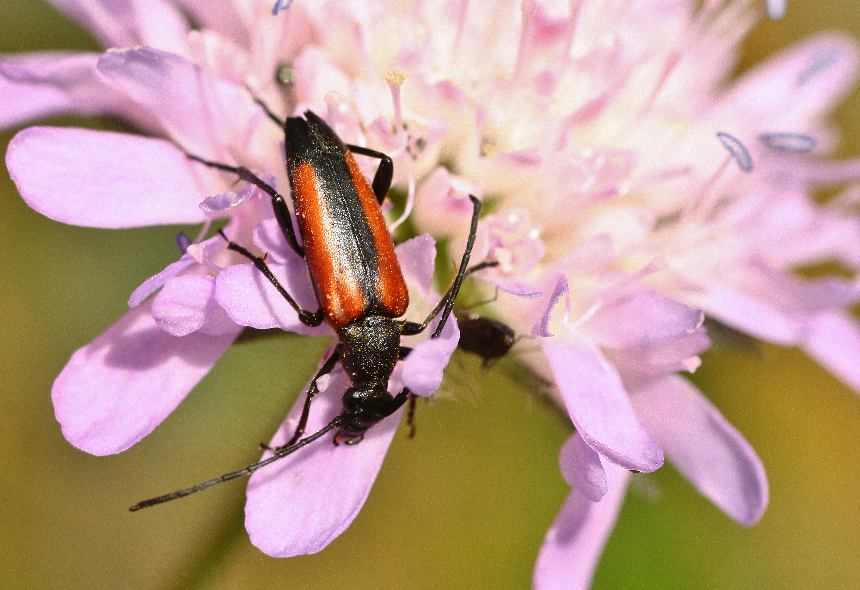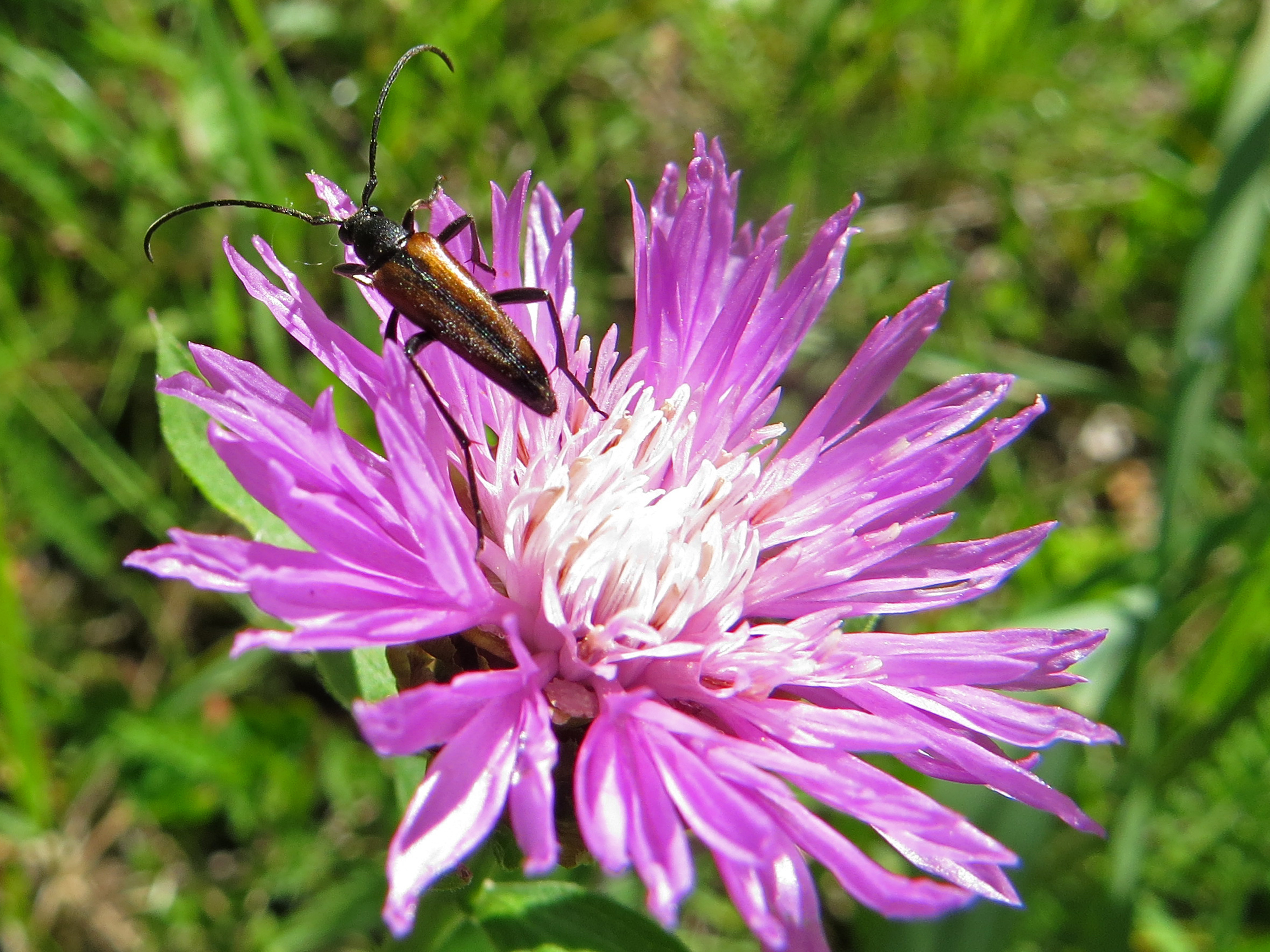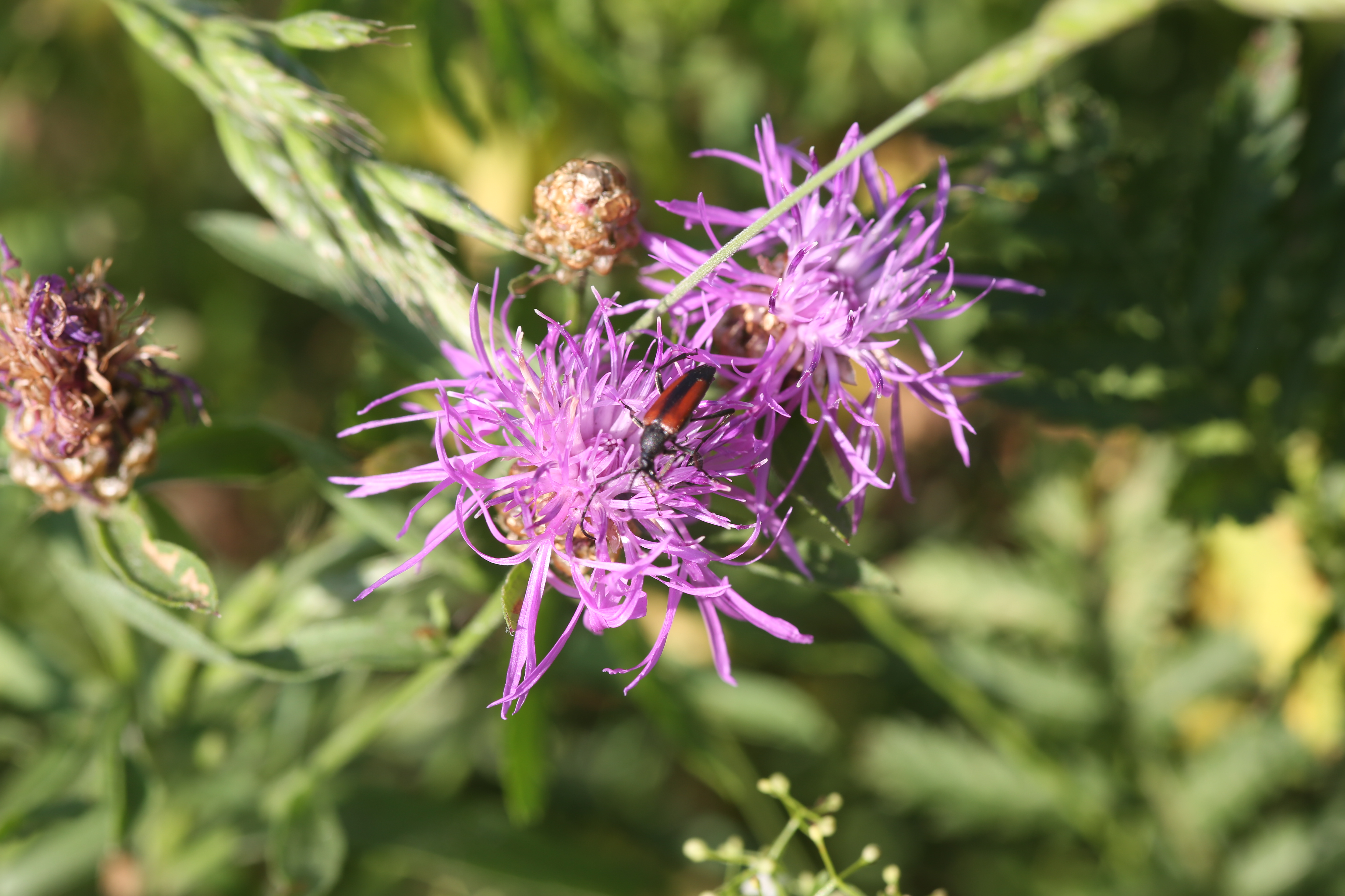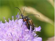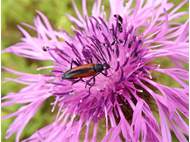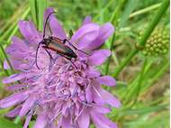 Kleiner Schmalbock auf einer Wiesen-Flockenblume, Hochhalde Trages bei Espenhain, Juni 2013