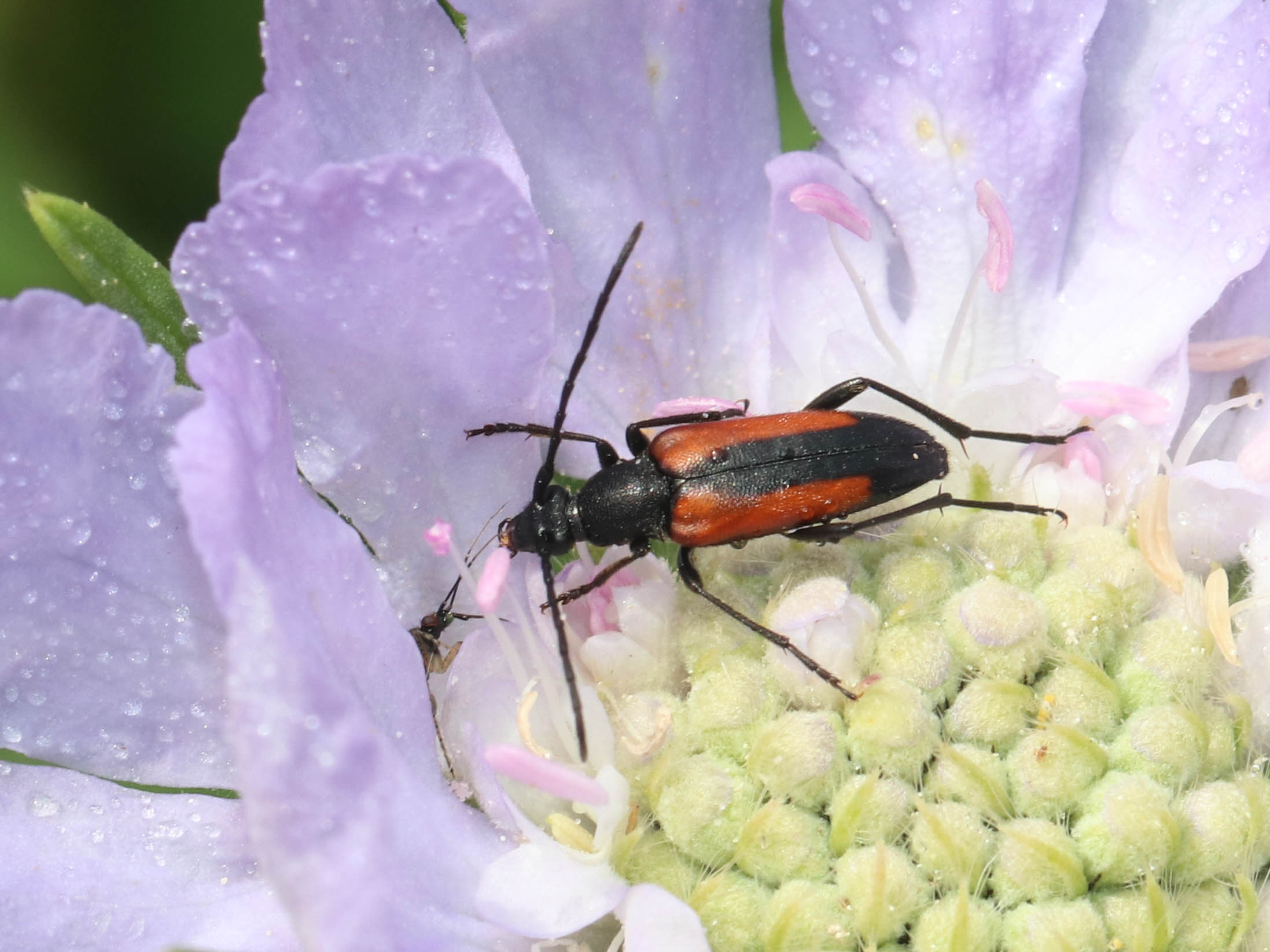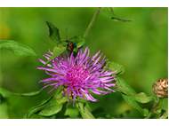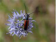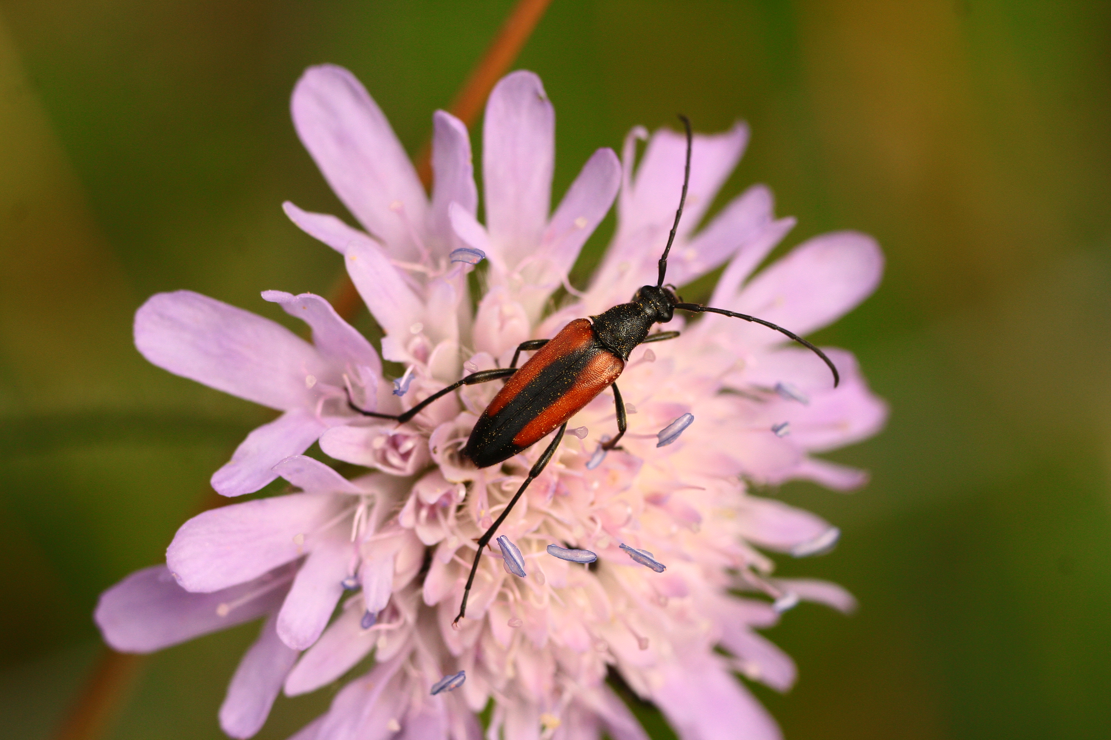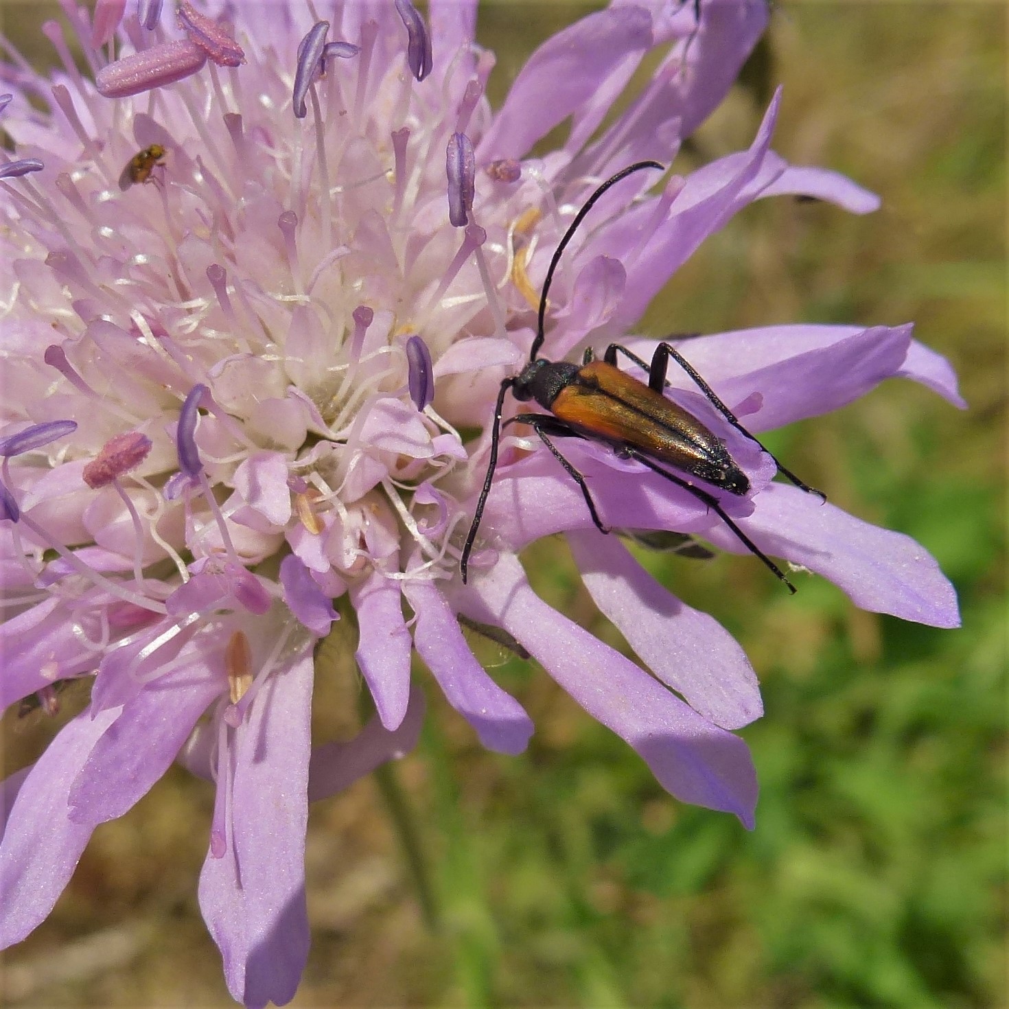 Kleiner Schmalbock auf einer Wiesen-Flockenblume, Hochhalde Trages bei Espenhain, Juni 2013