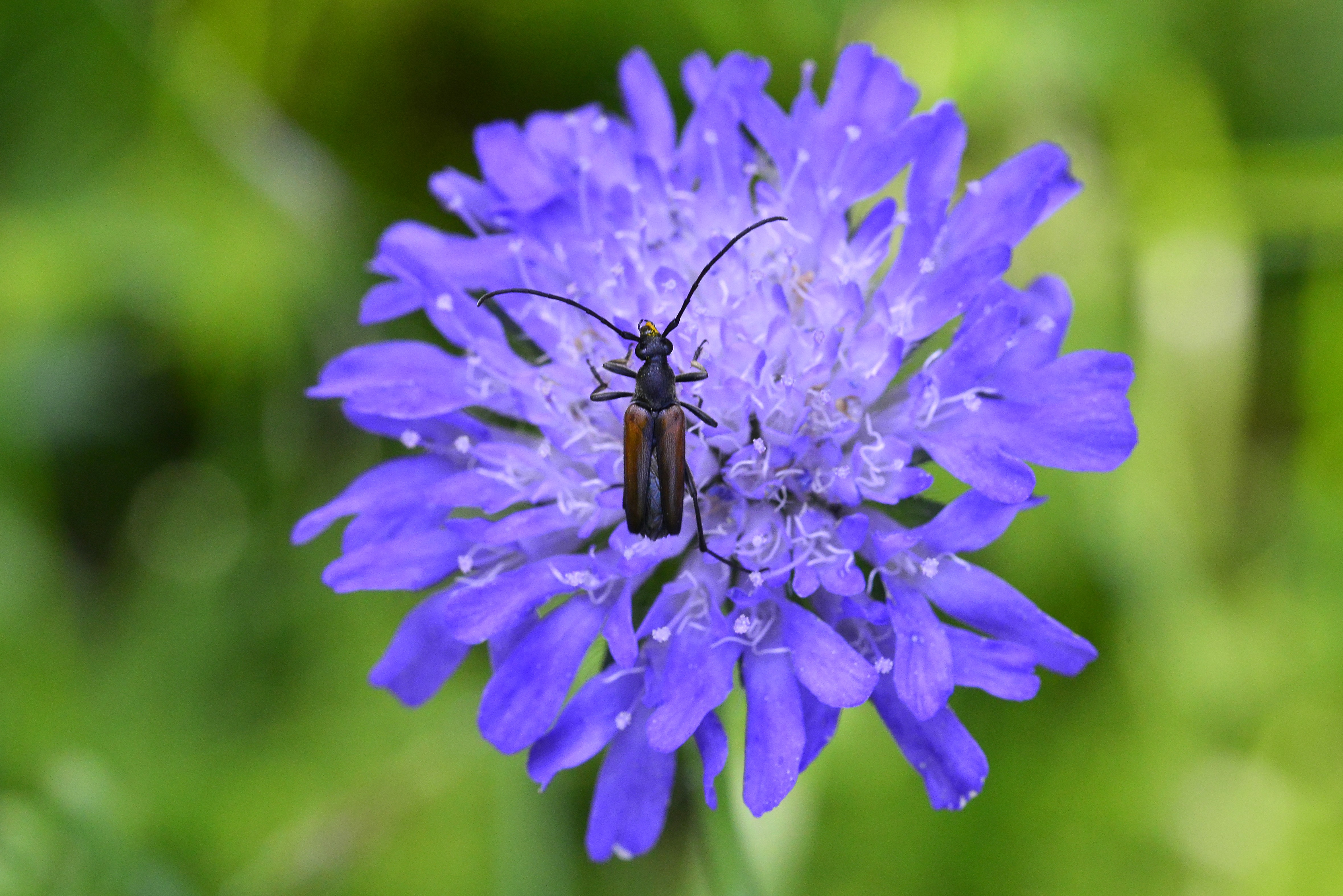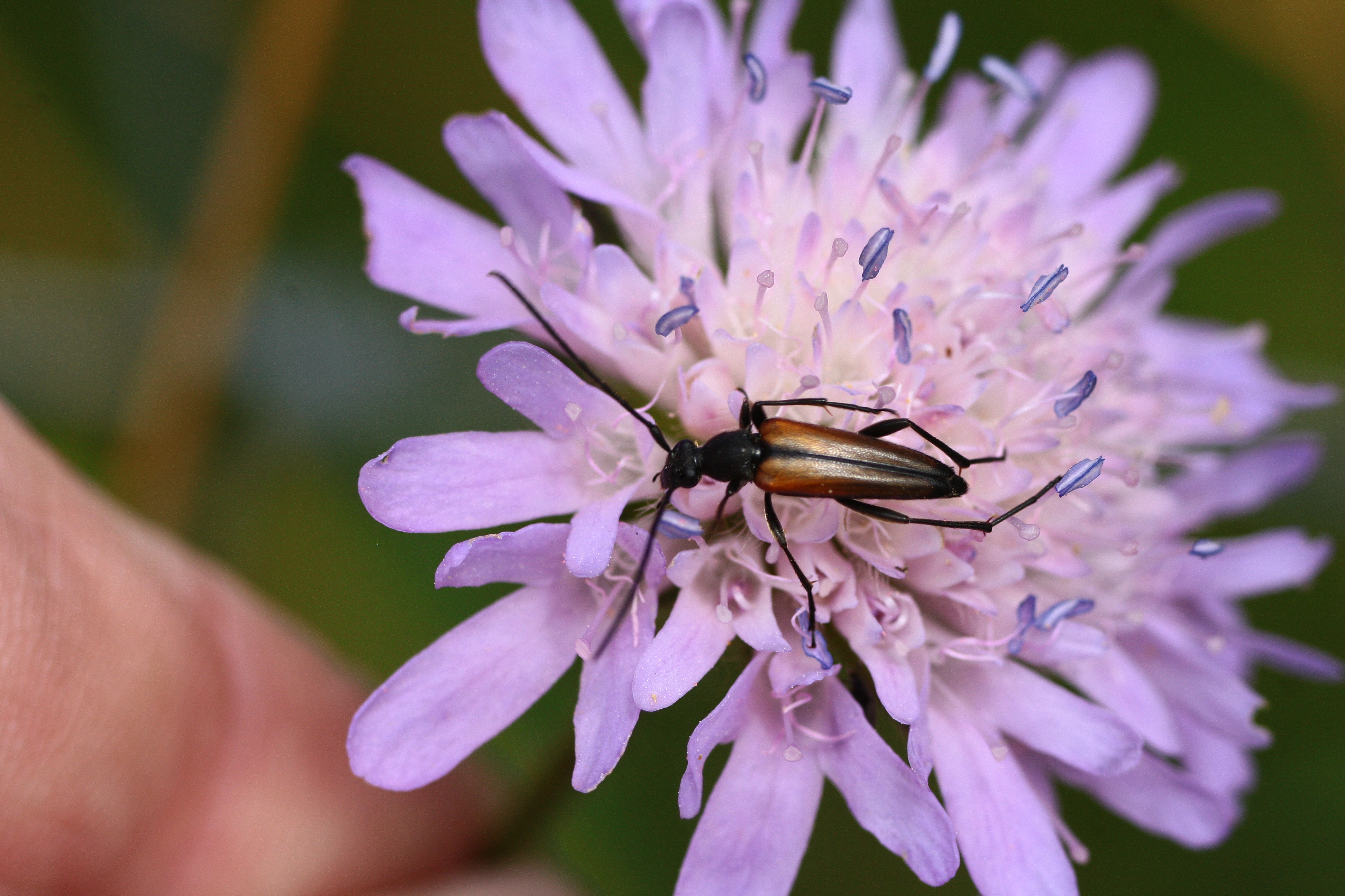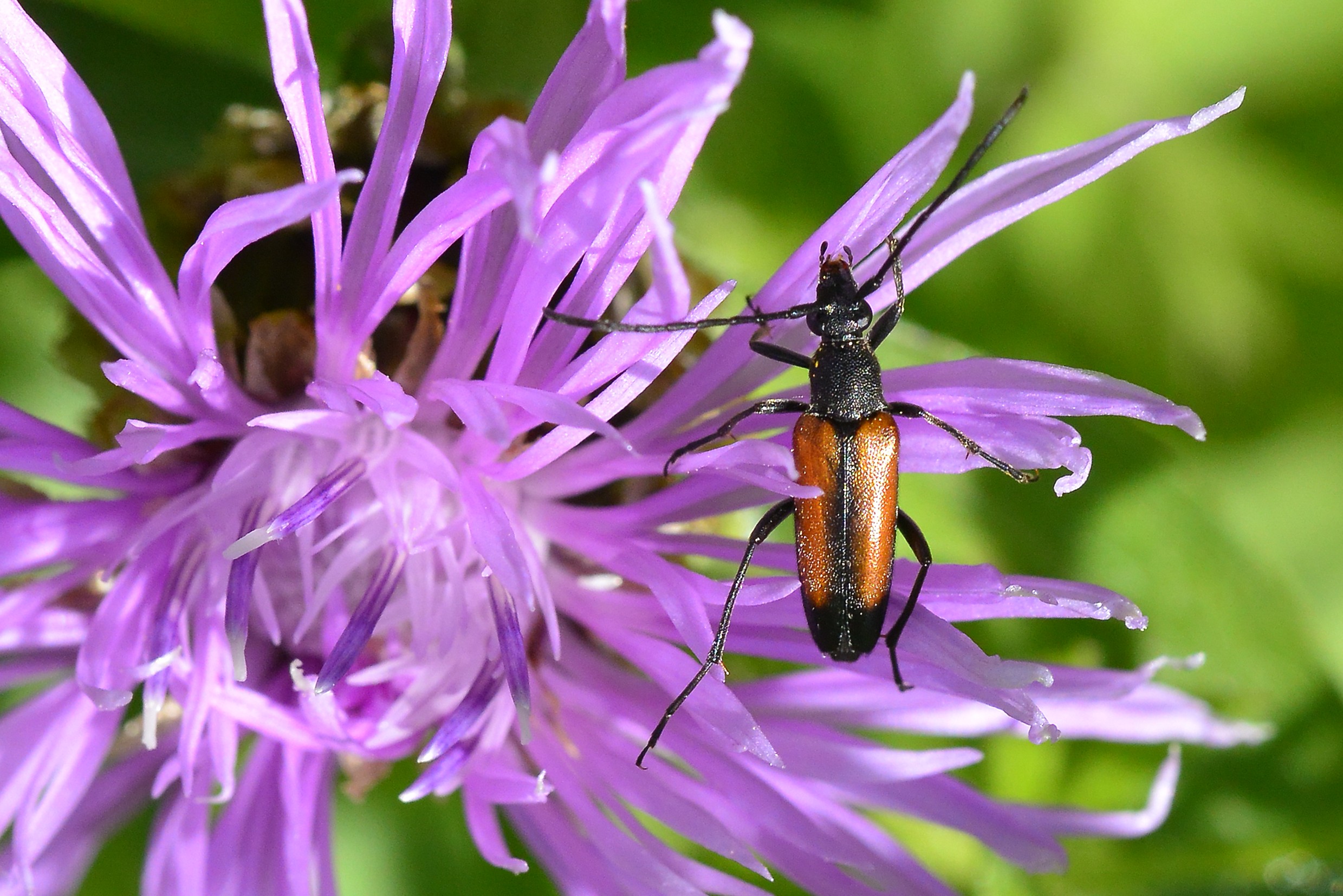 Ein Kleiner Schmalbock auf einer Perücken-Flockenblume am 15.07.2014 in Altenberg