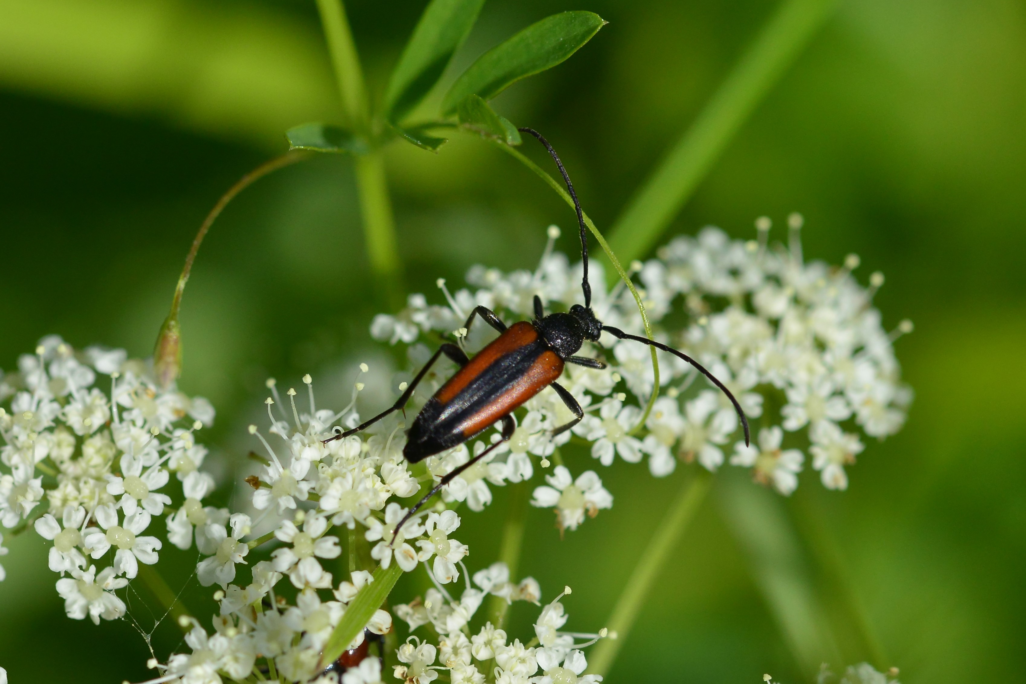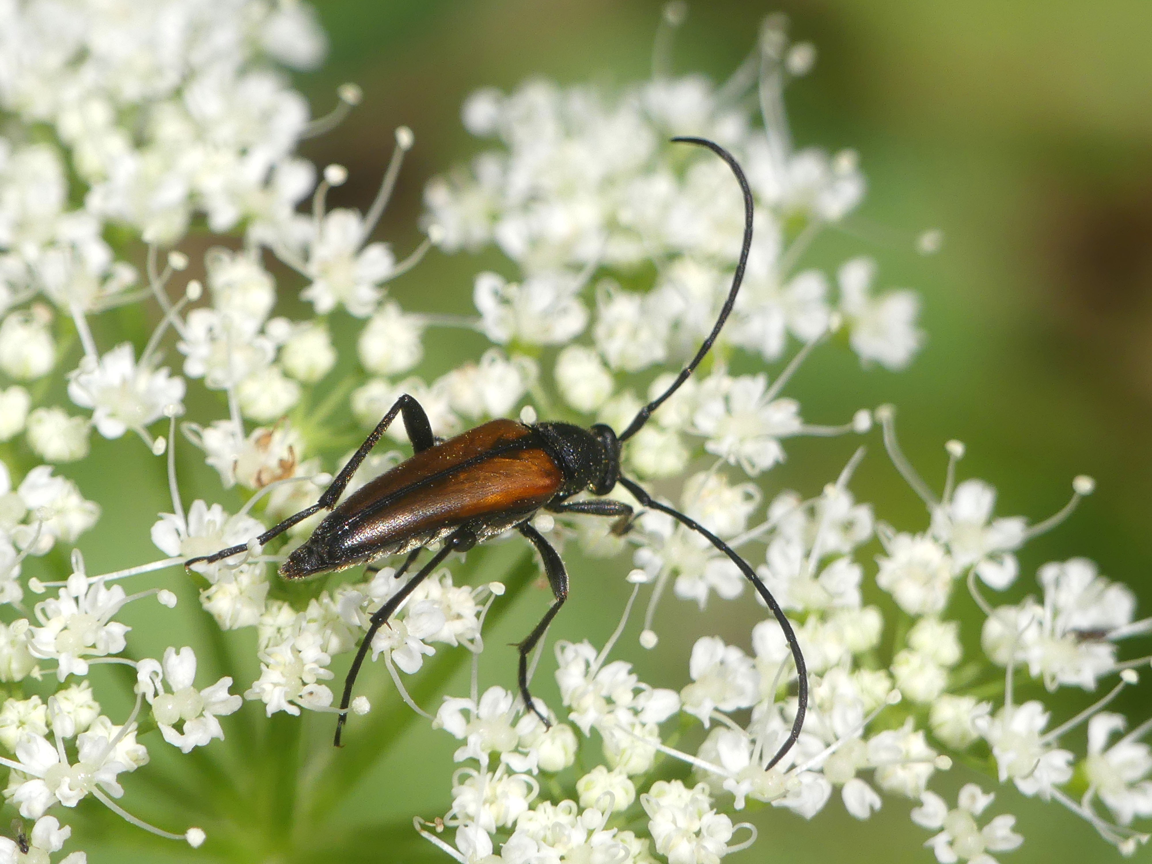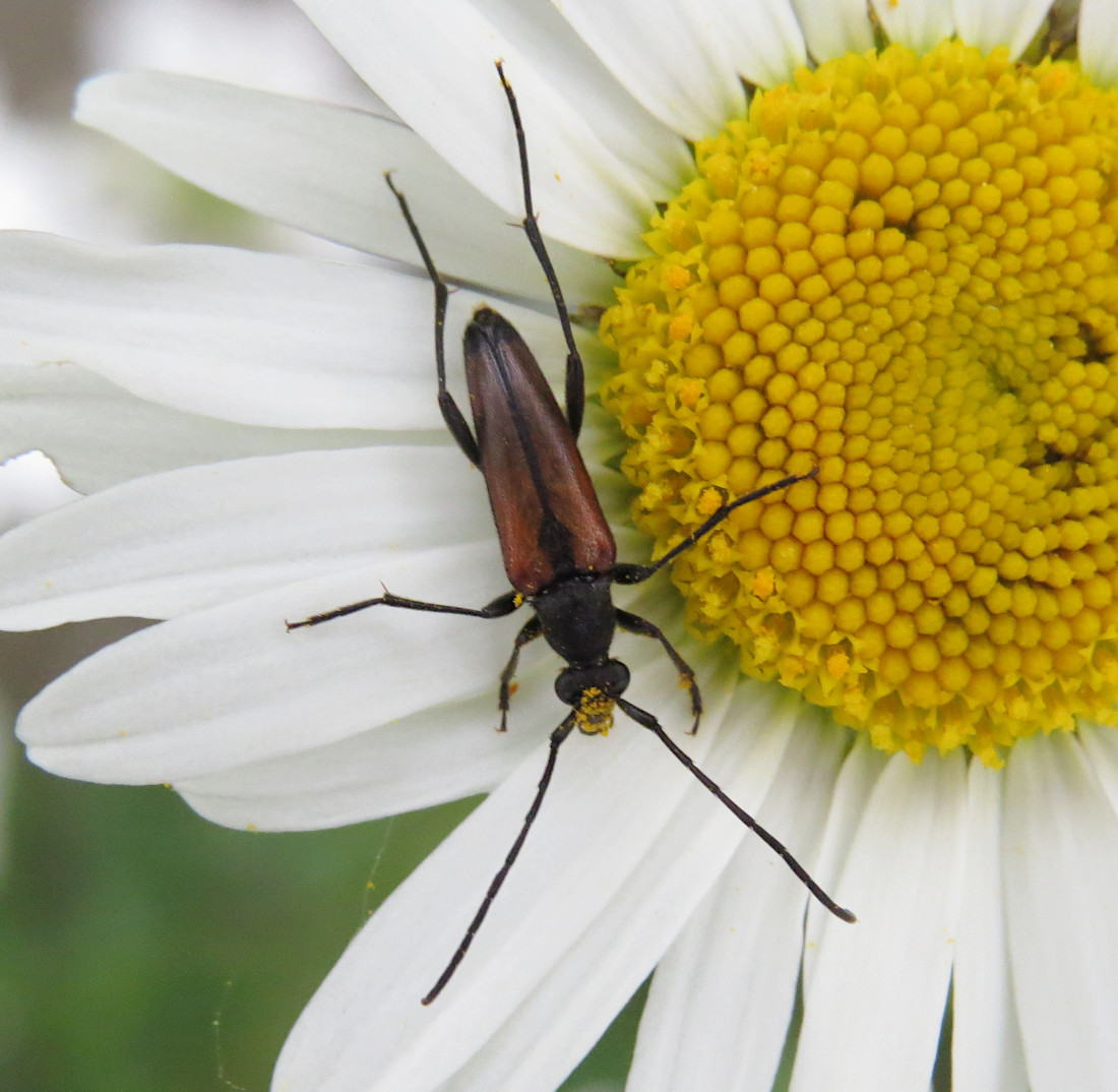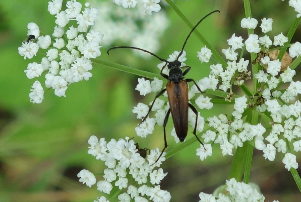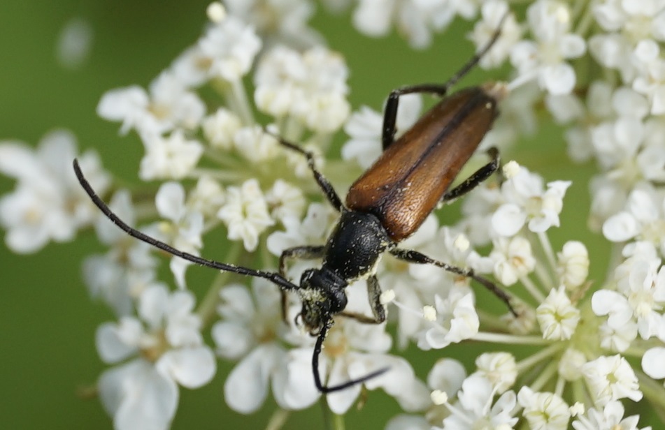 Stenurella melanura (Linnaeus 1758), Schwarznahtiger Halsbock, Weibchen. Fundort Kupsal bei 04509 Krostitz (Nordsachsen) im Juni 2020.