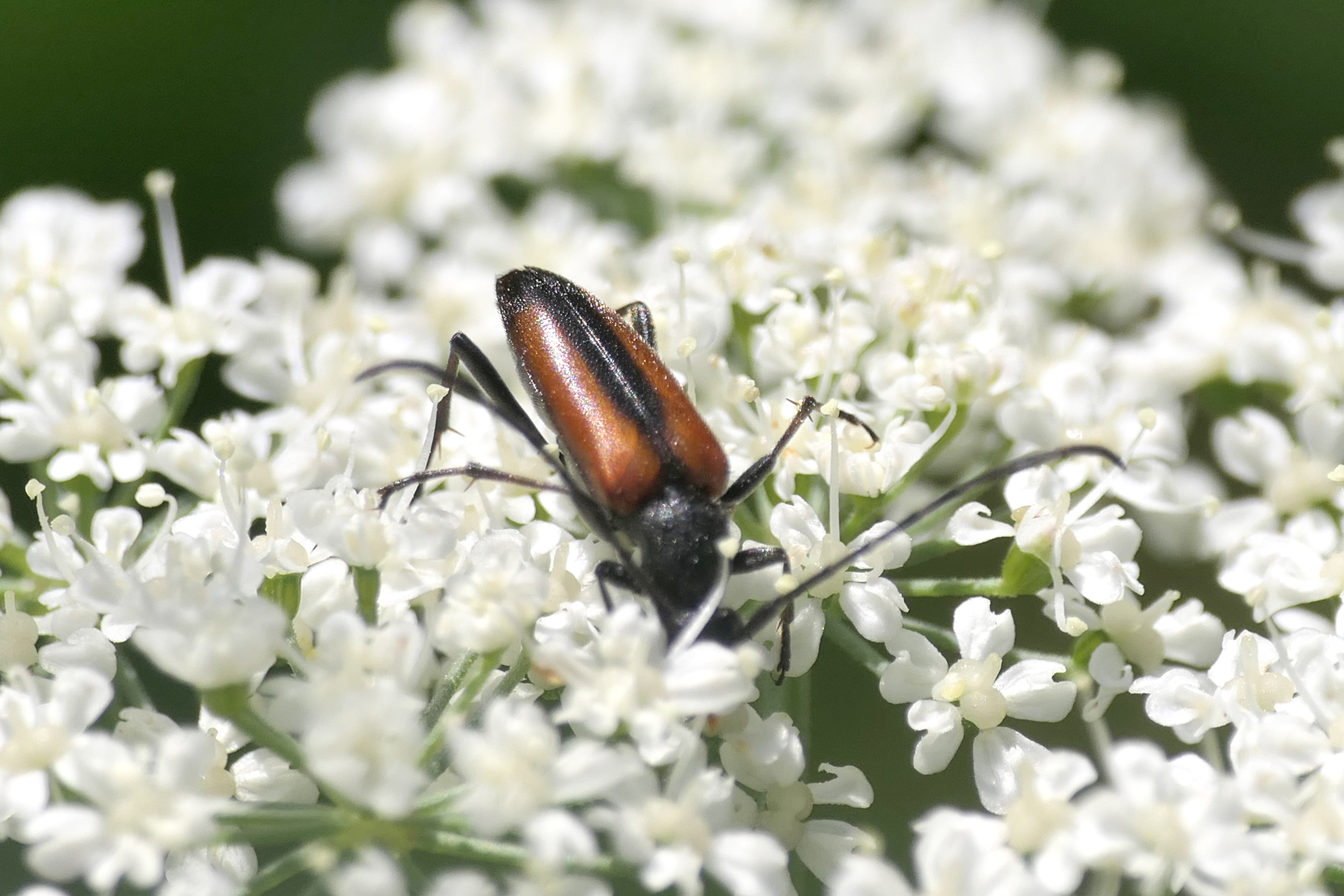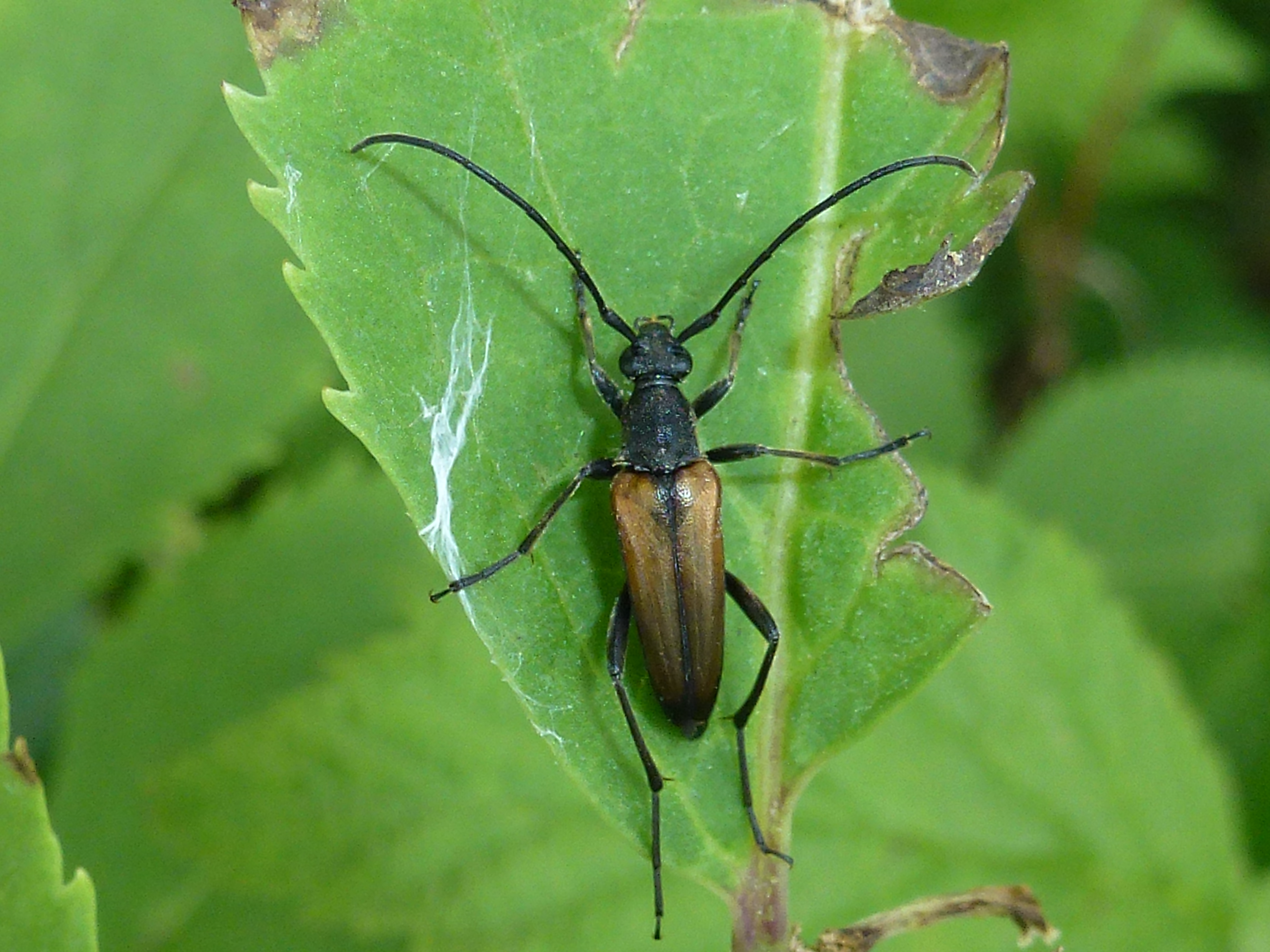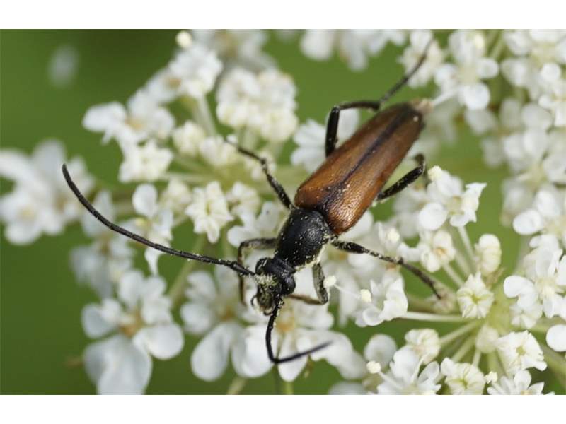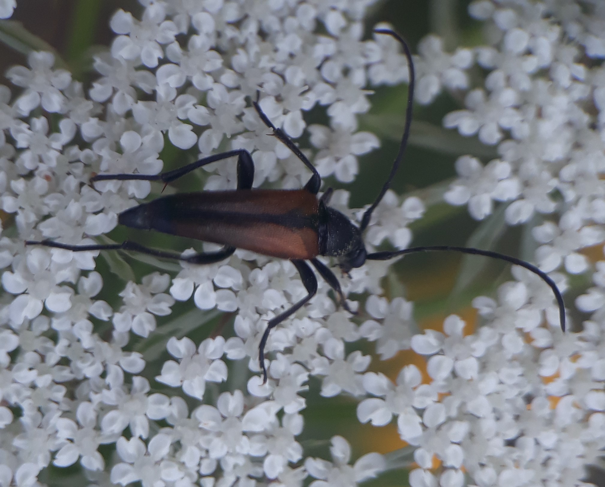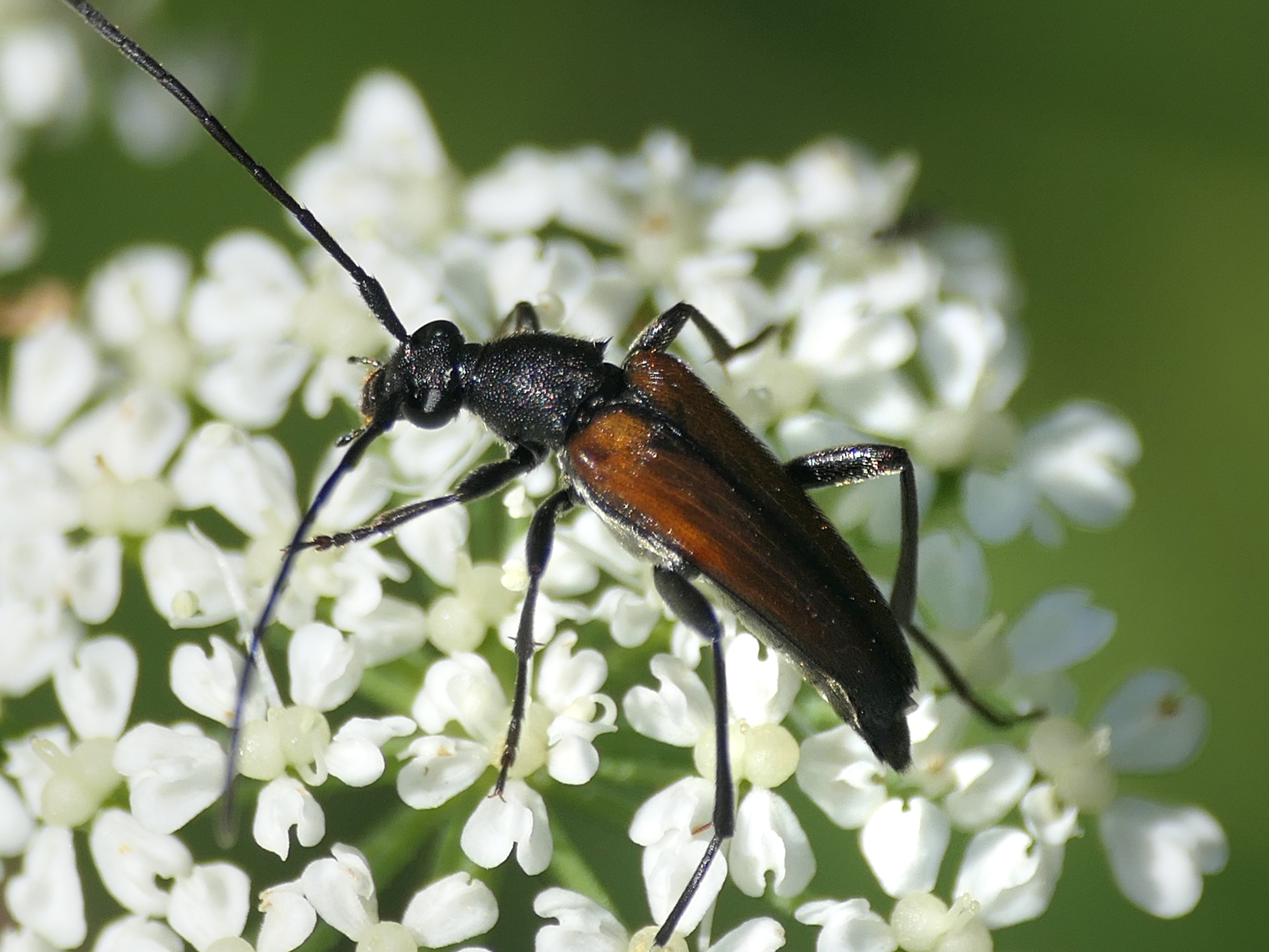 Stenurella melanura (Linnaeus 1758), Schwarznahtiger Halsbock, Weibchen. Fundort Kupsal bei 04509 Krostitz (Nordsachsen) im Juni 2020.