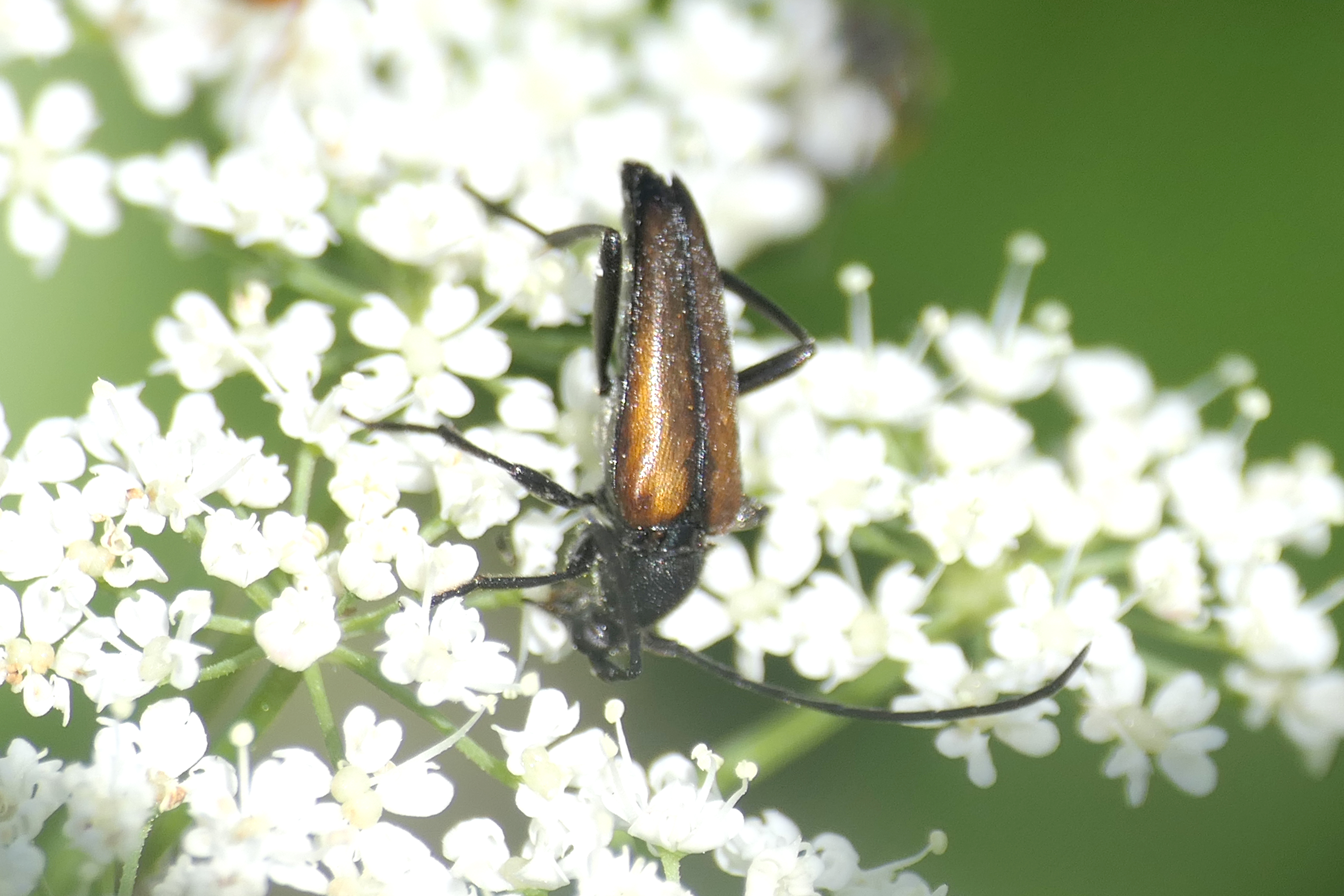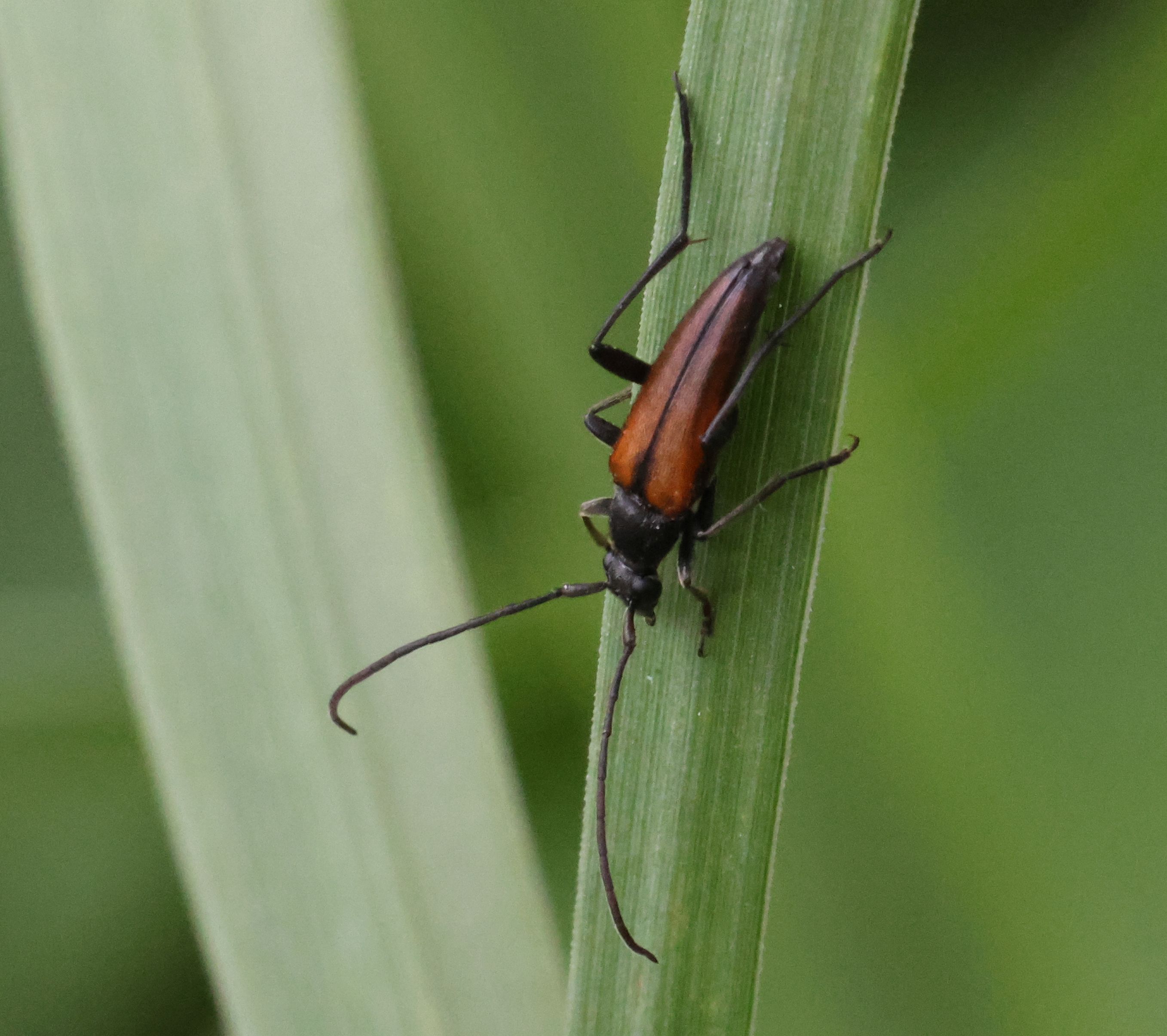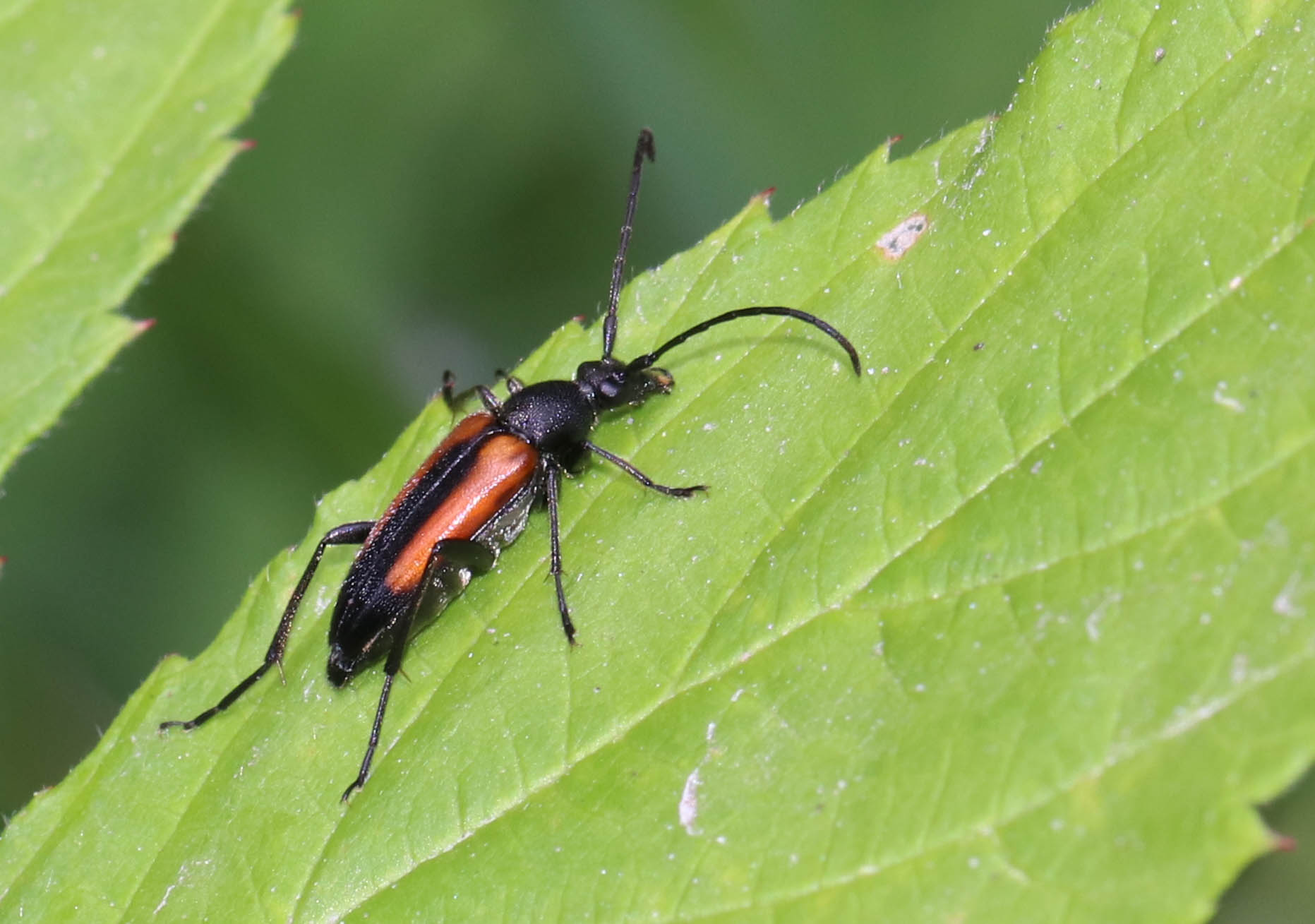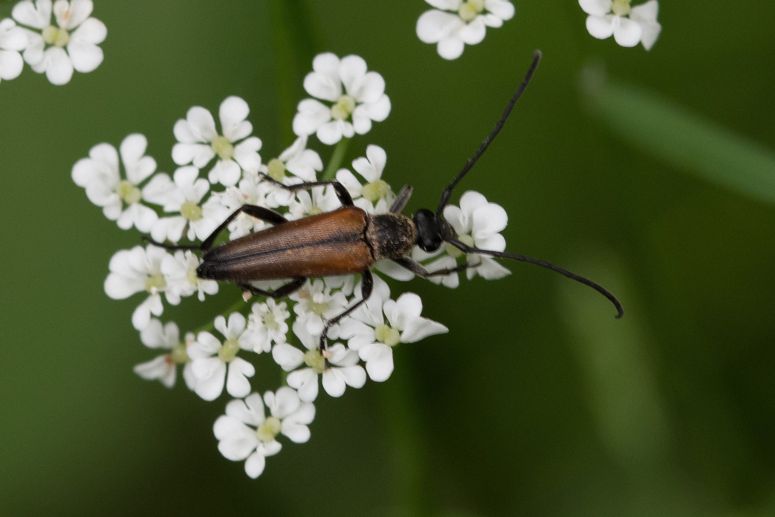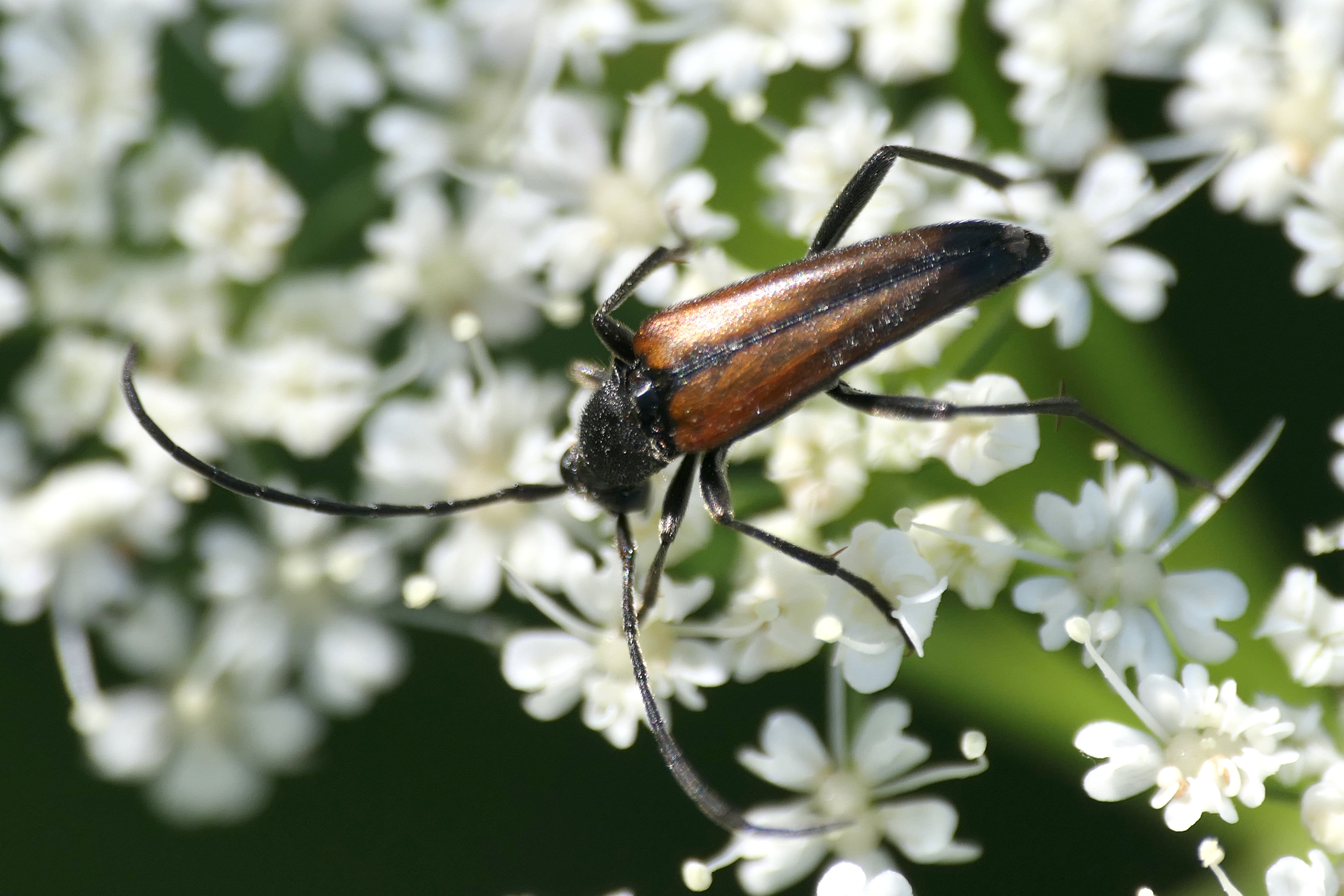 Stenurella melanura (Linnaeus 1758), Schwarznahtiger Halsbock, Weibchen. Fundort Kupsal bei 04509 Krostitz (Nordsachsen) im Juni 2020.
