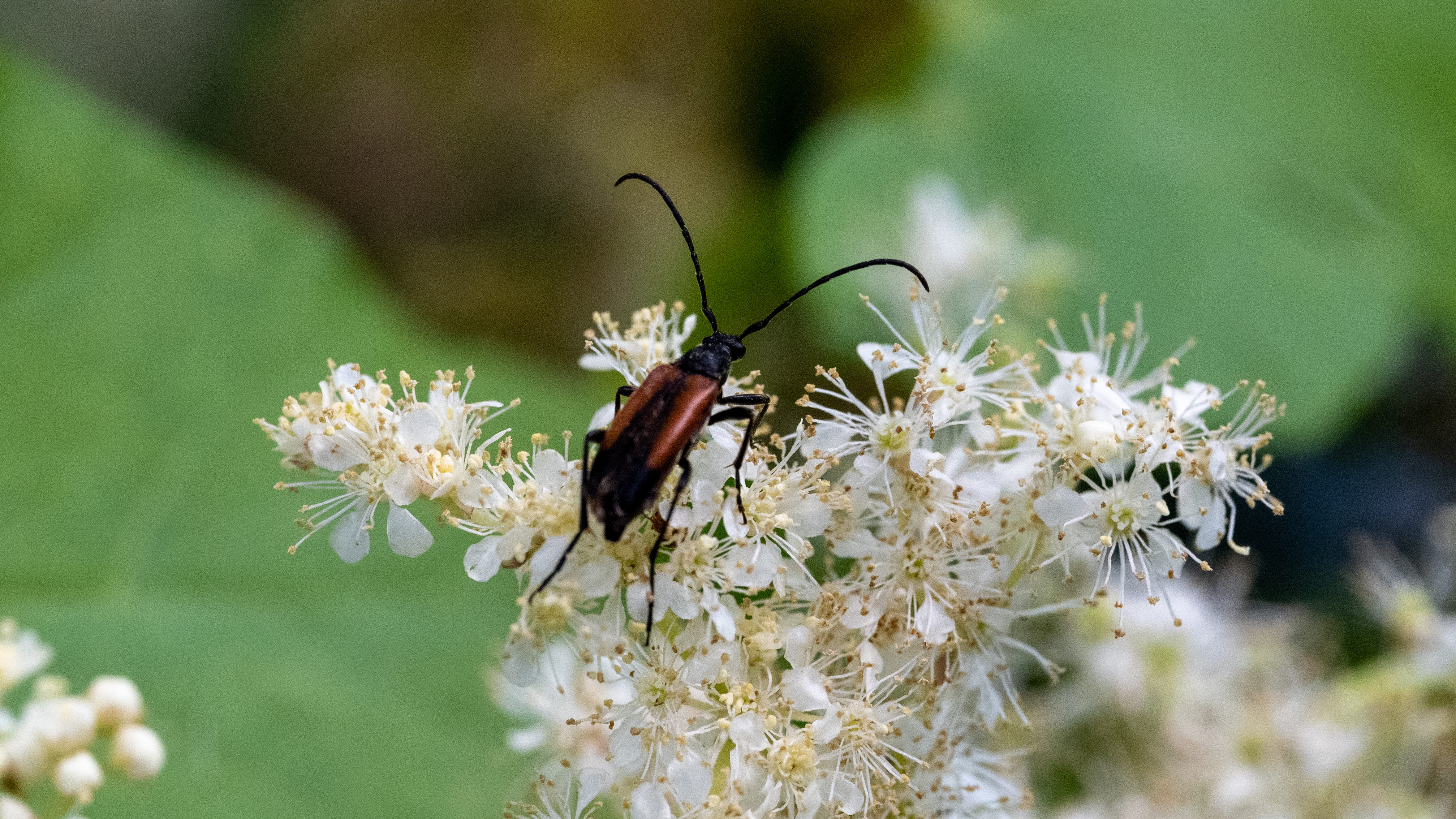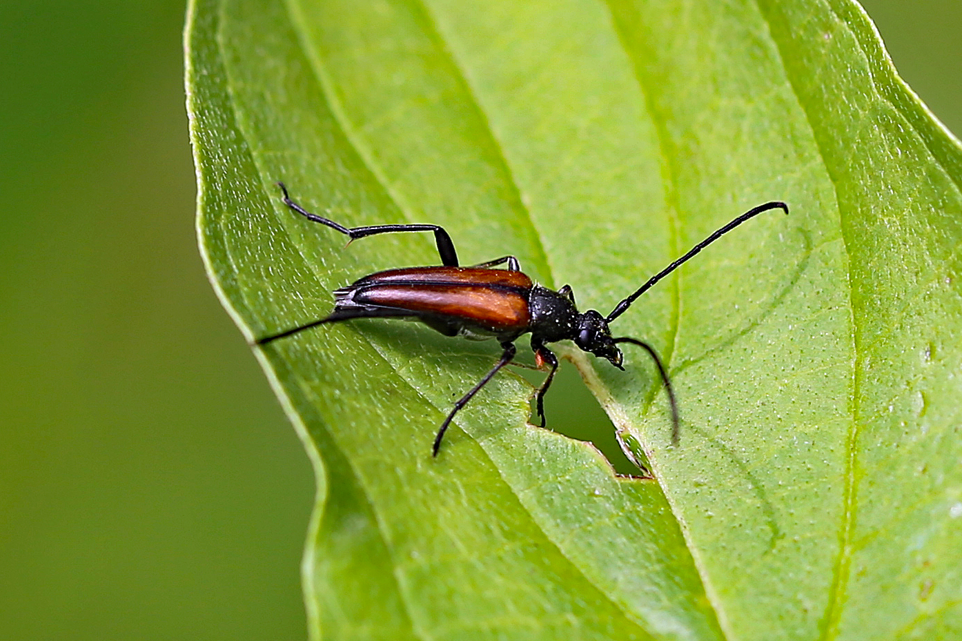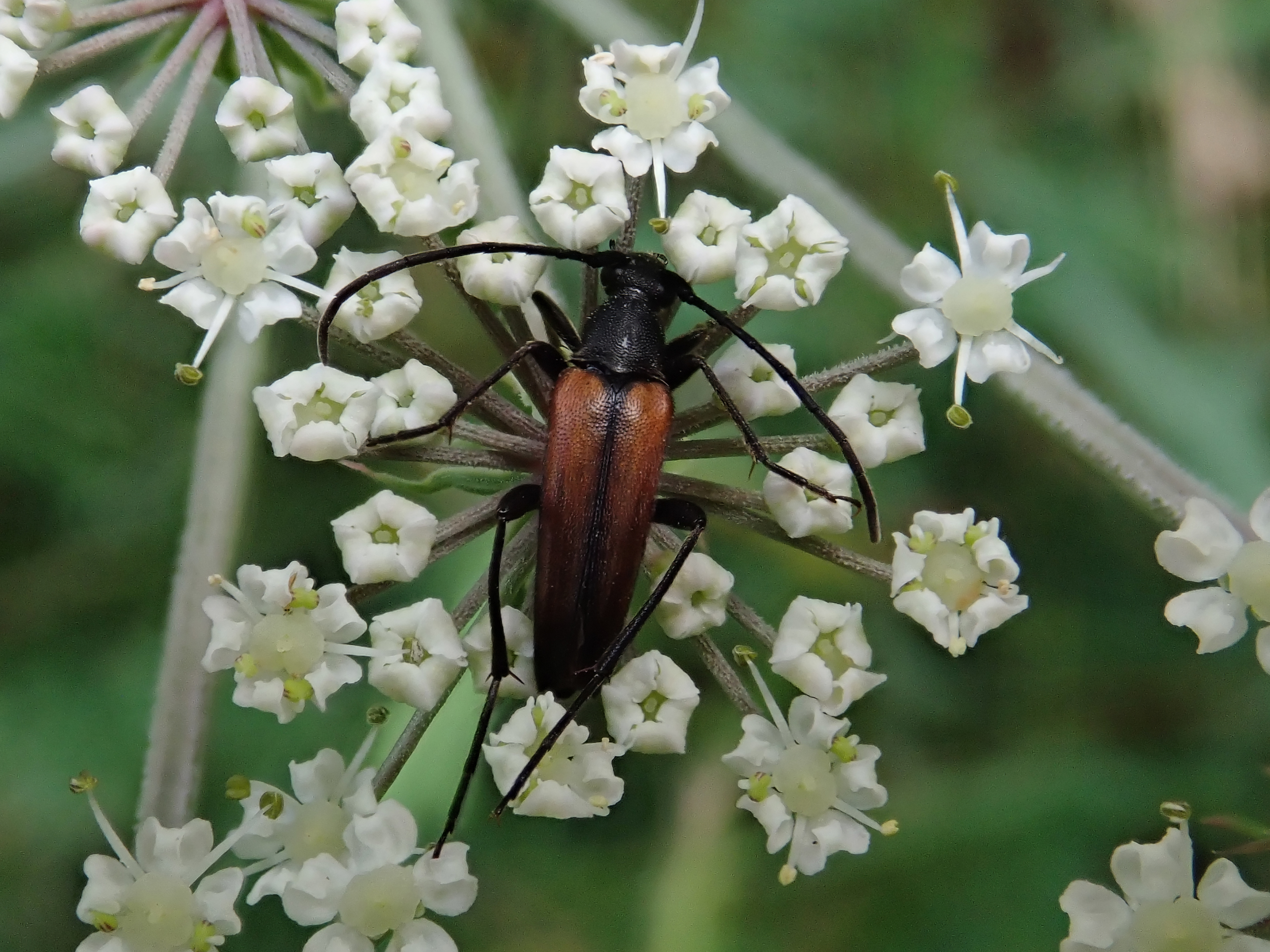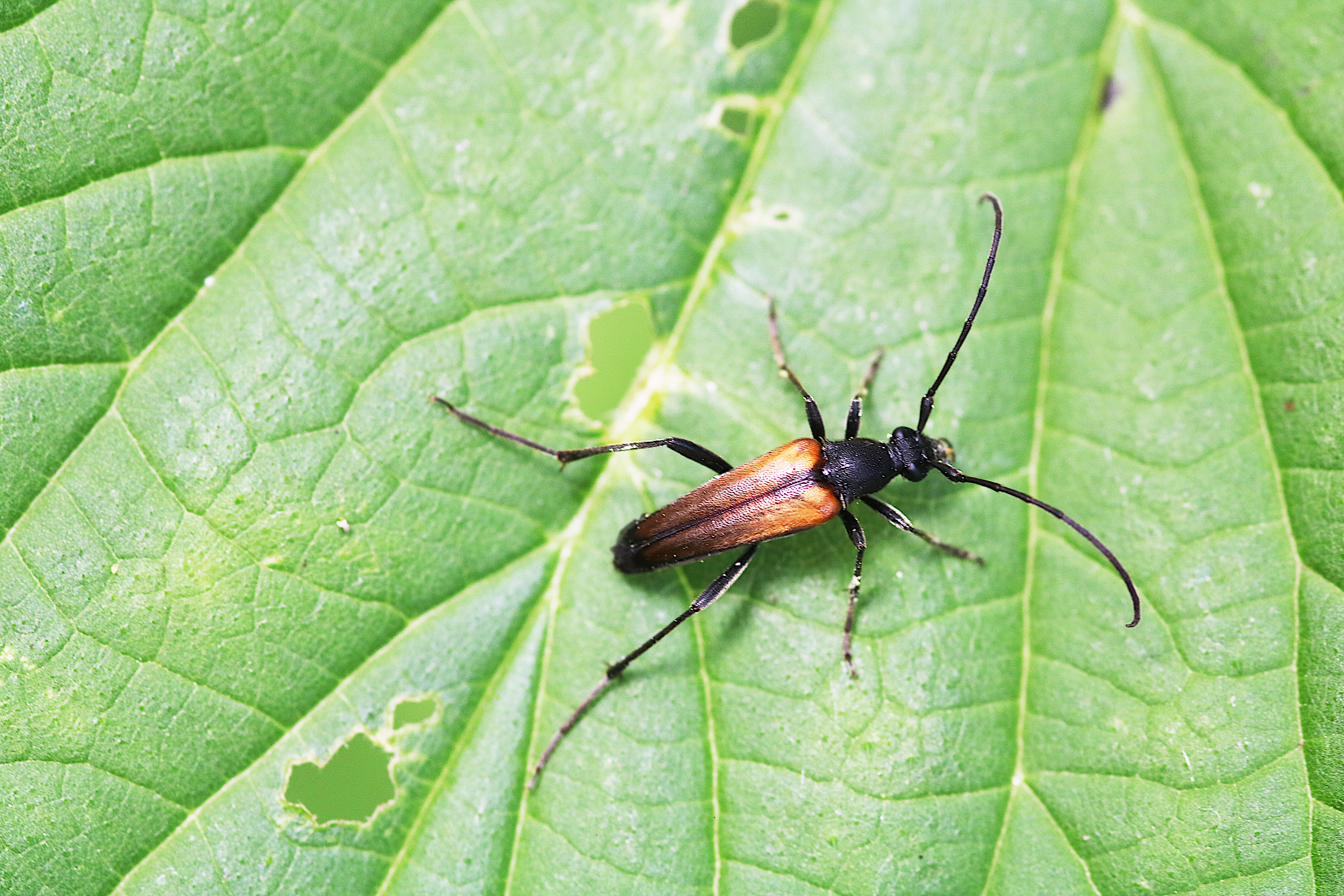 Stenurella melanura (Linnaeus 1758), Schwarznahtiger Halsbock, Weibchen. Fundort Kupsal bei 04509 Krostitz (Nordsachsen) im Juni 2020.