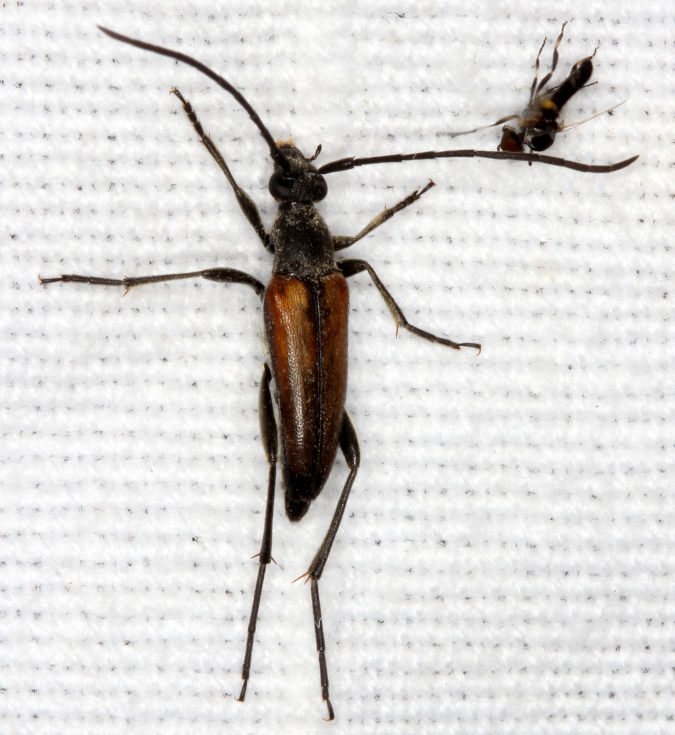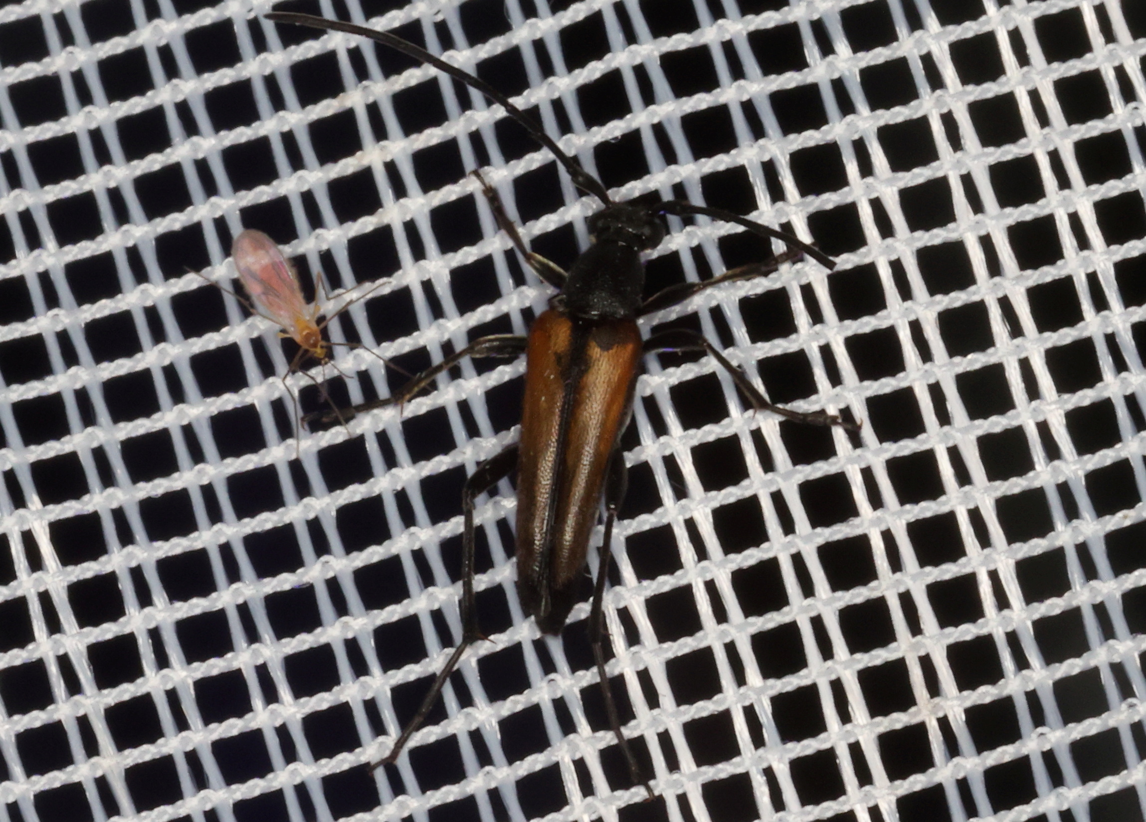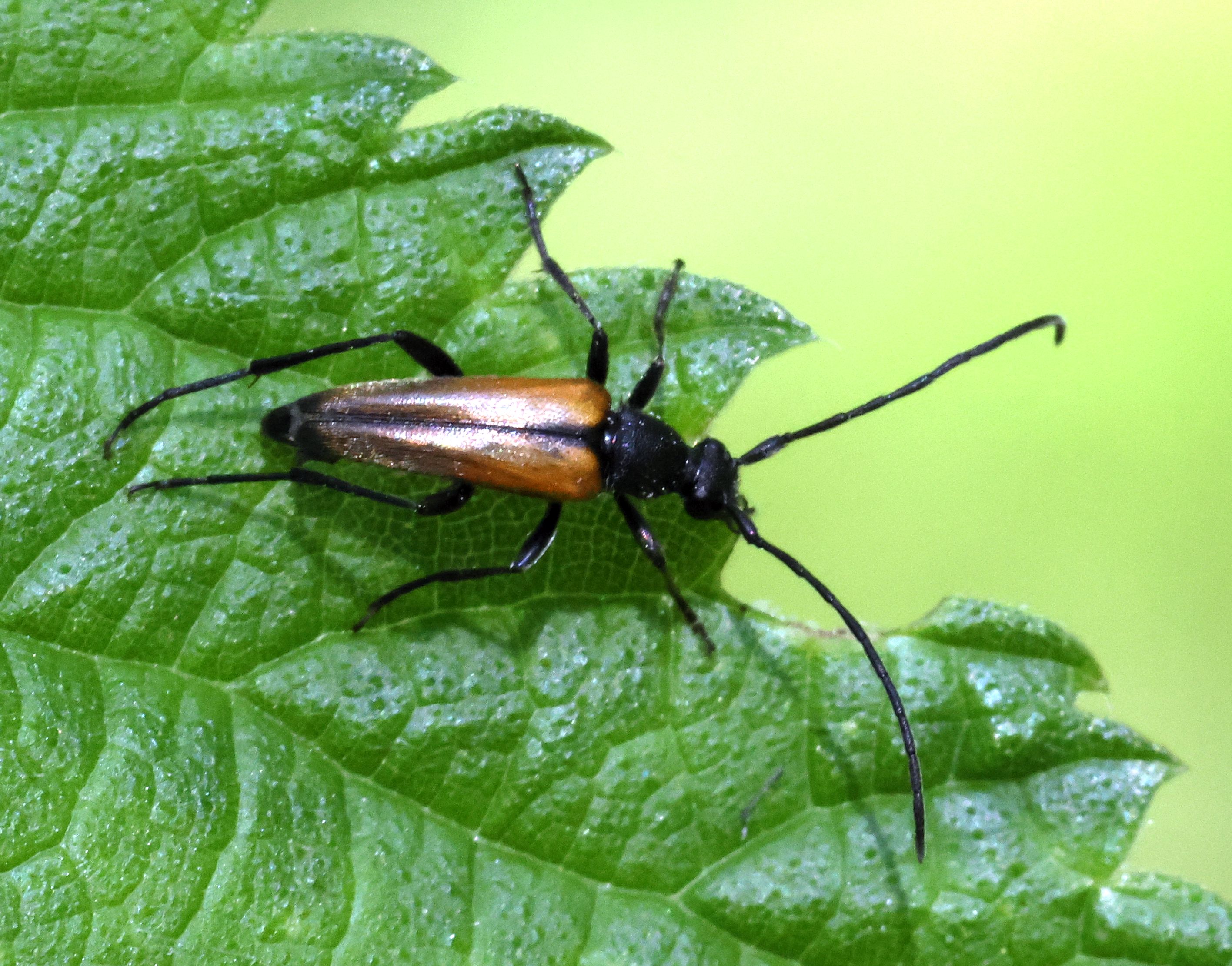 Männchen von Stenurella melanura in Radeberg im Mai 2008. Der zweite Käfer im Hintergrund ist Pseudovadonia livida.