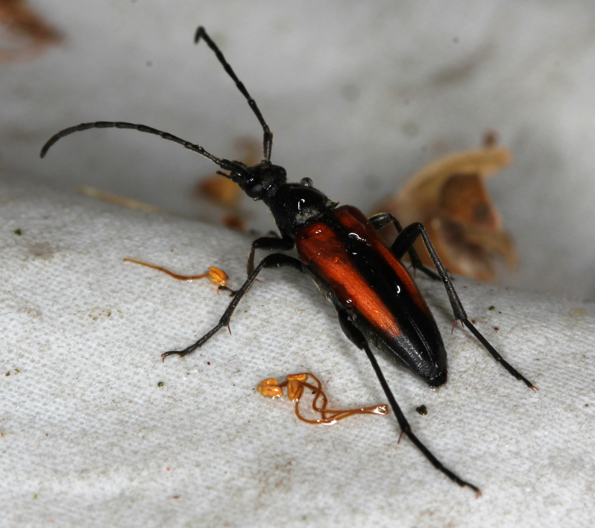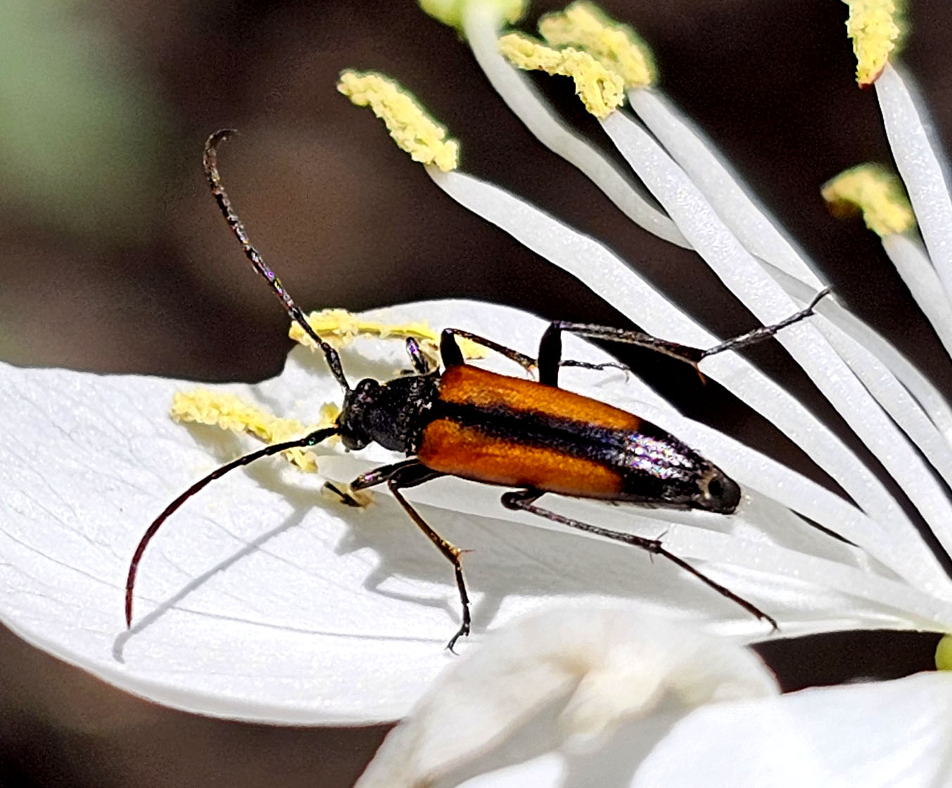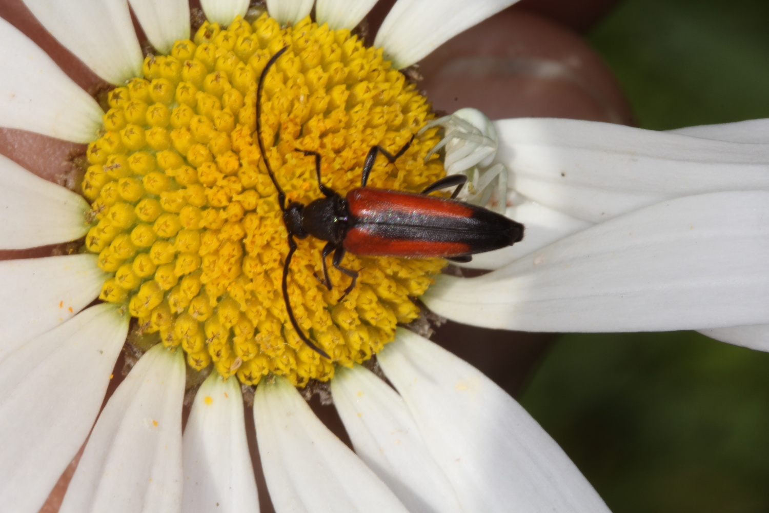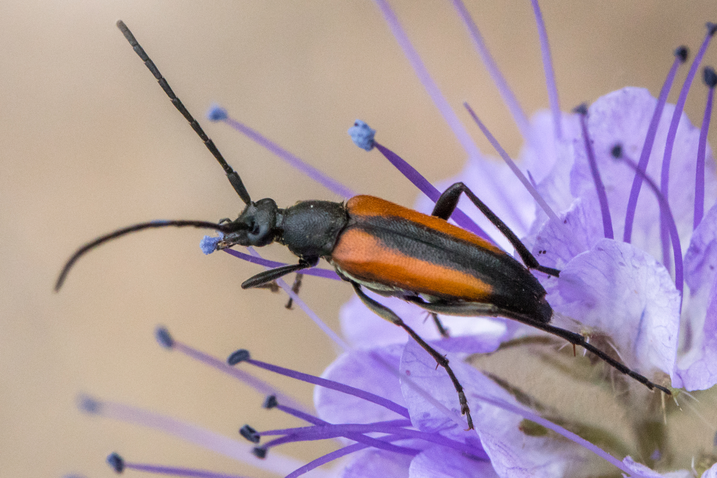 Männchen von Stenurella melanura in Radeberg im Mai 2008. Der zweite Käfer im Hintergrund ist Pseudovadonia livida.