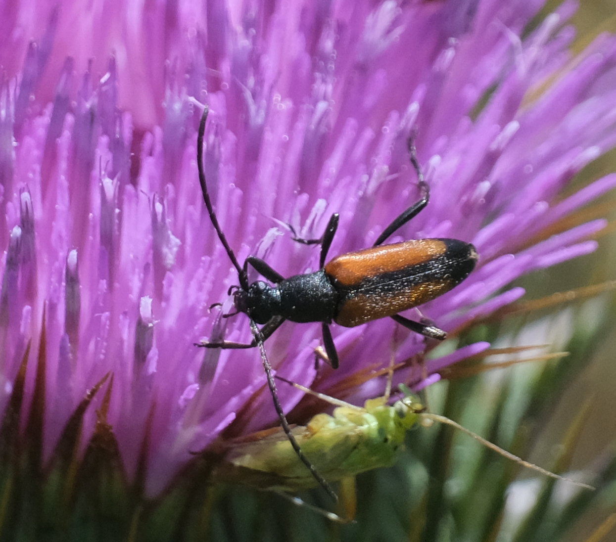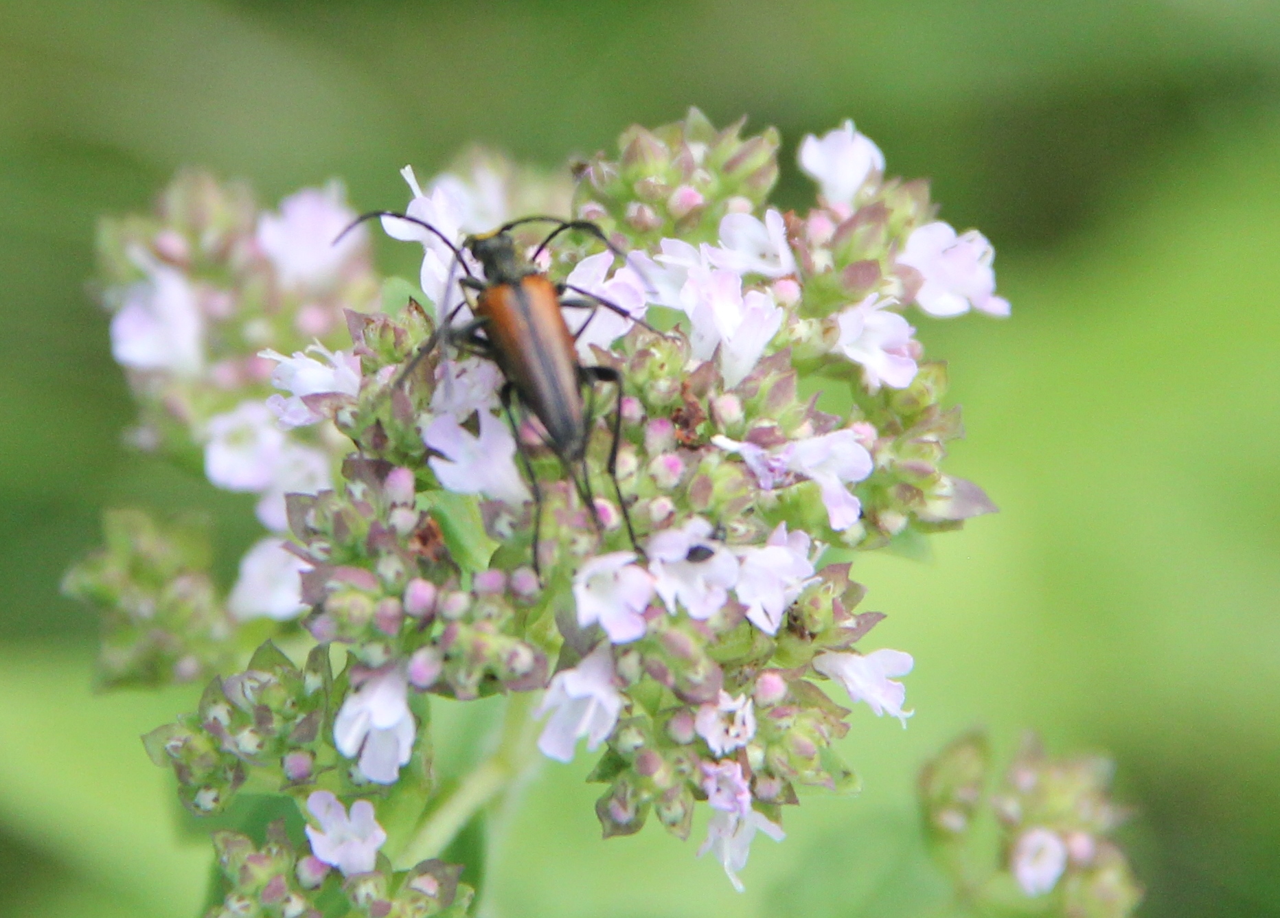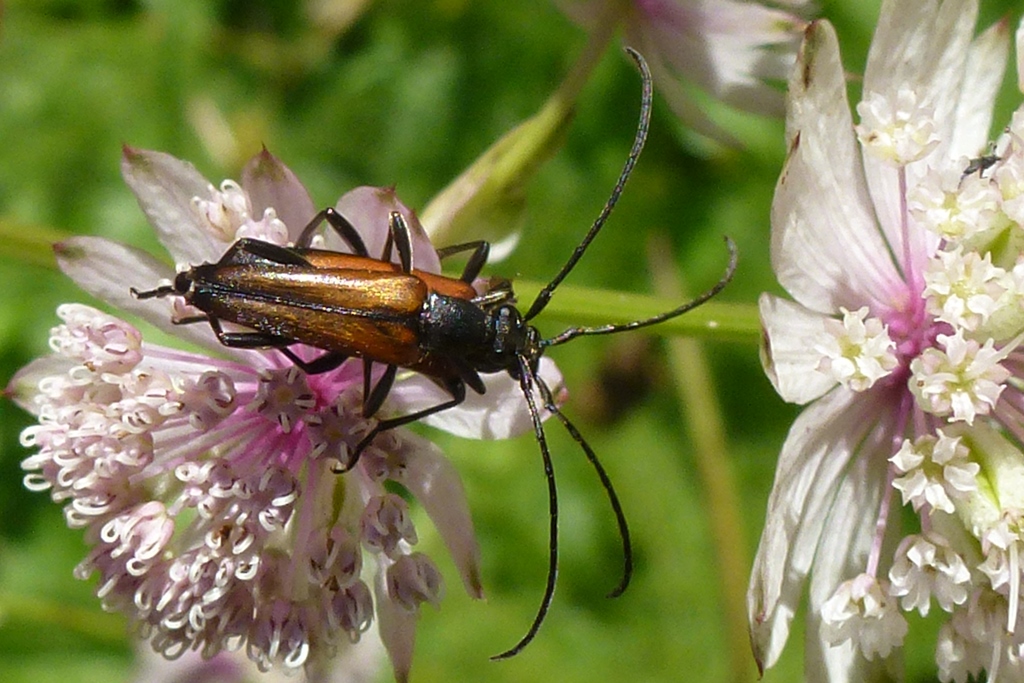 Kleiner Schmalbock (Stenurella melanura (Linnaeus, 1758)), Weibchen, auf Phlox, Torno im Juni 2019