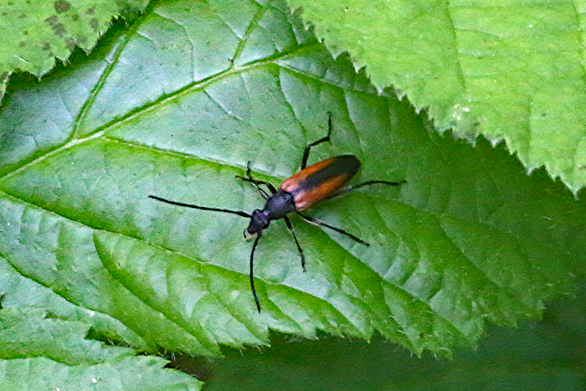Weibchen des Schwarznahtigen Halsbocks in Dresden, Juni 2016
