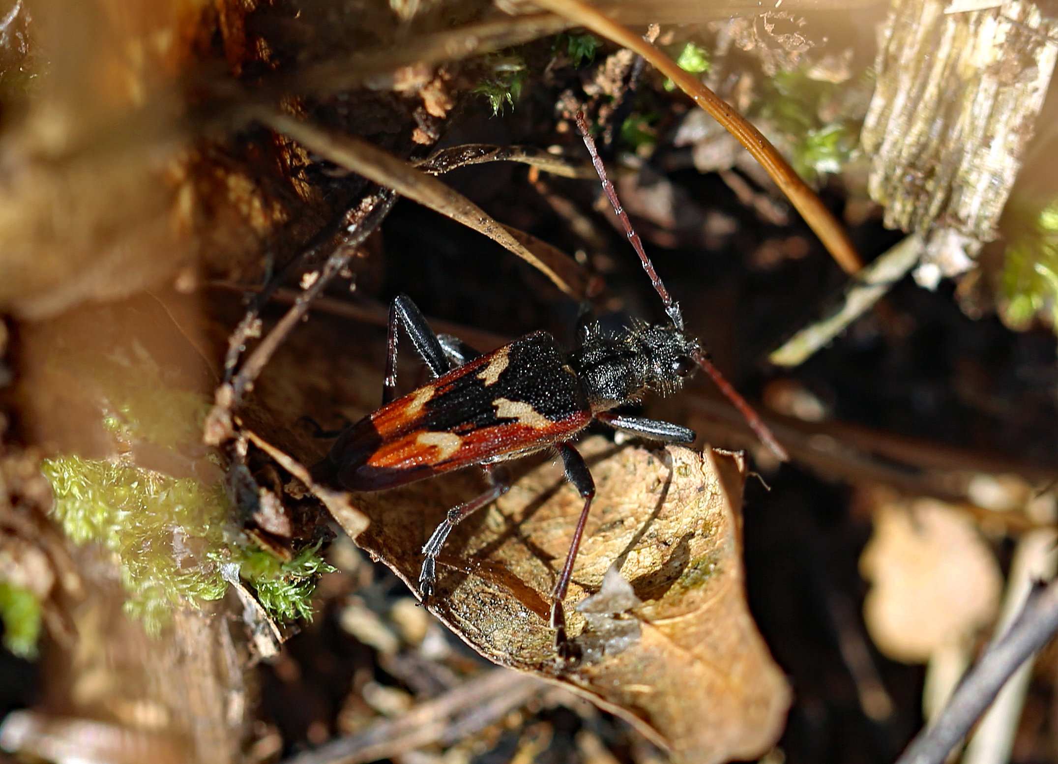 Zweibindiger Zangenbock (Rhagium bifasciatum) im Wald bei der Waldhusche Hinterhermsdorf, 25.04.2019