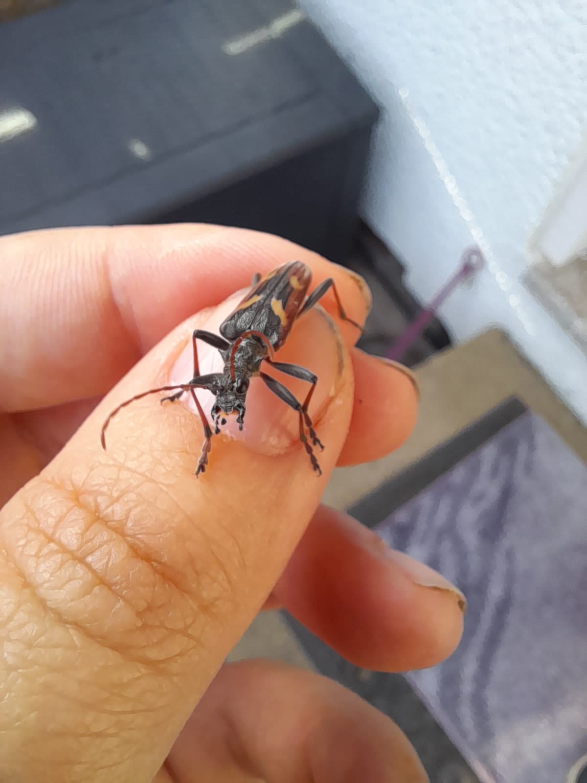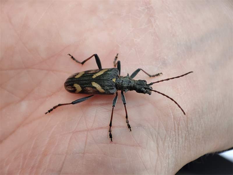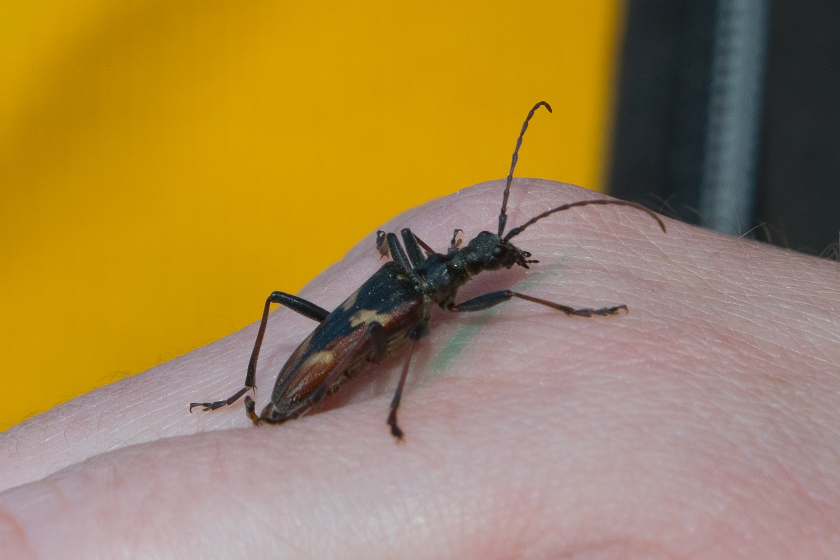 Während ich im Wald die Holzstöße absuchte, wartete Rhagium bifasciatum im Auto auf mich