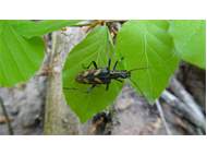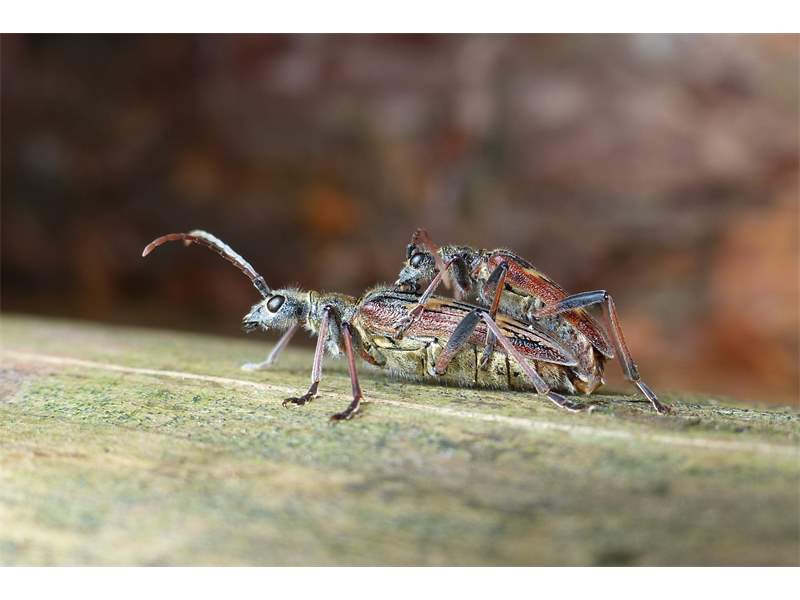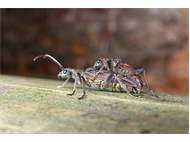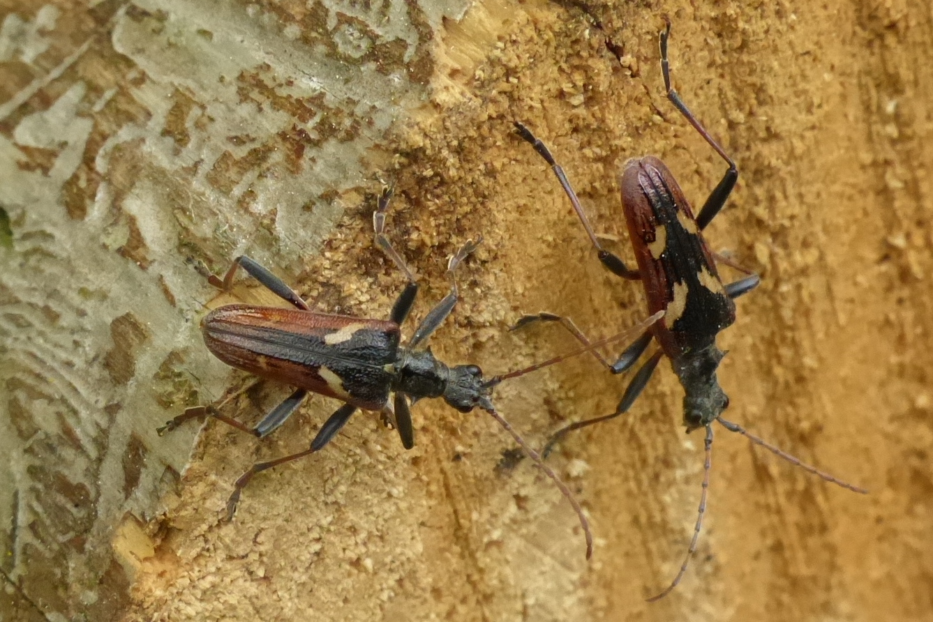Rhagium bifasciatum bei der Paarung auf altem Kiefernholz in der Dresdner Heide am 04.05.2013
