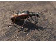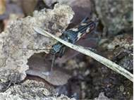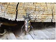 Rhagium bifasciatum auf altem Kiefernholz in der Dresdner Heide am 04.05.2013