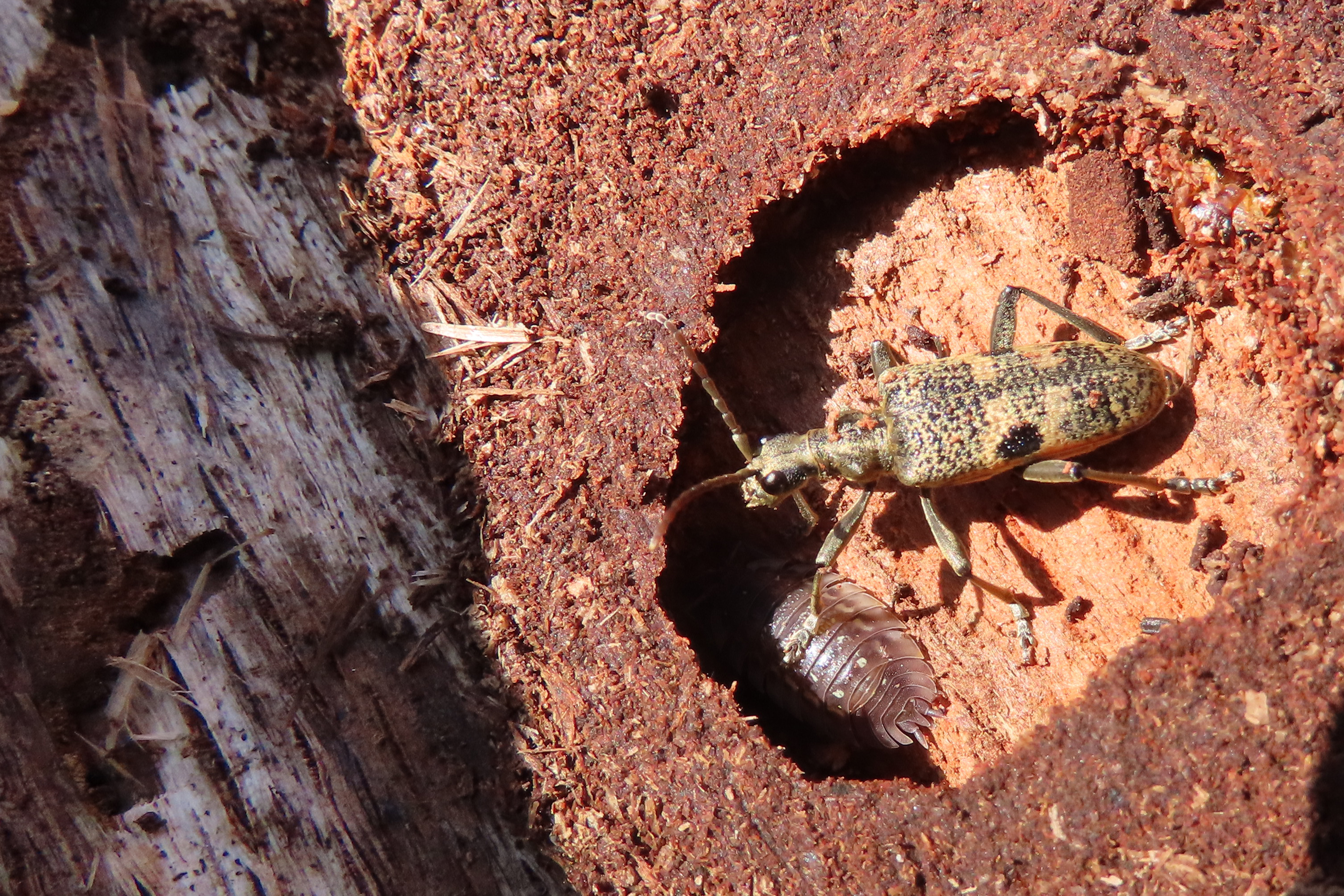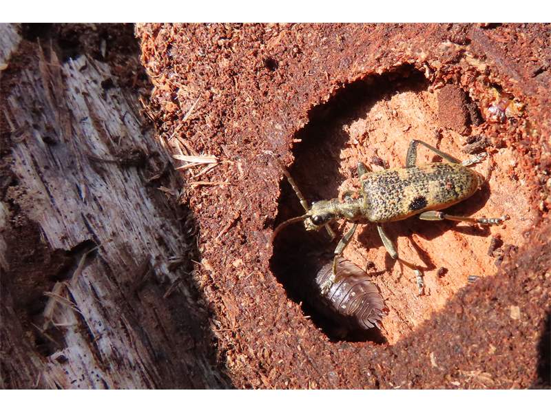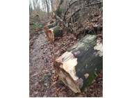 Bernsdorf, Landkreis Bautzen, 23. April 2025, am Rand der Kiesgrube Otterschütz, lies sich von Kieferstamm fallen (© Antje Weiß)( Bild vergrößern)