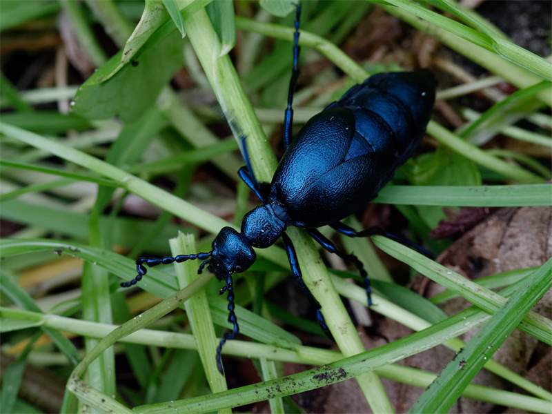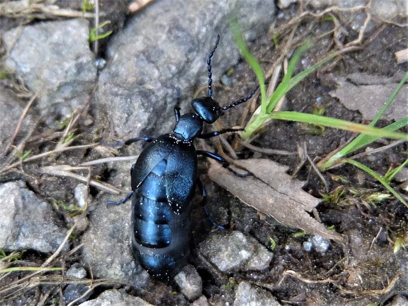Ähnliche Art: Beim Schwarzblauen Ölkäfer (Meloe proscarabaeus) sind Kopf und Halsschild grob punktiert, der Hinterrand des Halsschildes ist gerade und die Hinterschienen besitzen einen löffelförmigen inneren Enddorn (Lupe!).