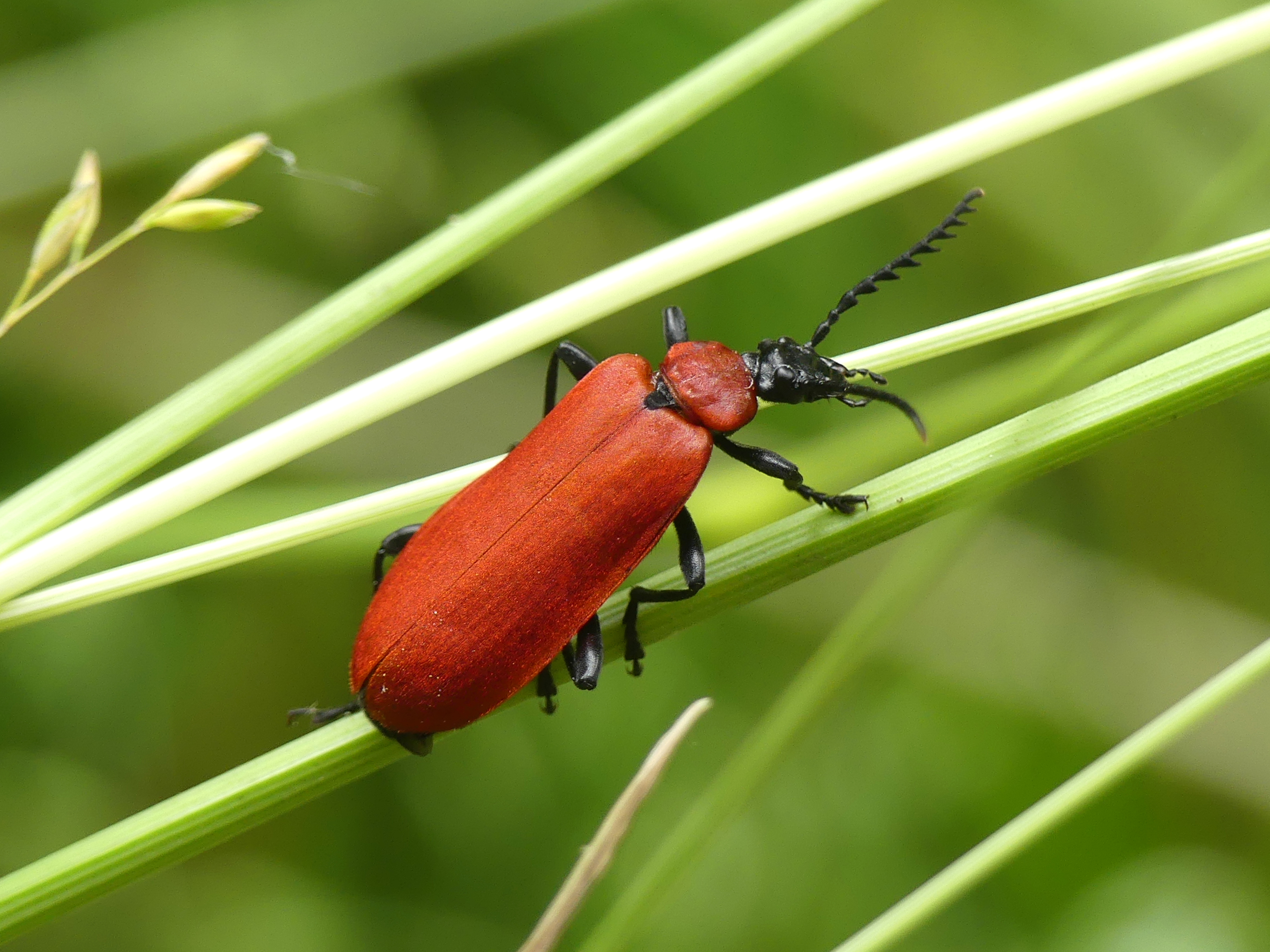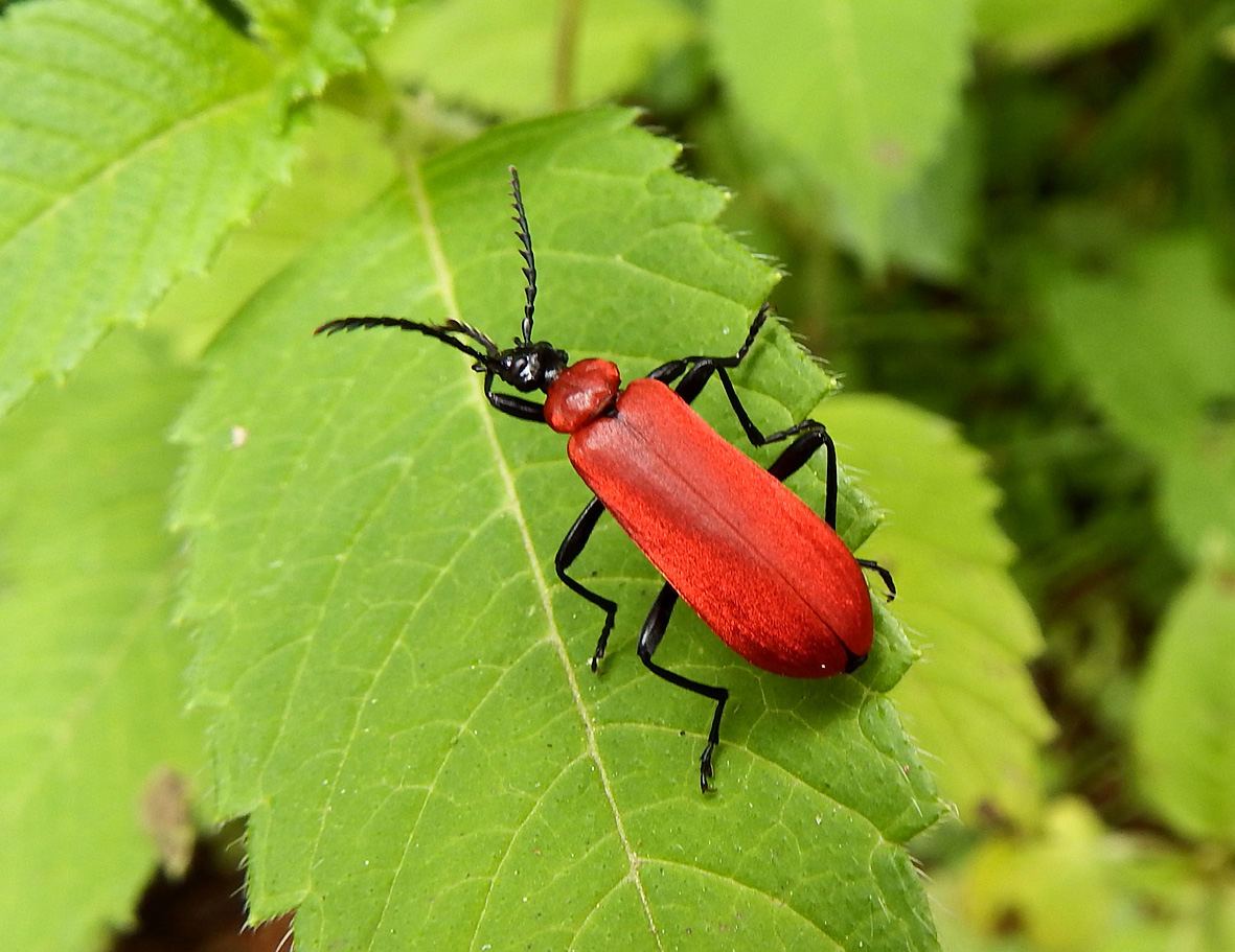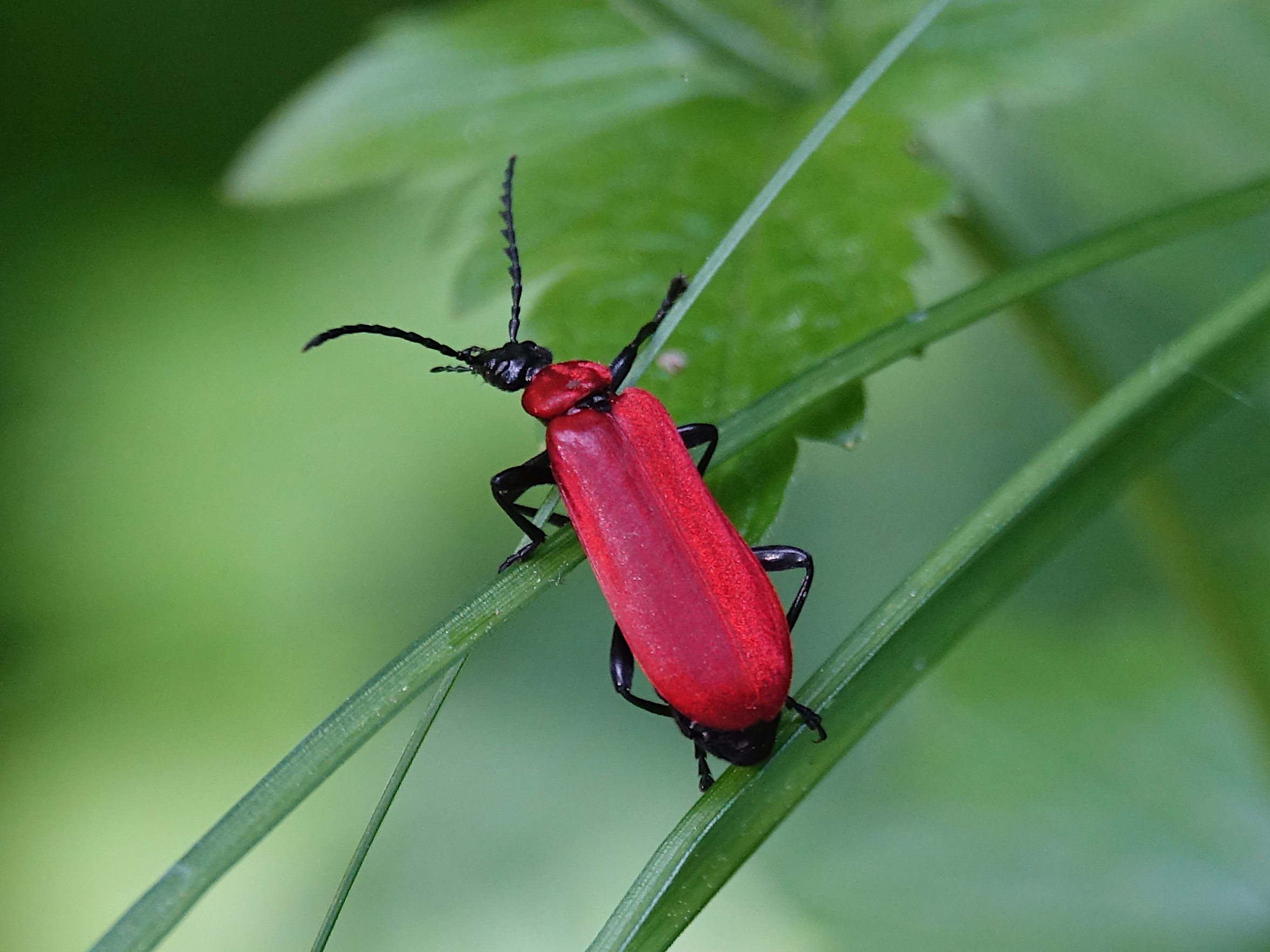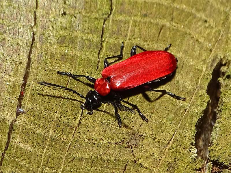 Ähnliche Arten: Beim Rotköpfigen Feuerkäfer (Pyrochroa serraticornis) ist der Kopf einfarbig rot, nur die Fühler und Taster sind schwarz. Bei den deutlich kleineren Rotdeckenkäfern Pyropterus nigroruber und dem Kleinen Rotdeckenkäfer (Platycis minutus) sind die Flügeldecken deutlich gerippt. Vergleiche auch den Scharlachroten Netzkäfer (Dictyoptera aurora) und den Rüssel-Rotdeckenkäfer (Lygistopterus sanguineus).