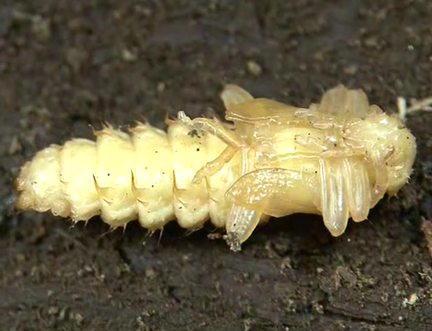 Körper abgeflacht und nach hinten deutlich erweitert.