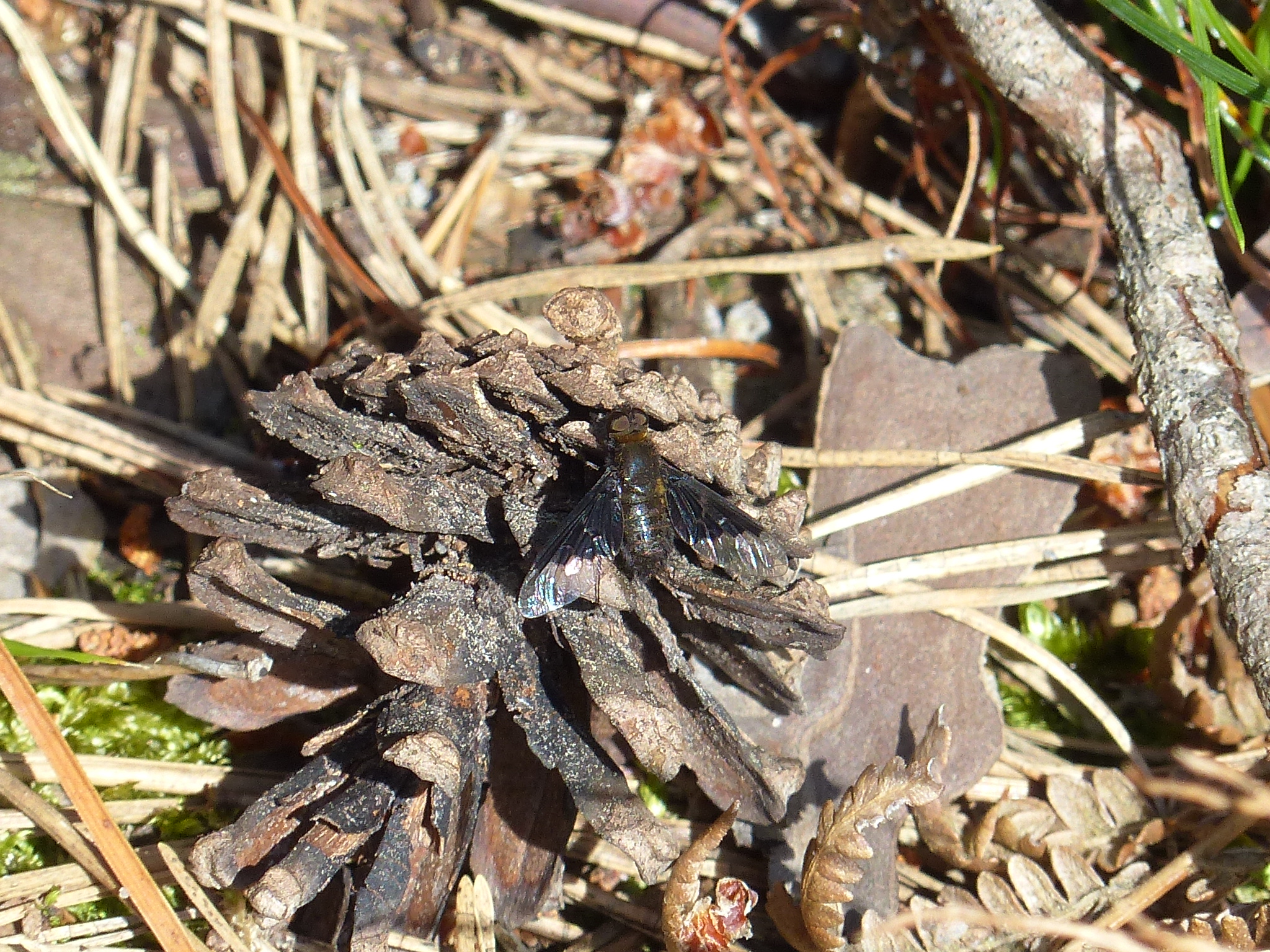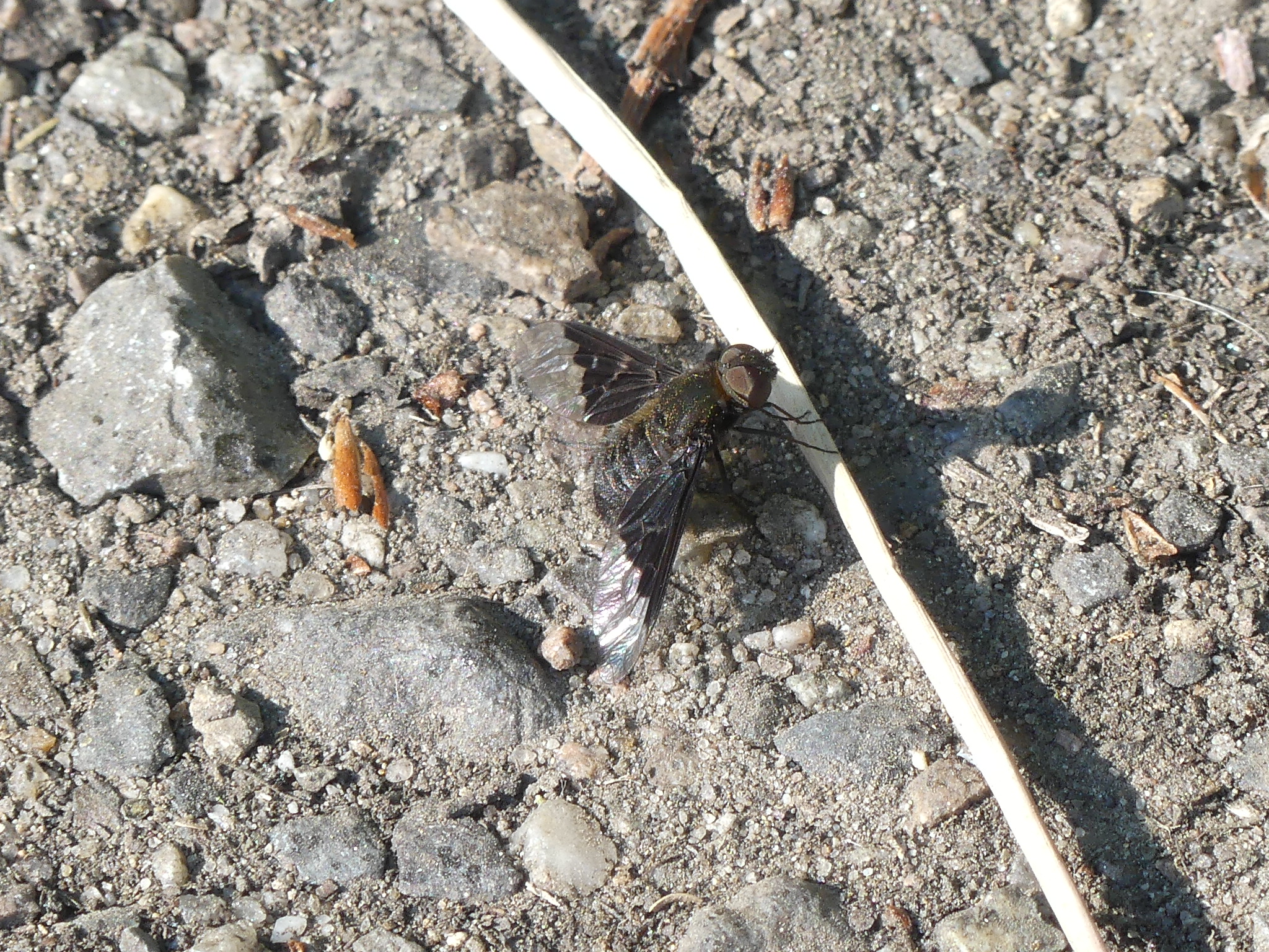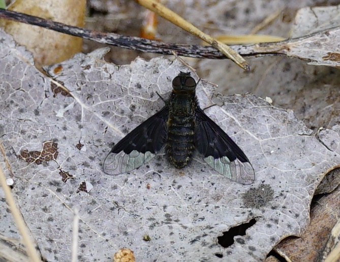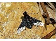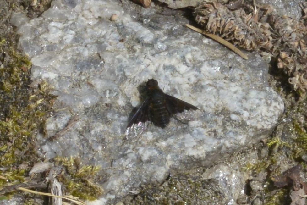 Hemipenthes morio an einem Waldweg, Hochhalde Trages bei Espenhain, Mai 2015