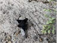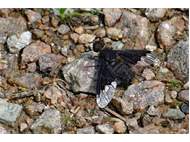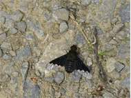 Trauerschweber im Juni 2014 auf einem Waldweg, Hochhalde Trages