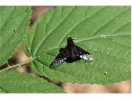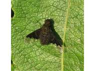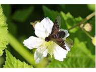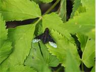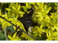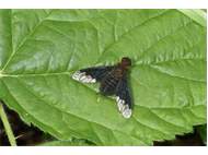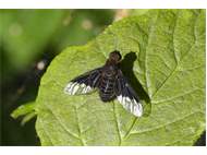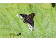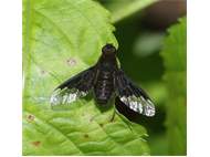 Zickzack-Trauerschweber (Hemipenthes morio (Linnaeus, 1758)) auf Brombeeren (Rubus sect. Rubus) Mortka, 18.06.2020