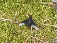 Zickzack-Trauerschweber (Hemipenthes morio) im NSG "Moorwald am Pechfluß bei Medingen", 23.06.2019