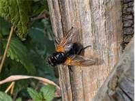 Hinterleib: glänzend schwarz mit schwarzen Borsten.