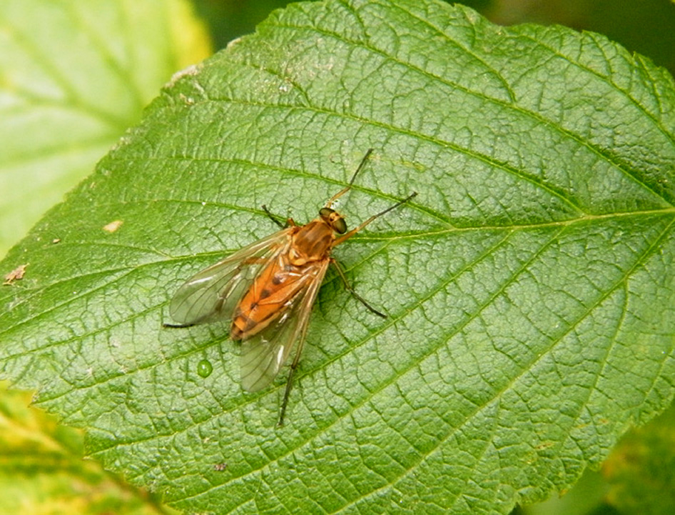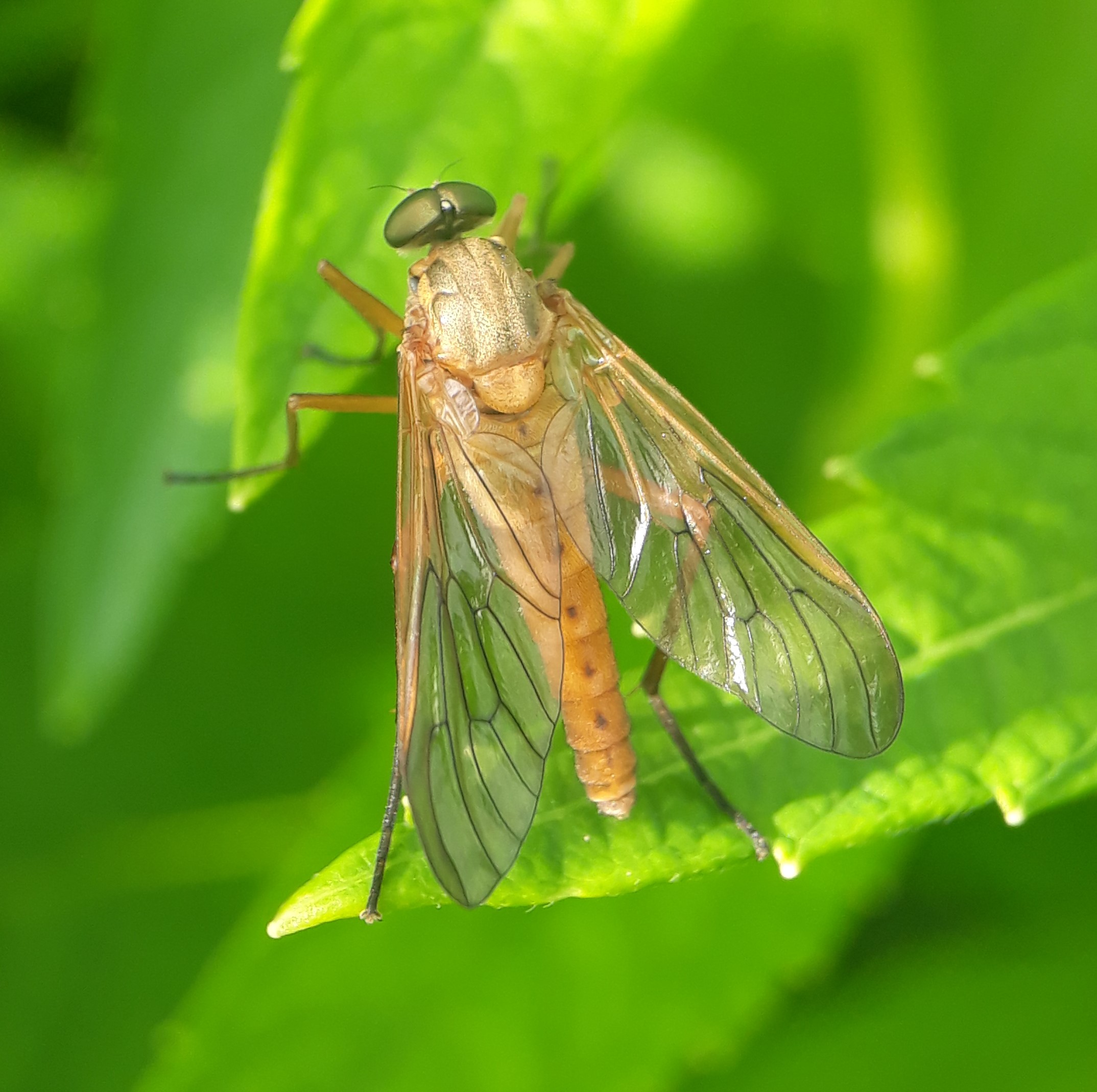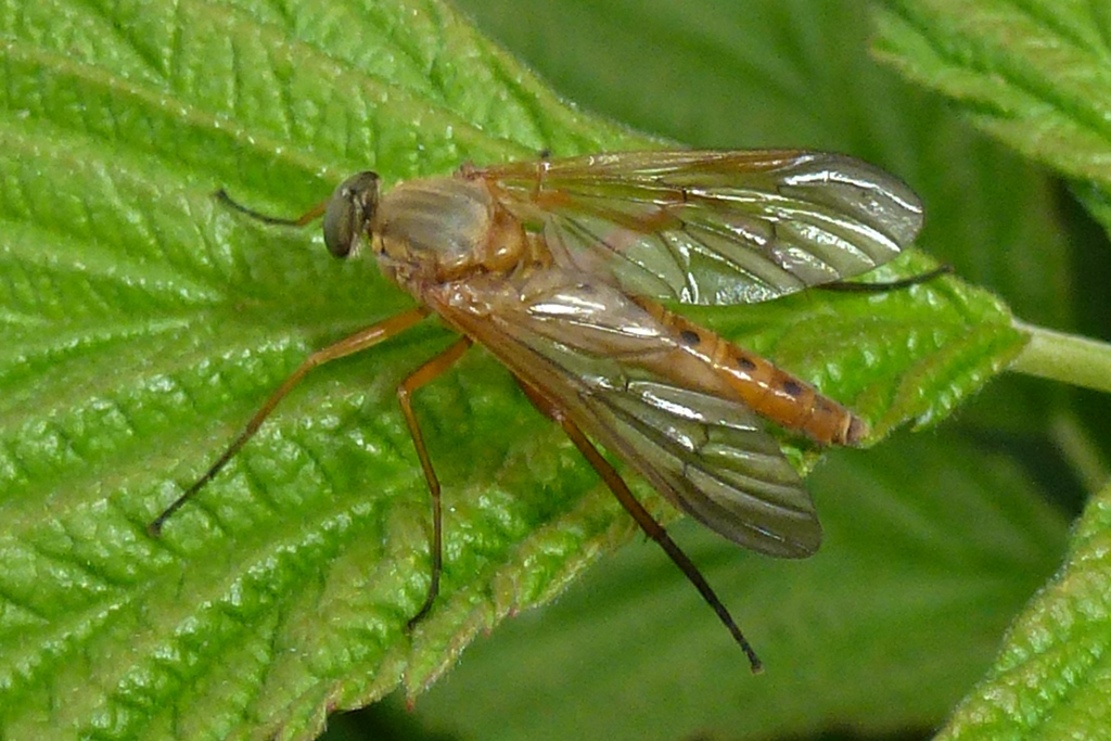 Goldgelbe Schnepfenfliege im Juni 2018 in Schellerhau