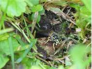 Erdnest der Gemeinen Wespe (Vespula vulgaris (Linnaeus, 1758)) auf Streuobstwiese im Vogtland, August 2019.