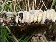 Larven und Puppen werden in der Absterbephase des Volkes aus dem Nest getragen, Fuhlendorf (Landkreis Vorpommern-Rügen), 18.10.2020