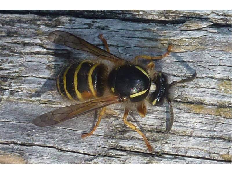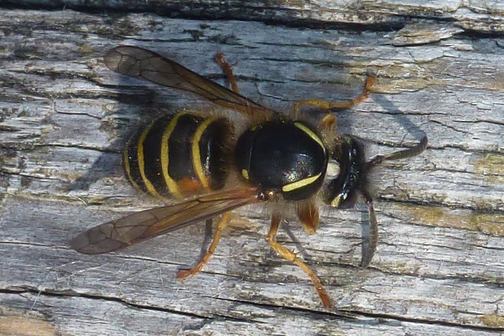 Ähnliche Art: Wenn die rote Zeichnung auf dem Hinterleib reduziert ist, sehr ähnlich zur Sächsischen Wespe (Dolichovespula saxonica).