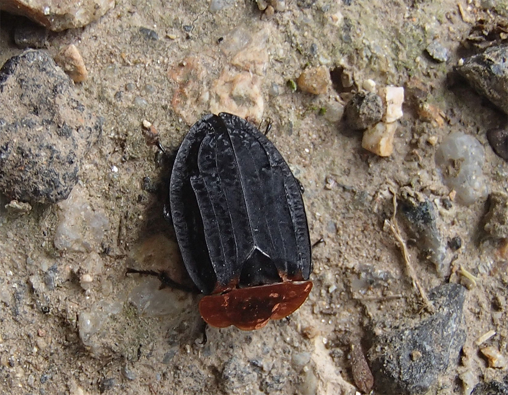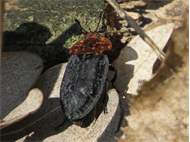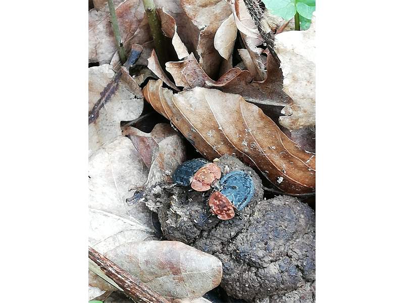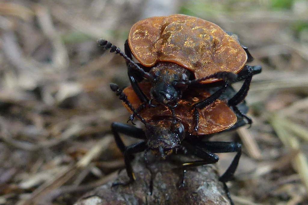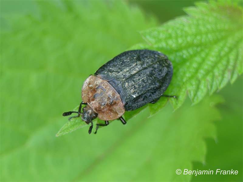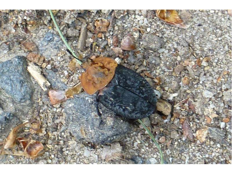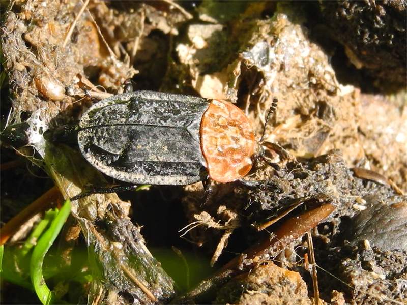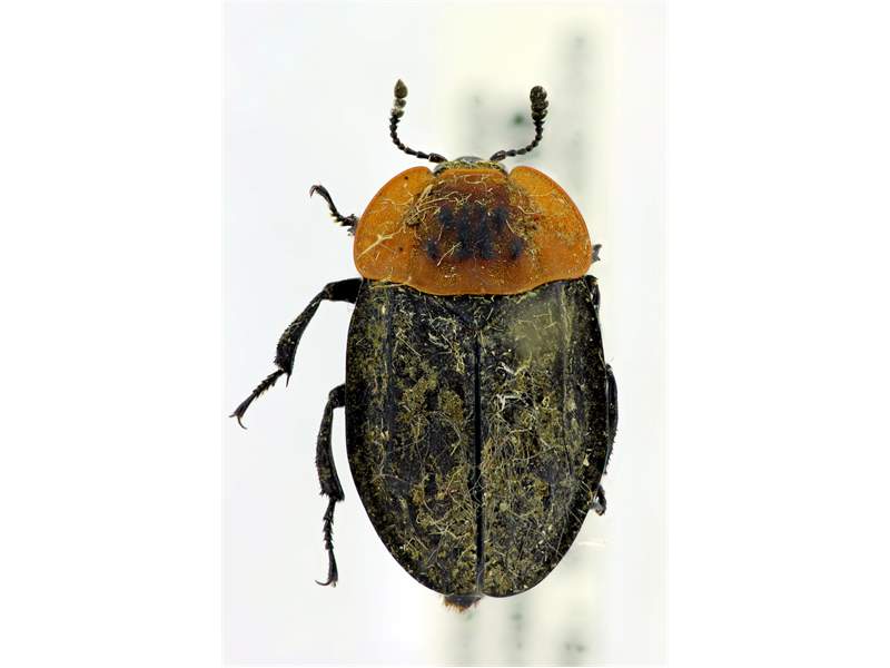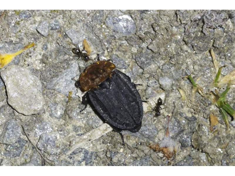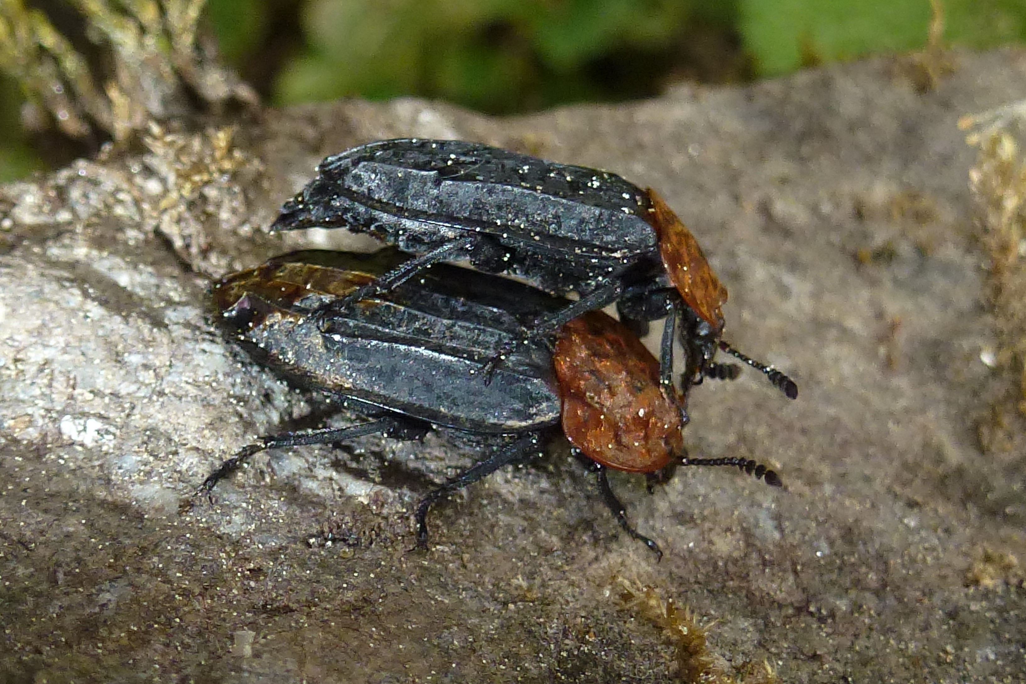 beide Käfer unten, rechts und links, zusammen mit Nicrophorus vespilloides und evtl. Nicrophorus vespillo, Sohland, 05.08.2020 (© Konrad Thomas)( Bild vergrößern)