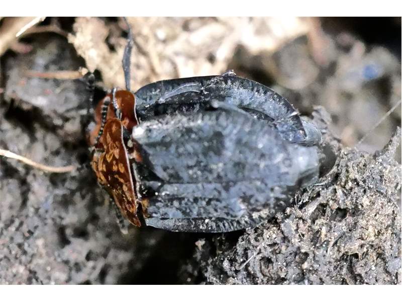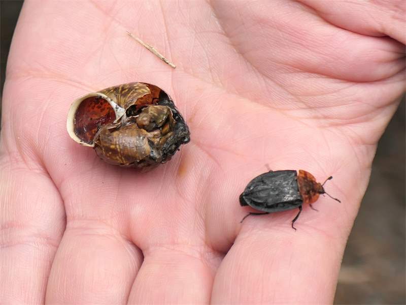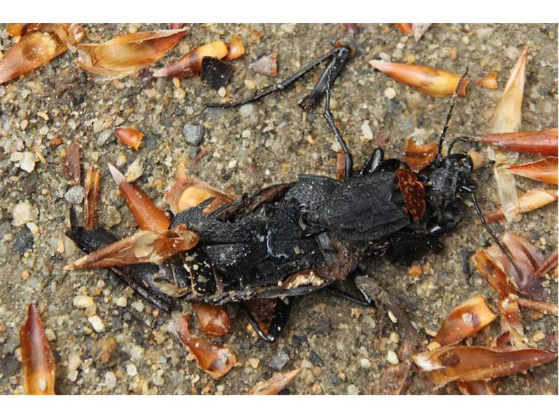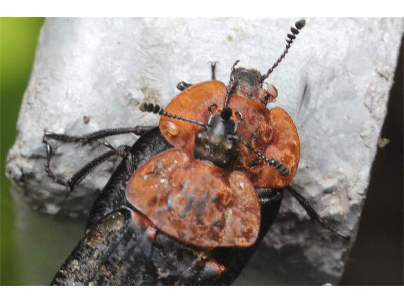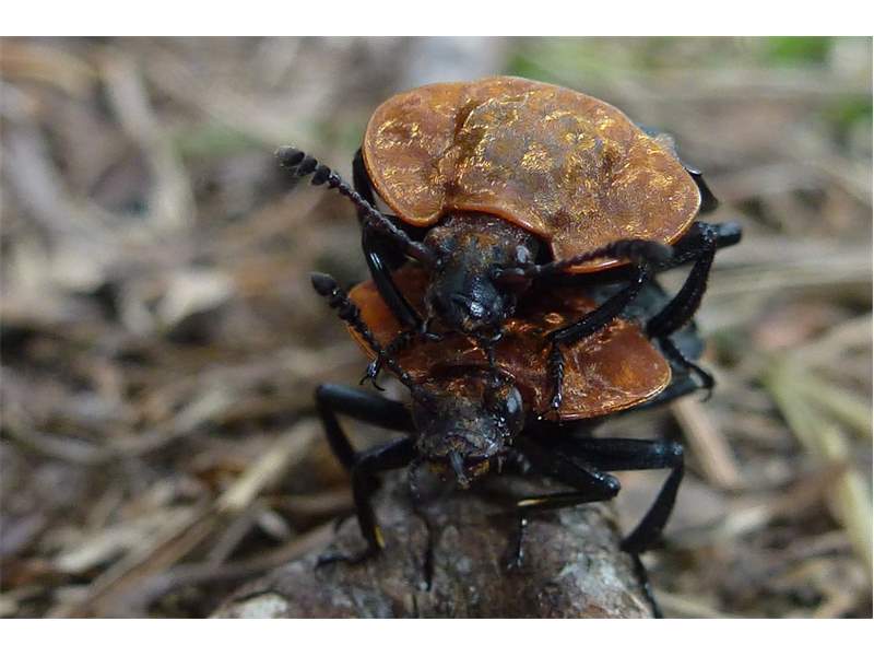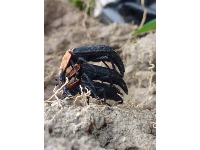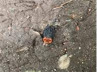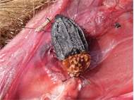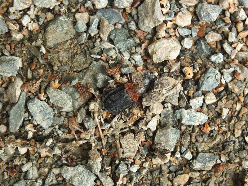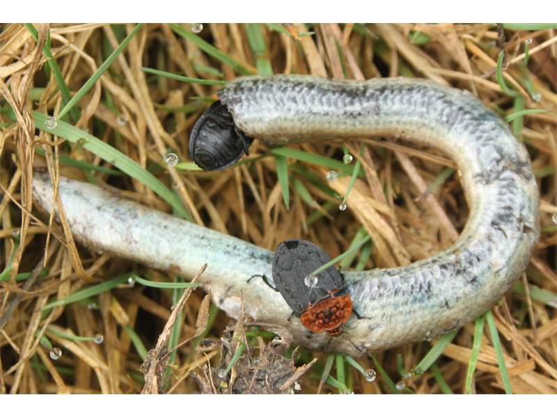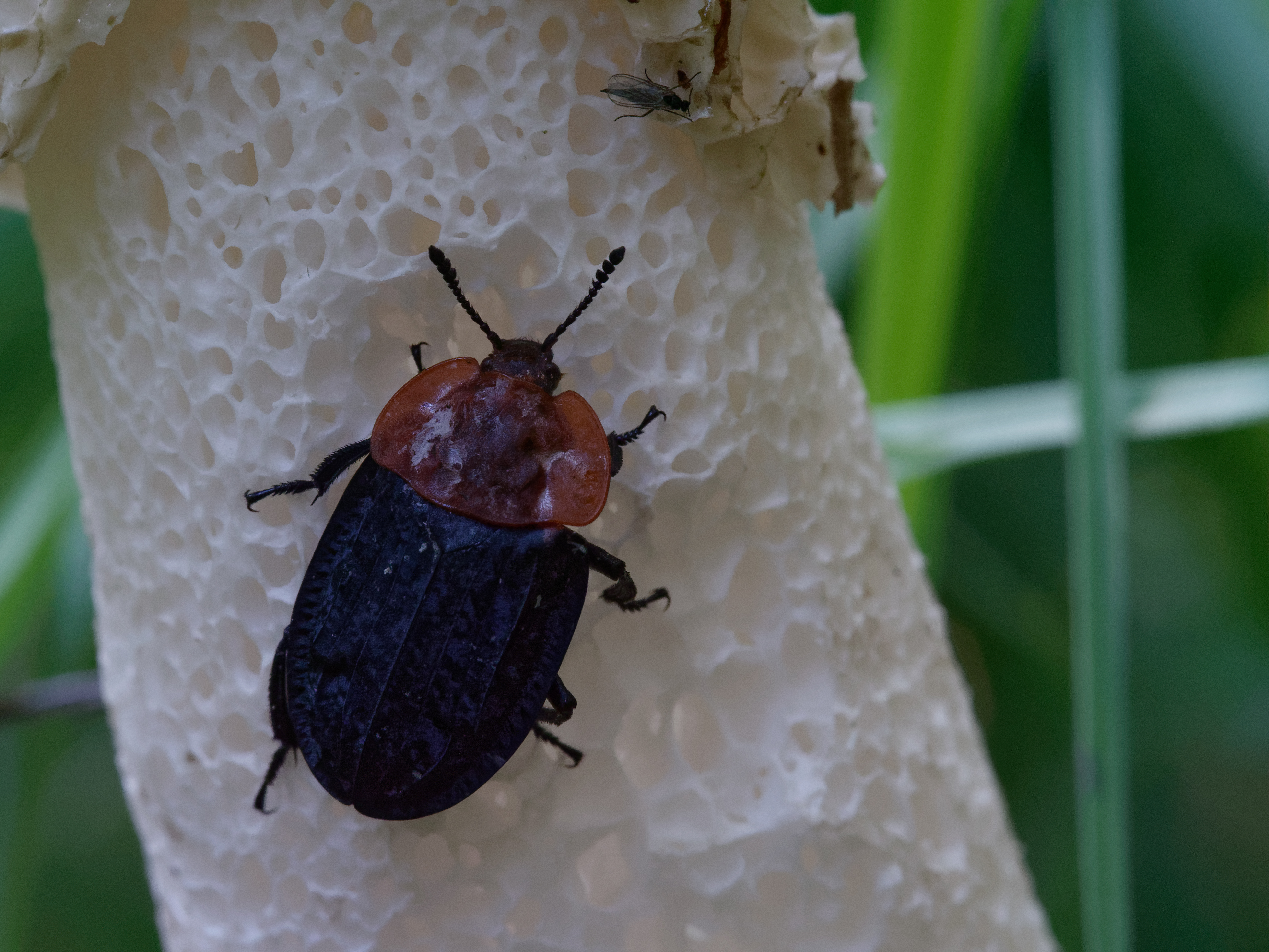 beide Käfer unten, rechts und links, zusammen mit Nicrophorus vespilloides und evtl. Nicrophorus vespillo, Sohland, 05.08.2020 (© Konrad Thomas)( Bild vergrößern)