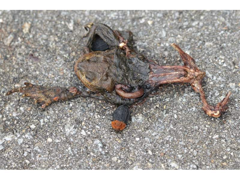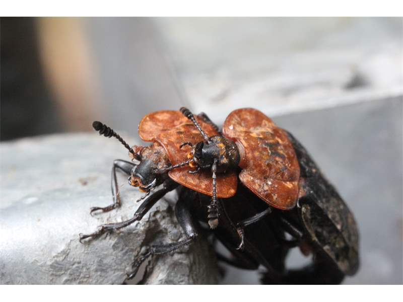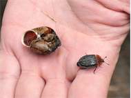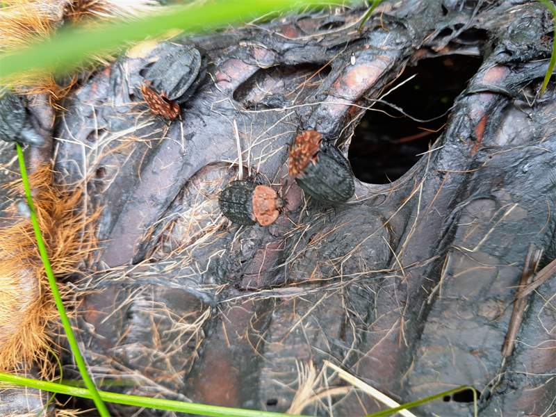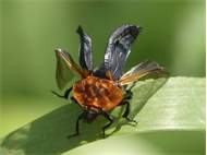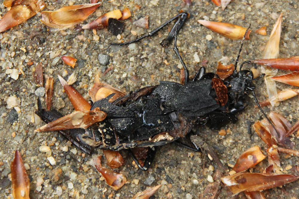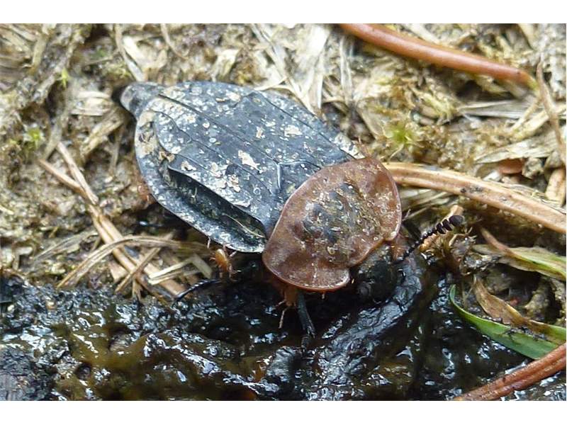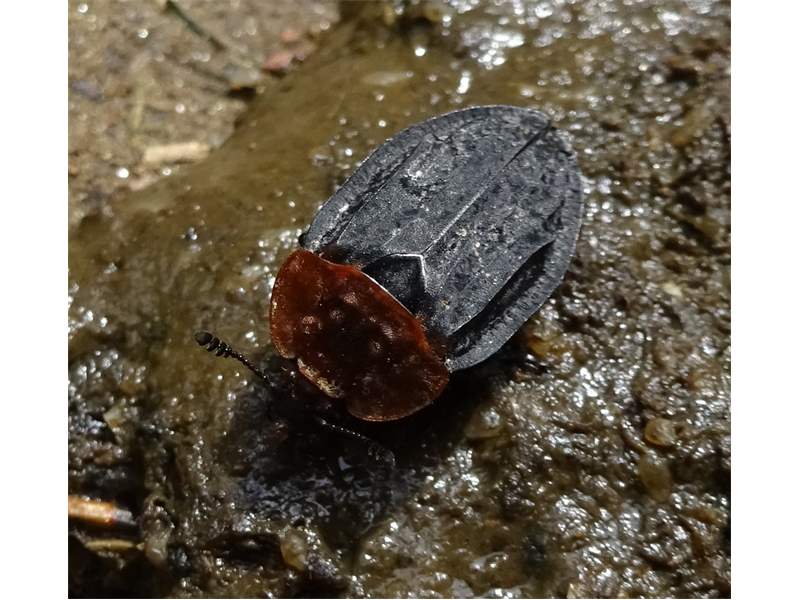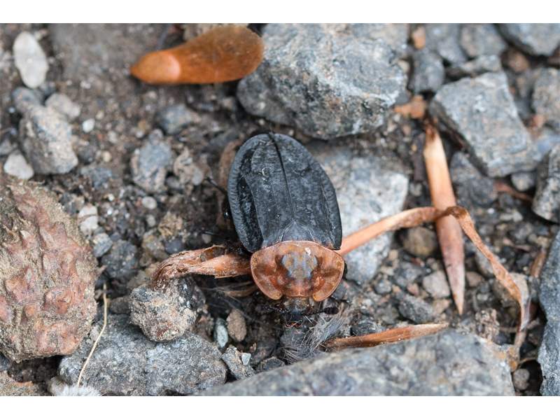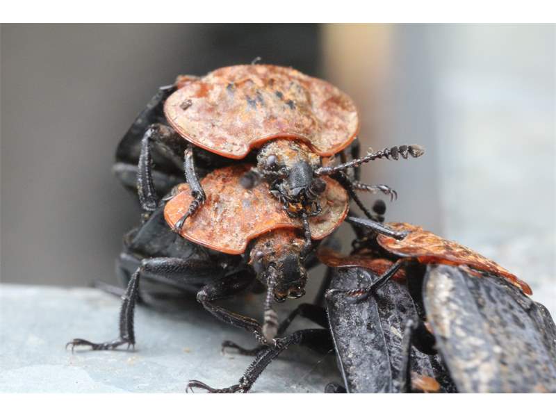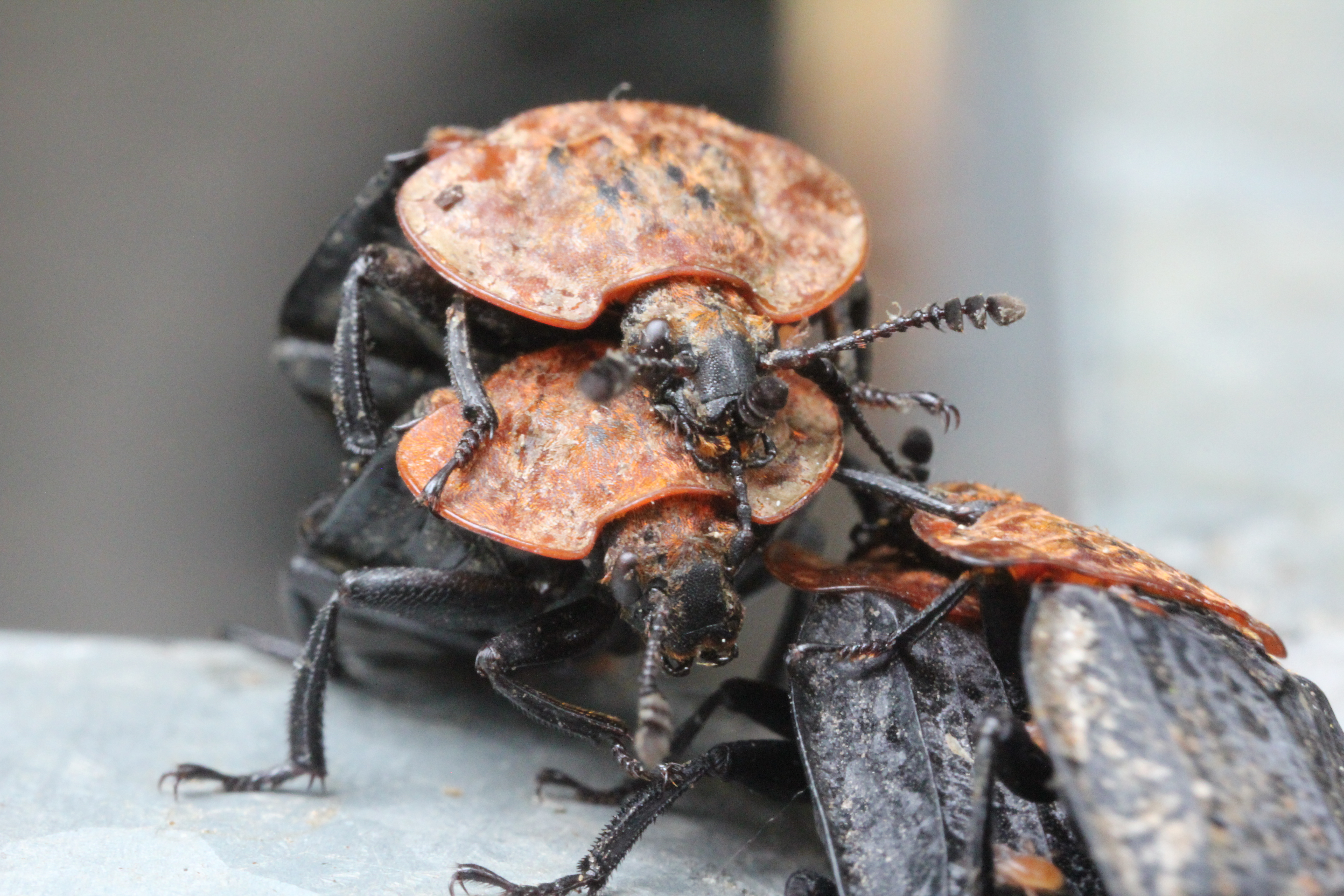 beide Käfer unten, rechts und links, zusammen mit Nicrophorus vespilloides und evtl. Nicrophorus vespillo, Sohland, 05.08.2020 (© Konrad Thomas)( Bild vergrößern)