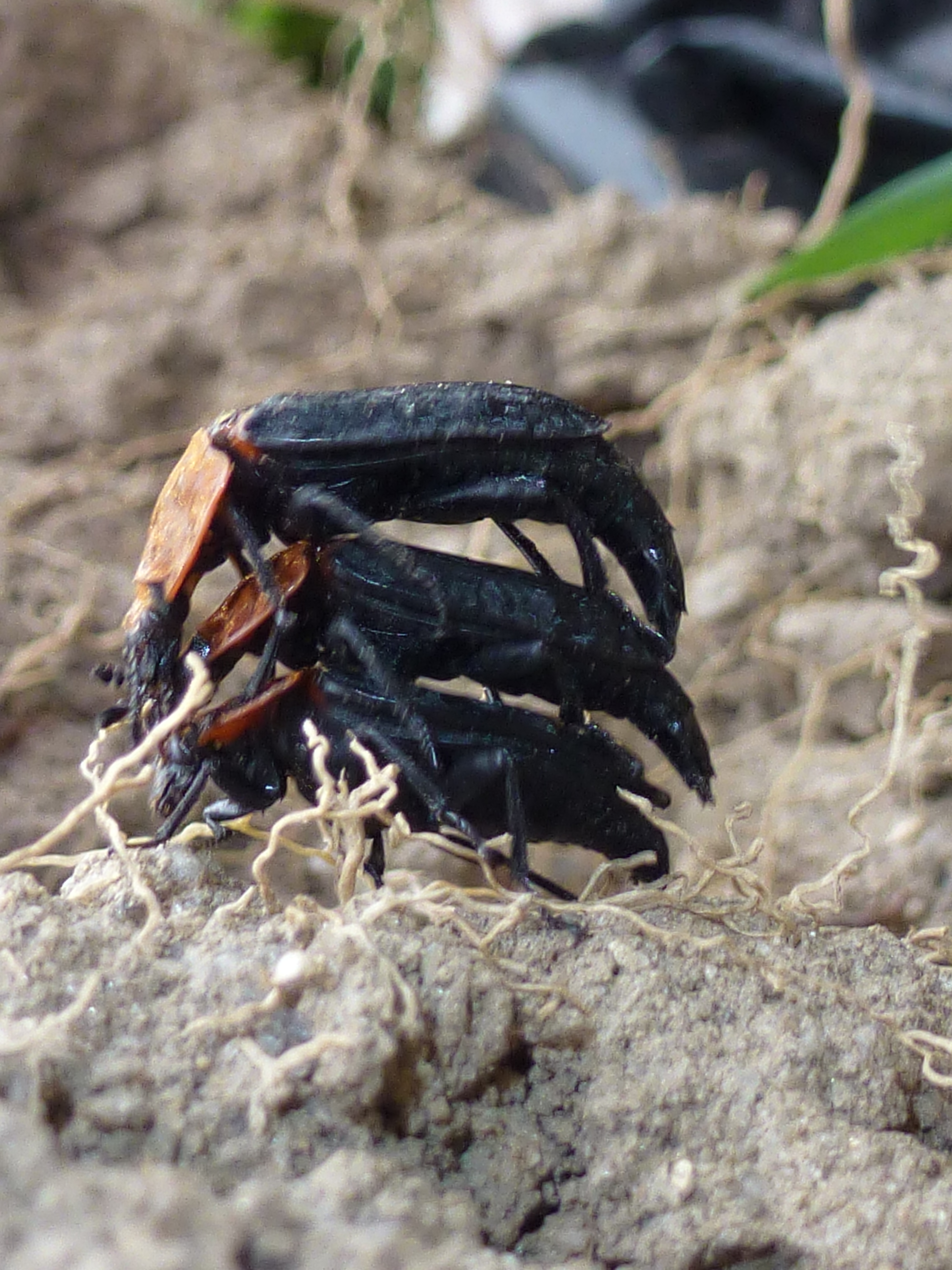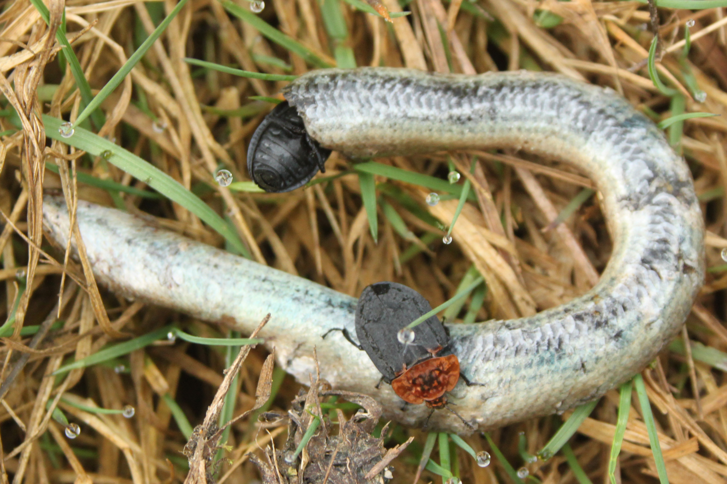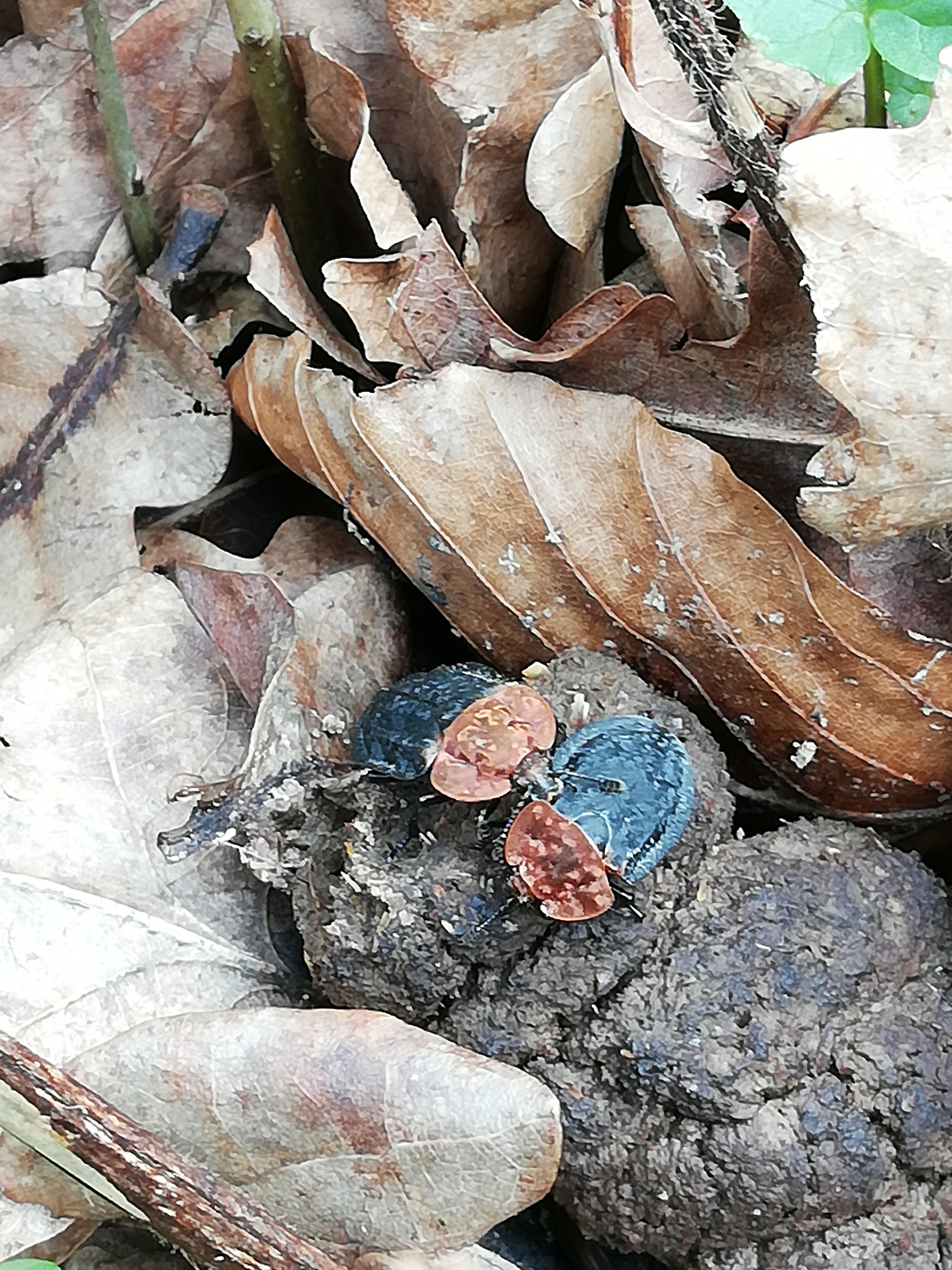 beide Käfer unten, rechts und links, zusammen mit Nicrophorus vespilloides und evtl. Nicrophorus vespillo, Sohland, 05.08.2020
