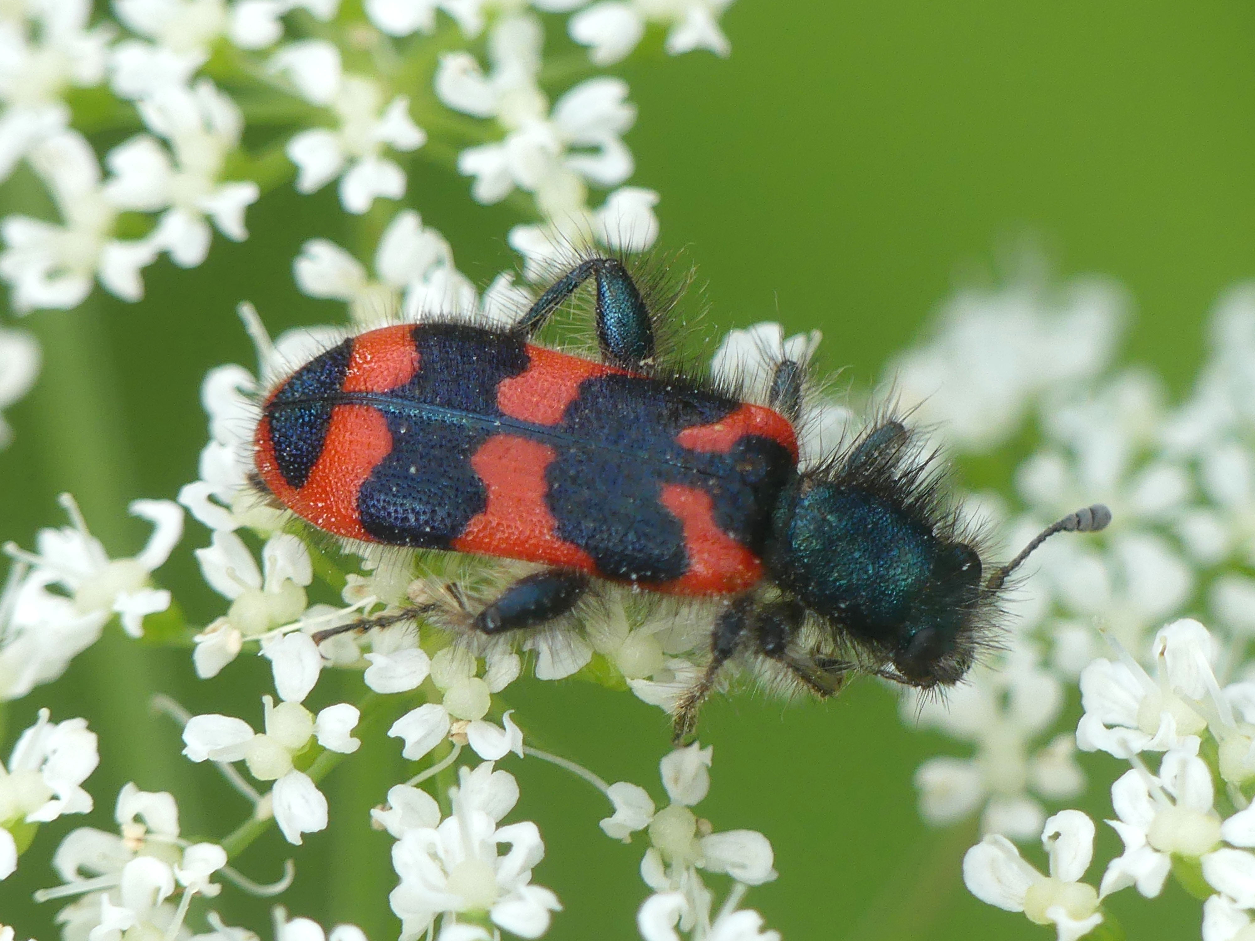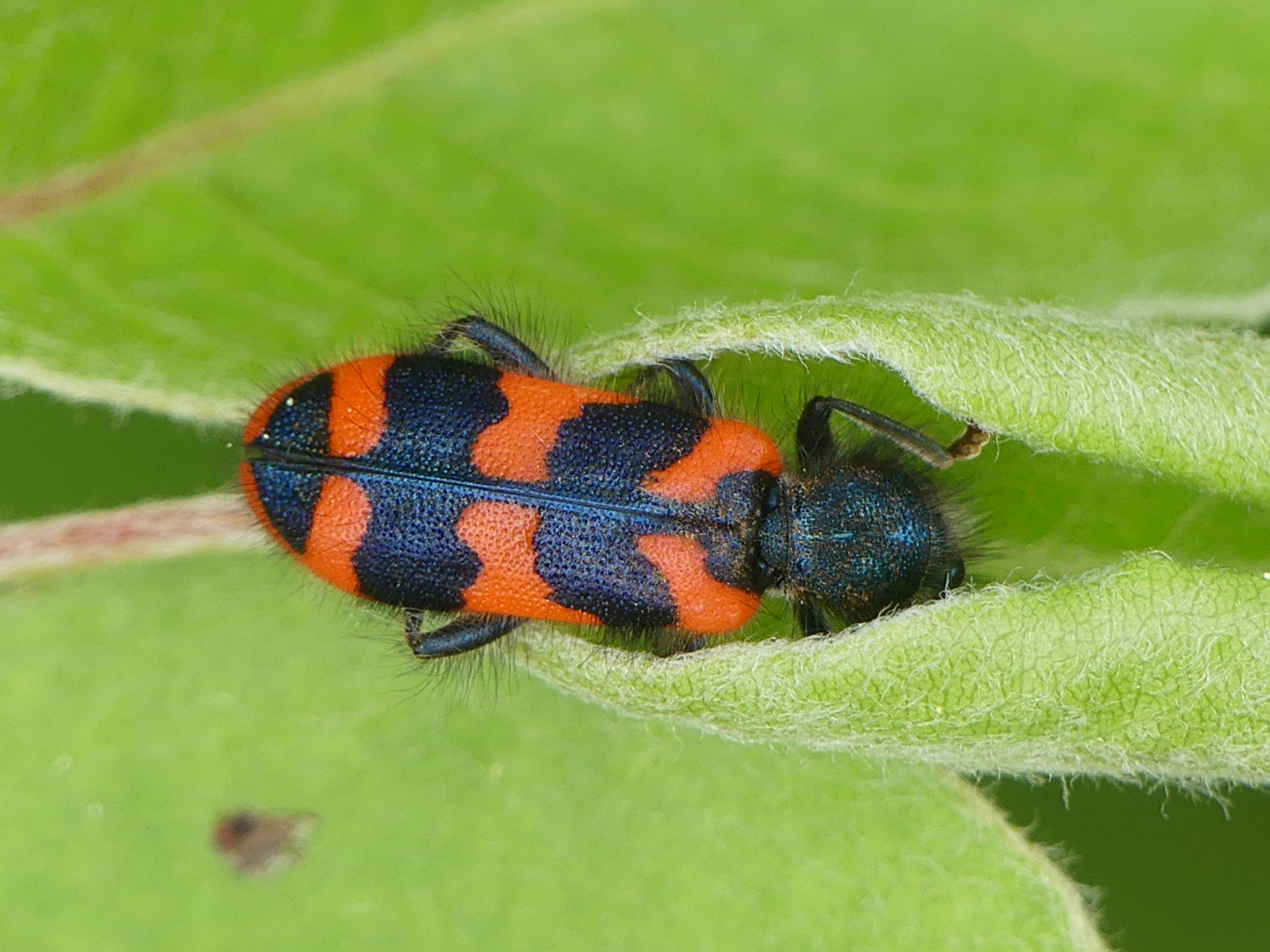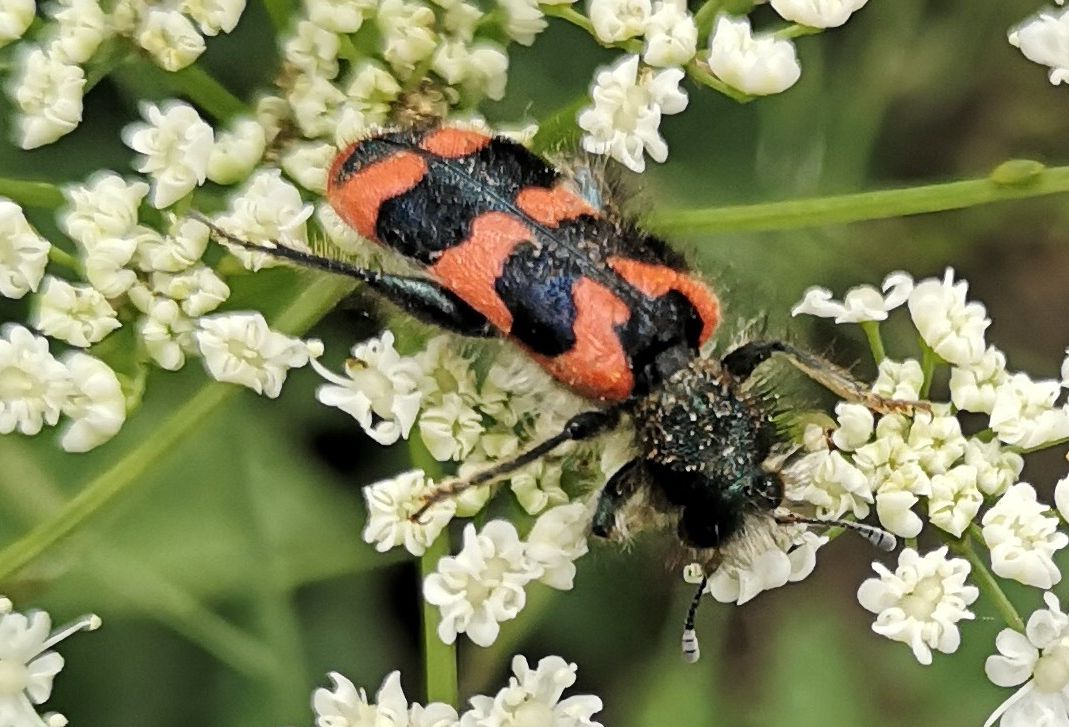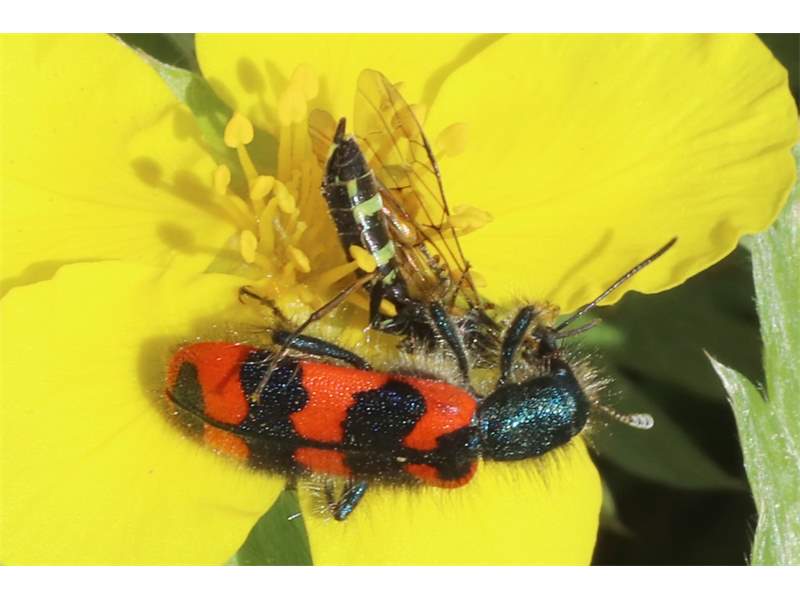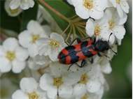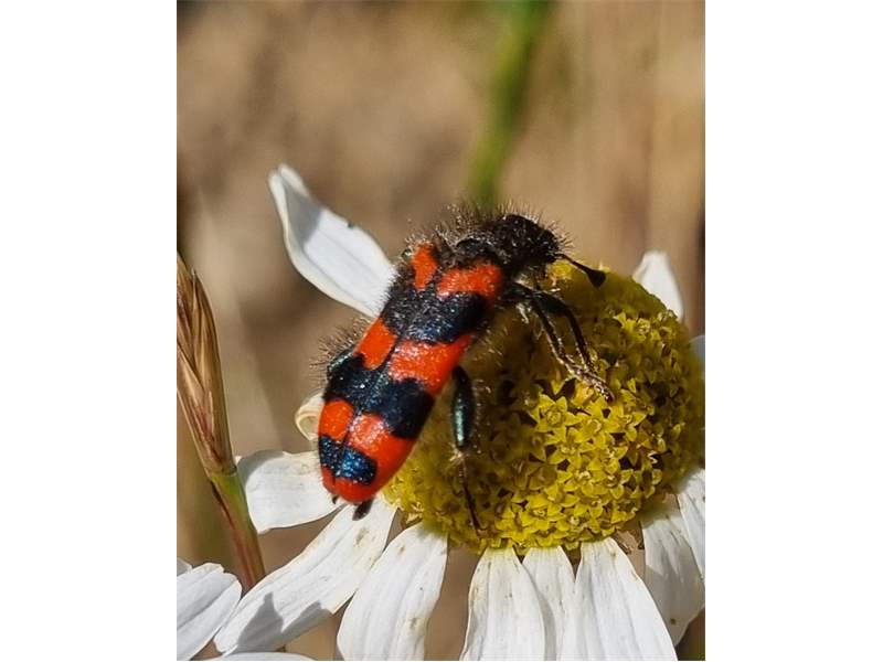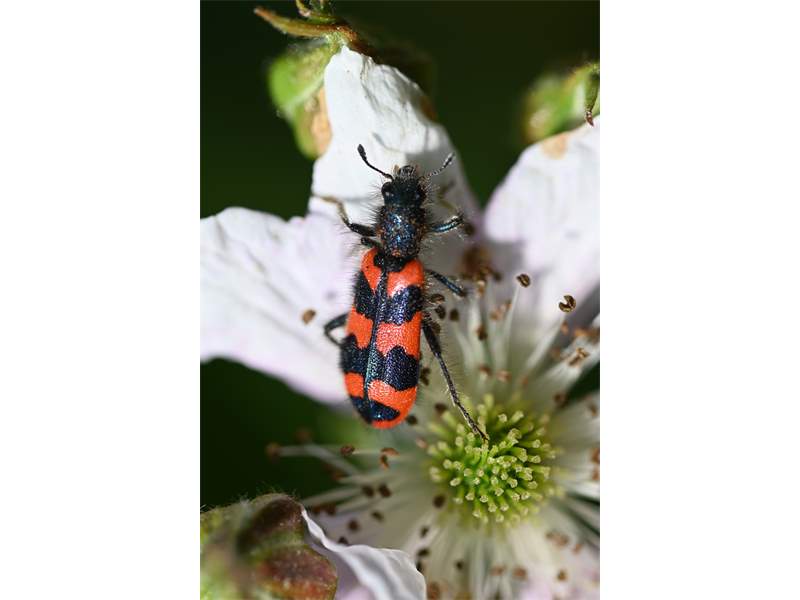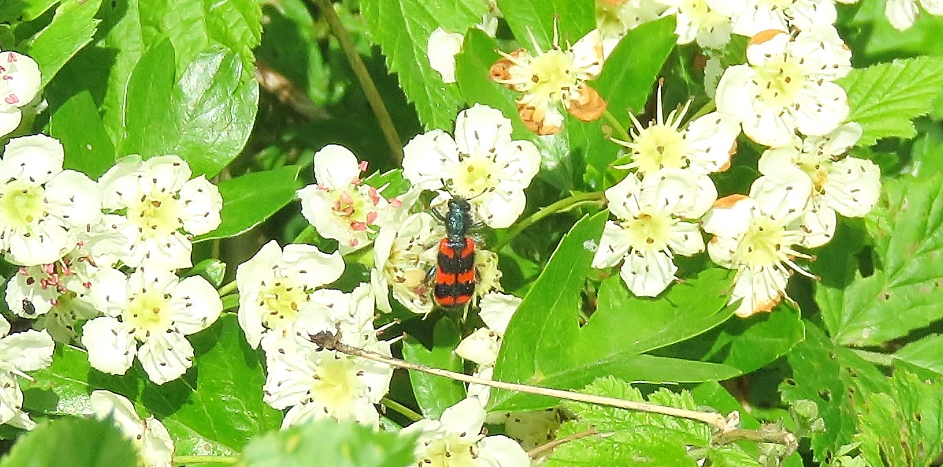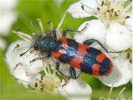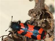 Zottiger Bienenkäfer (Trichodes alvearius (Fabricius, 1792)),Freital/Wurgwitz,Hammerbachaue,auf Weißdorn,Mai 2019 (© Manfred Wonka)( Bild vergrößern)